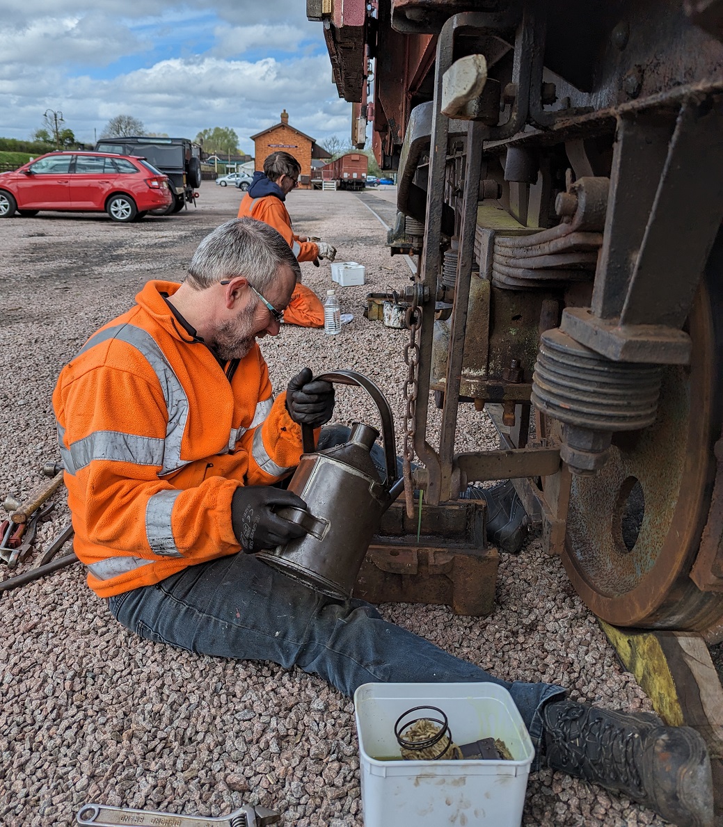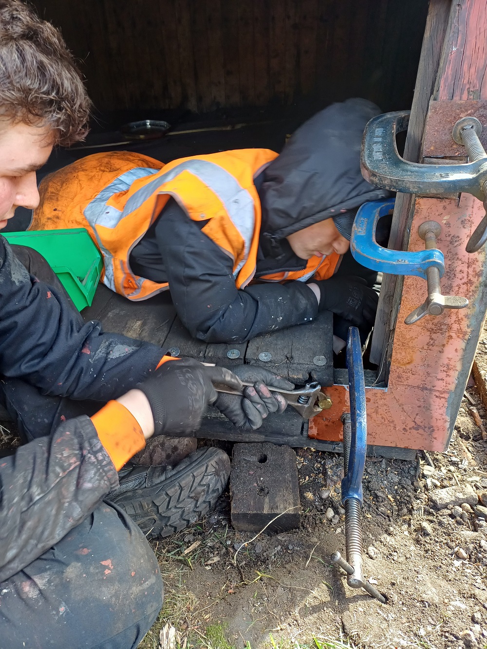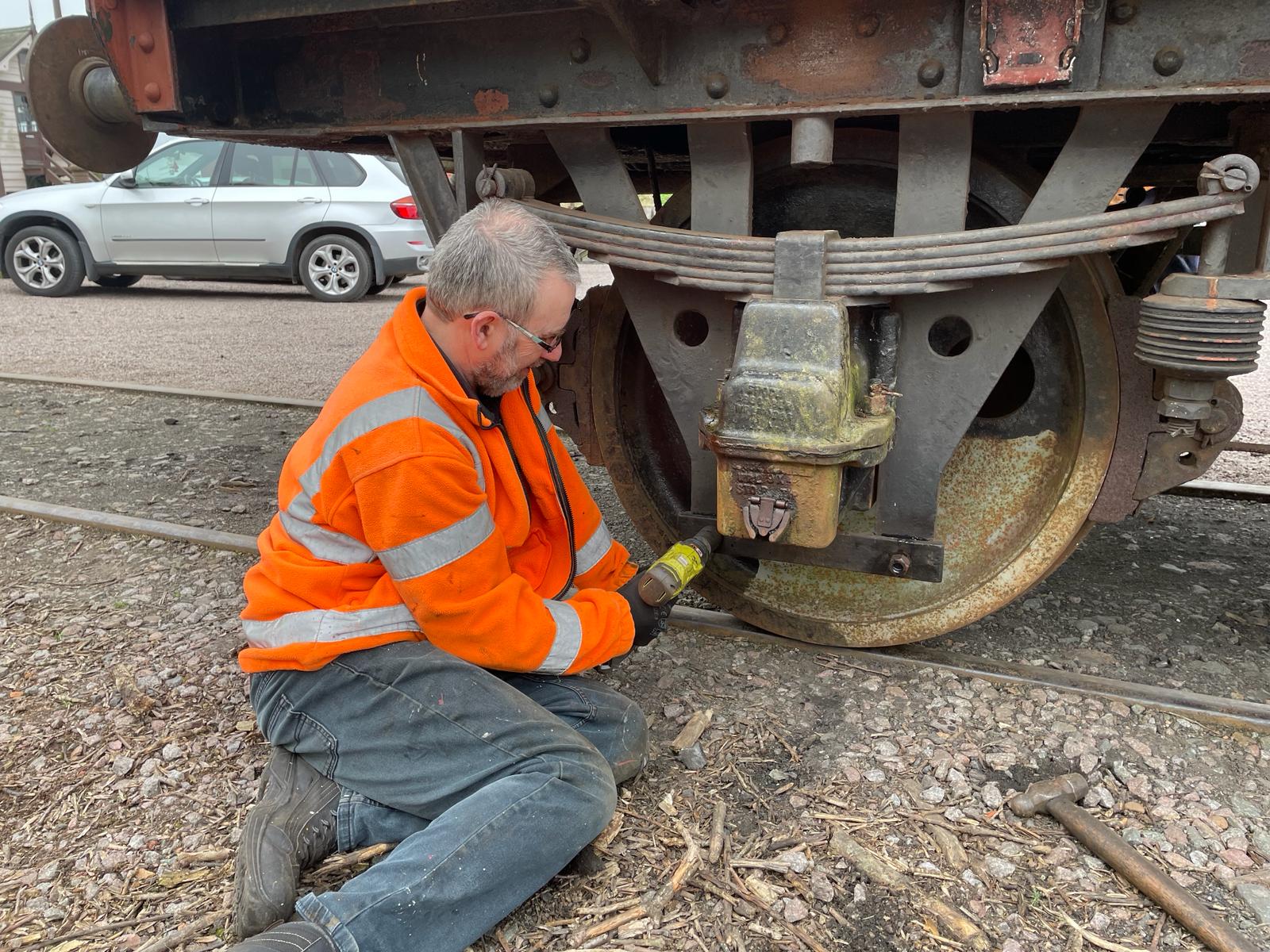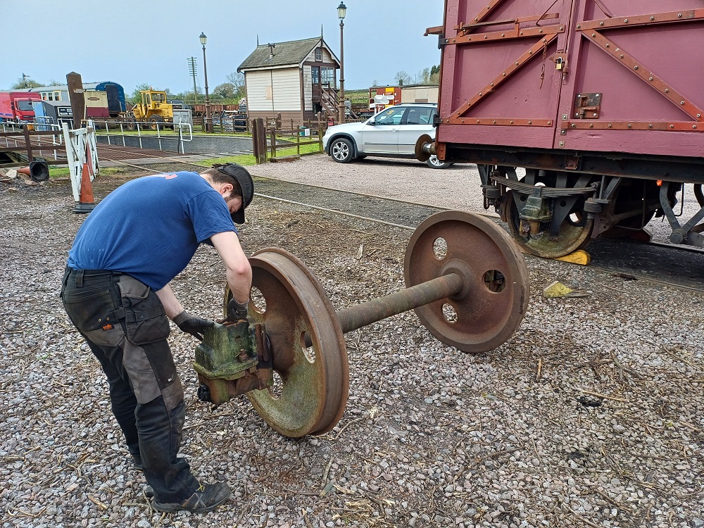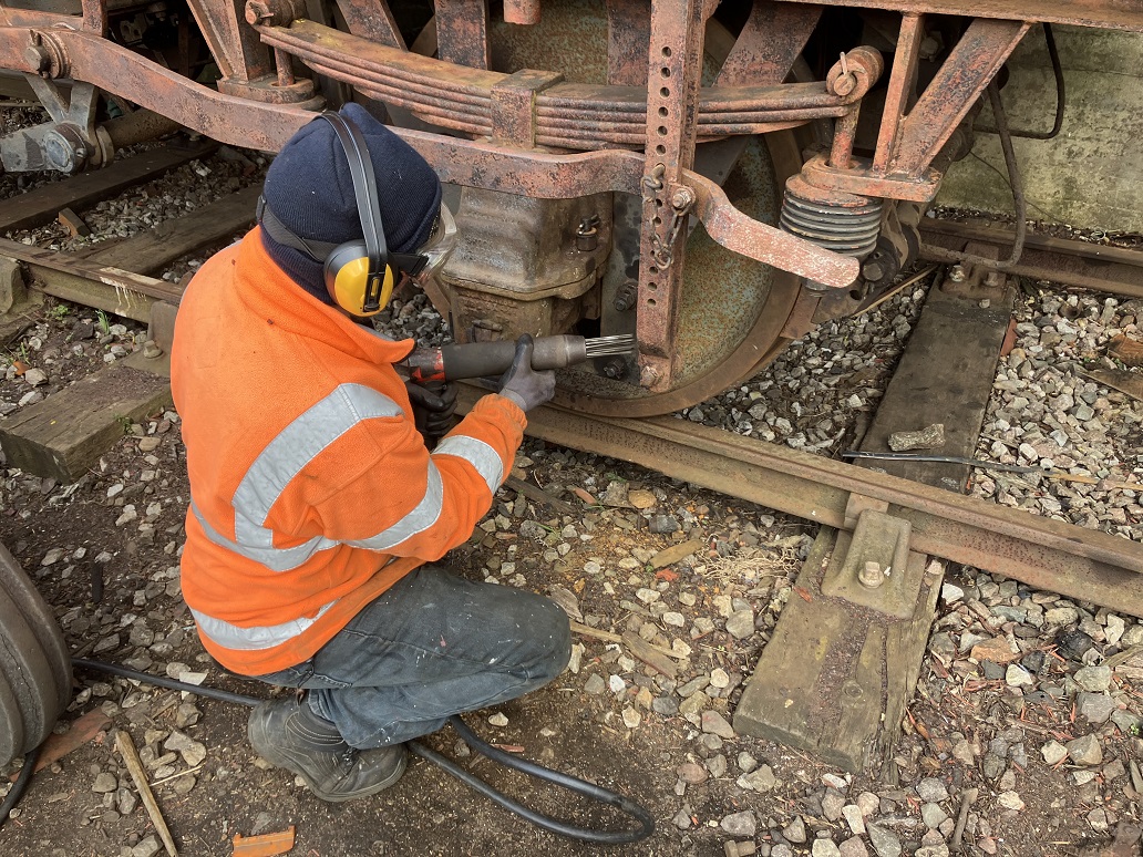 During the week Tom and Oliver helped remove the axlebox keep plates from the Palvan in readiness for the wheelset change.