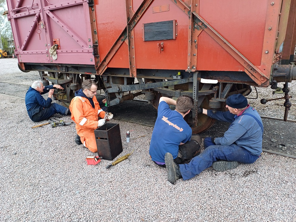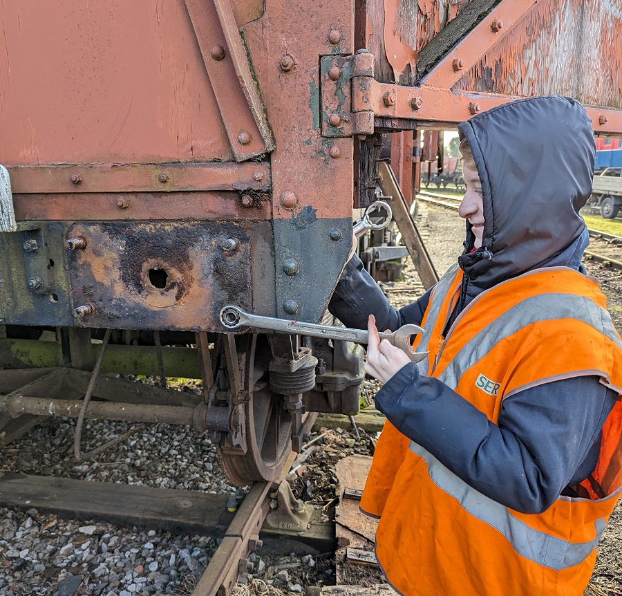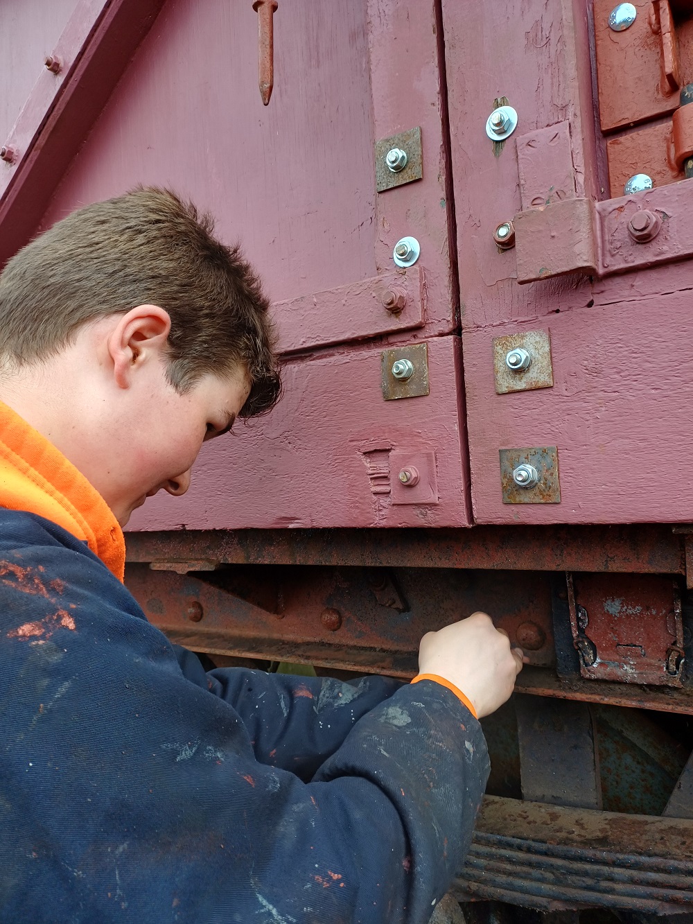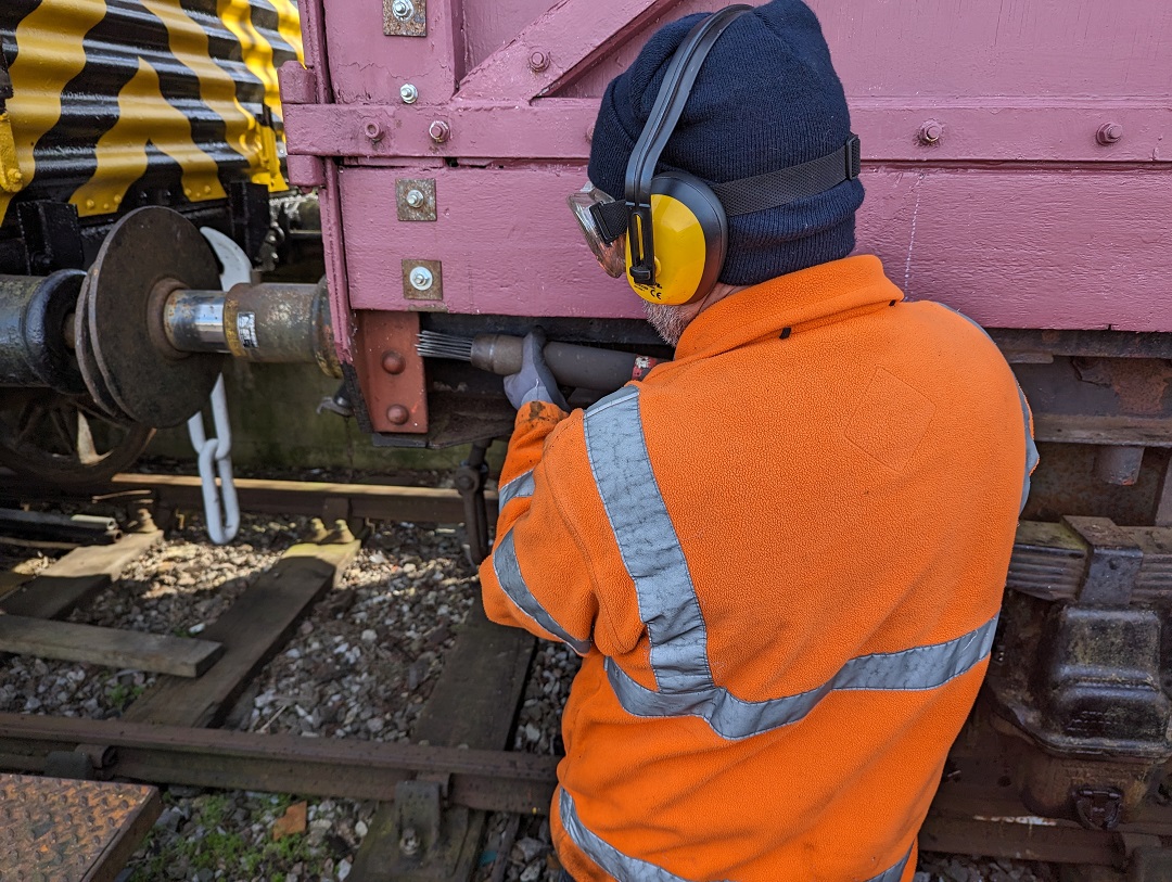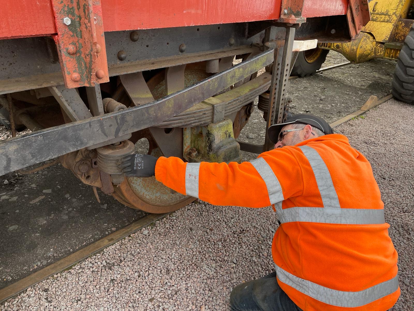 During the week Tom and Oliver helped remove the axlebox keep plates from the Palvan in readiness for the wheelset change.