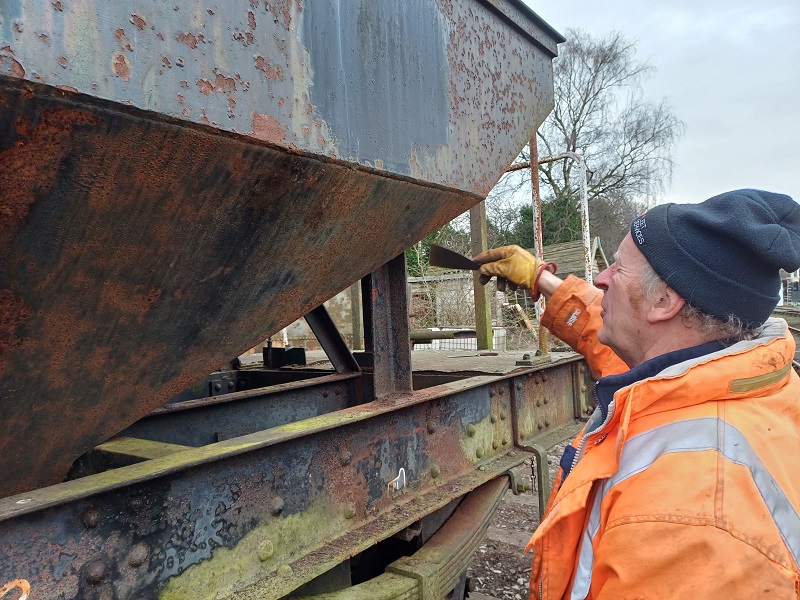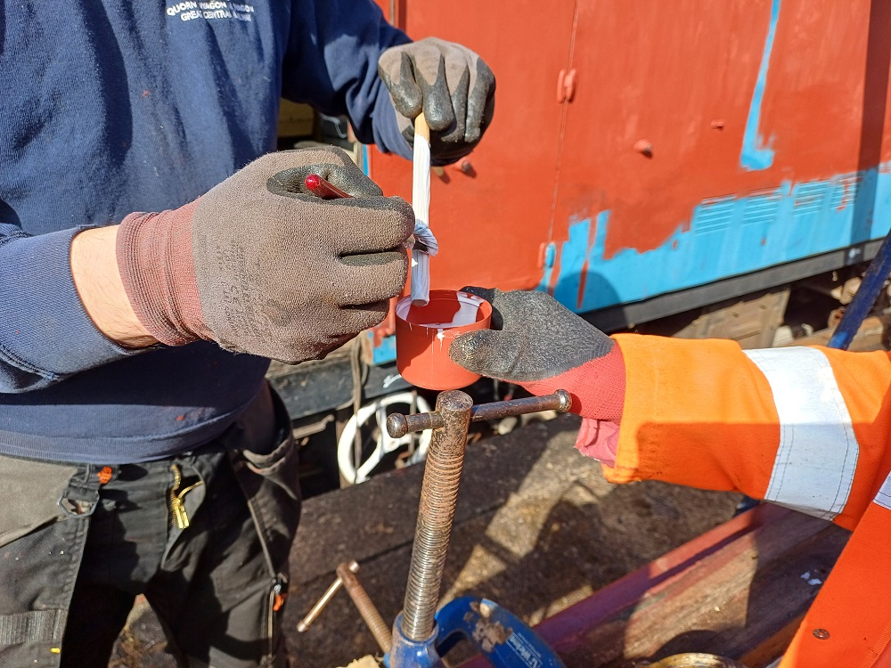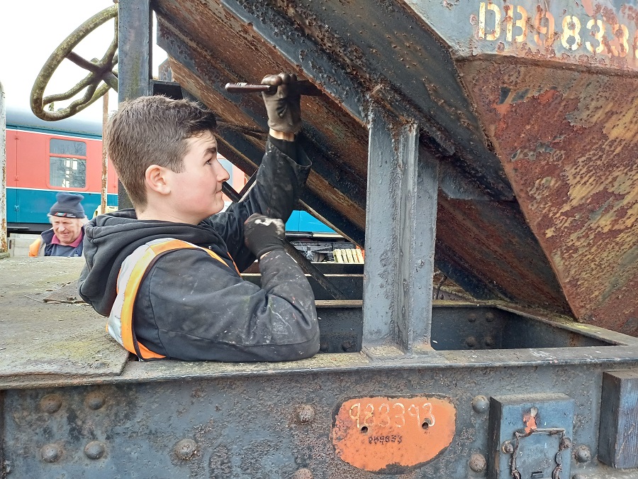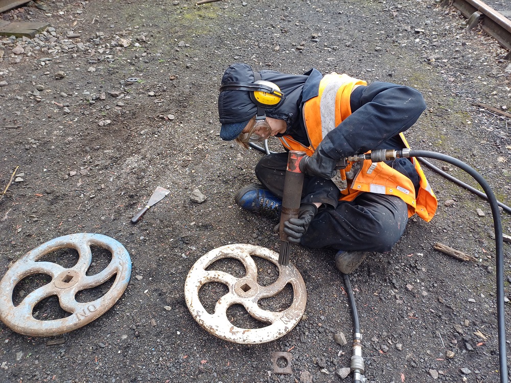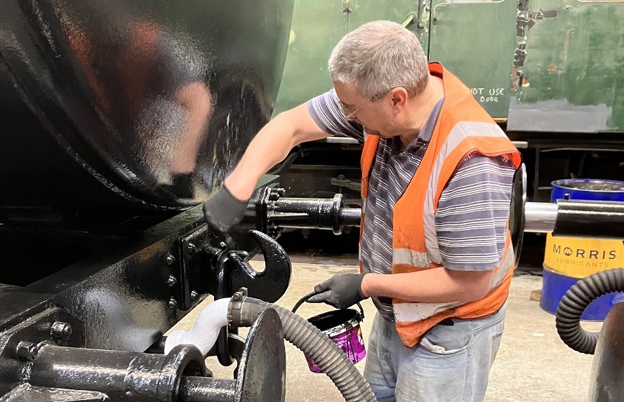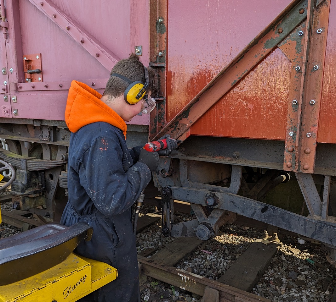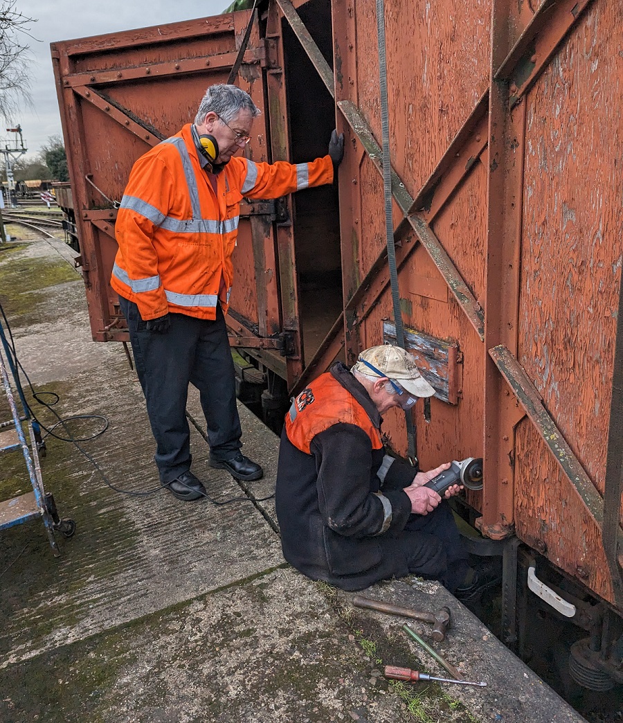 During the week Tom and Oliver helped remove the axlebox keep plates from the Palvan in readiness for the wheelset change.