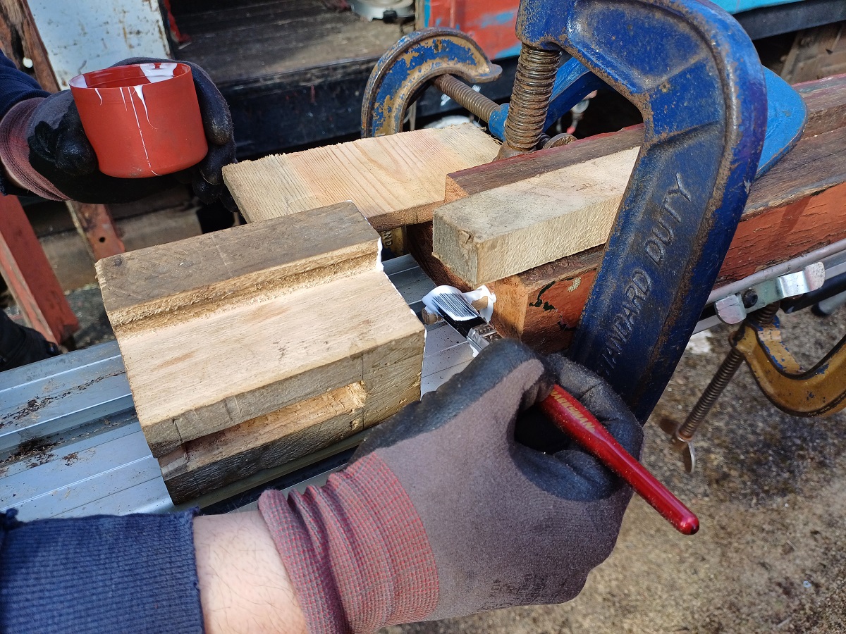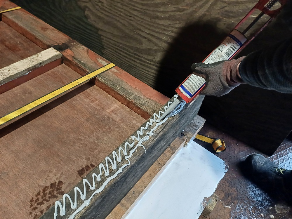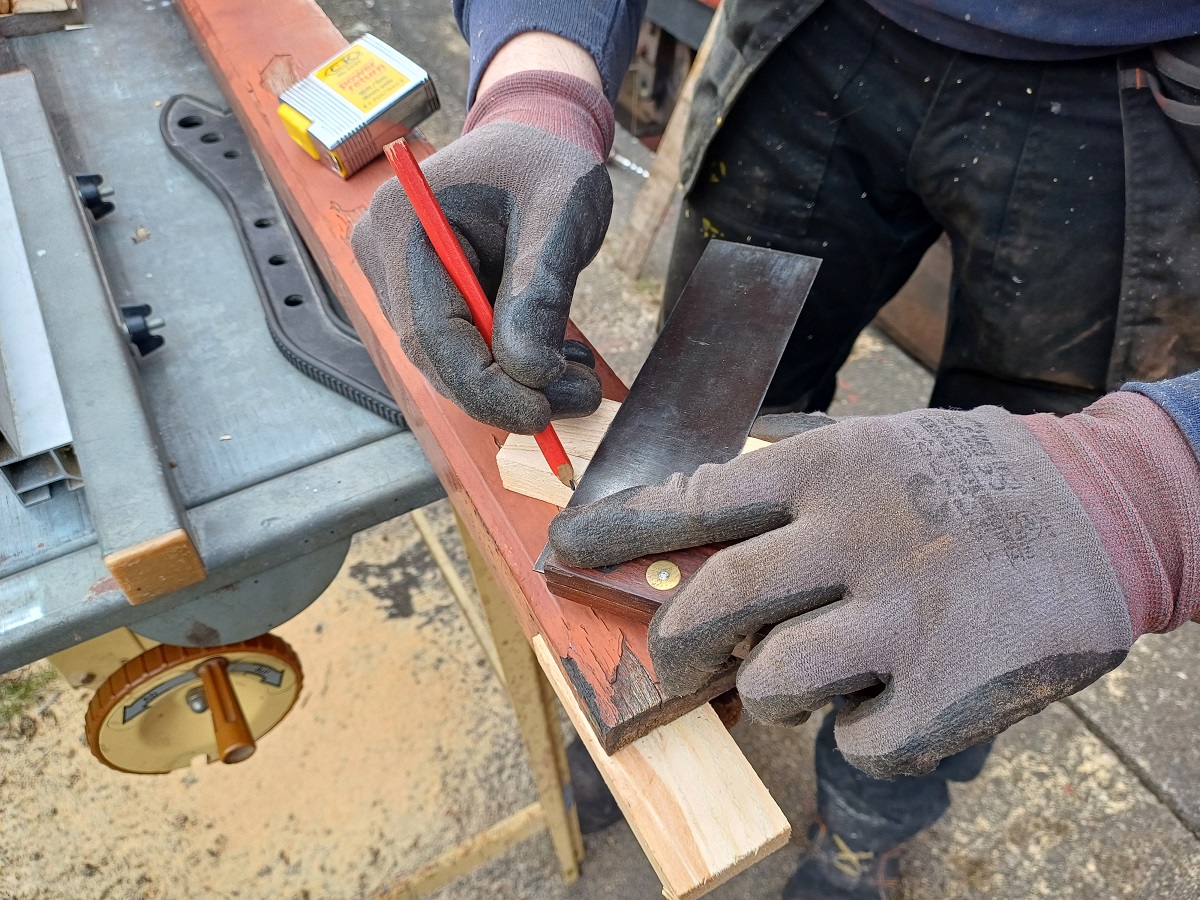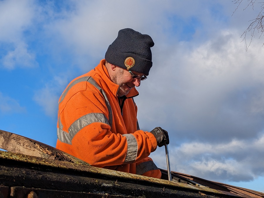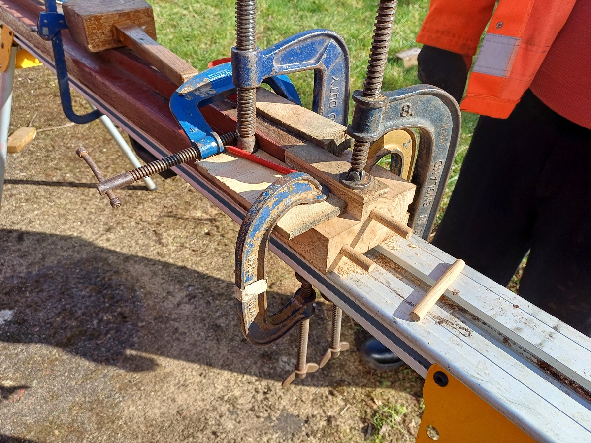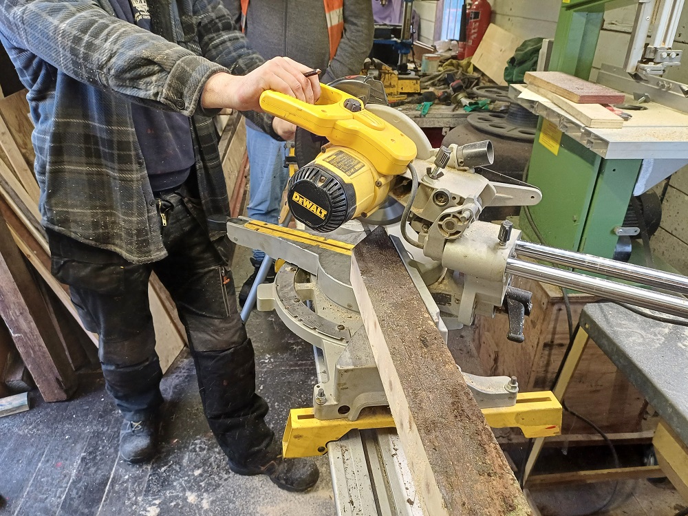 A new steel corner plate was cut and bent to shape by Ross, then fitted in place by Tom and Dan to replace the rotted one.