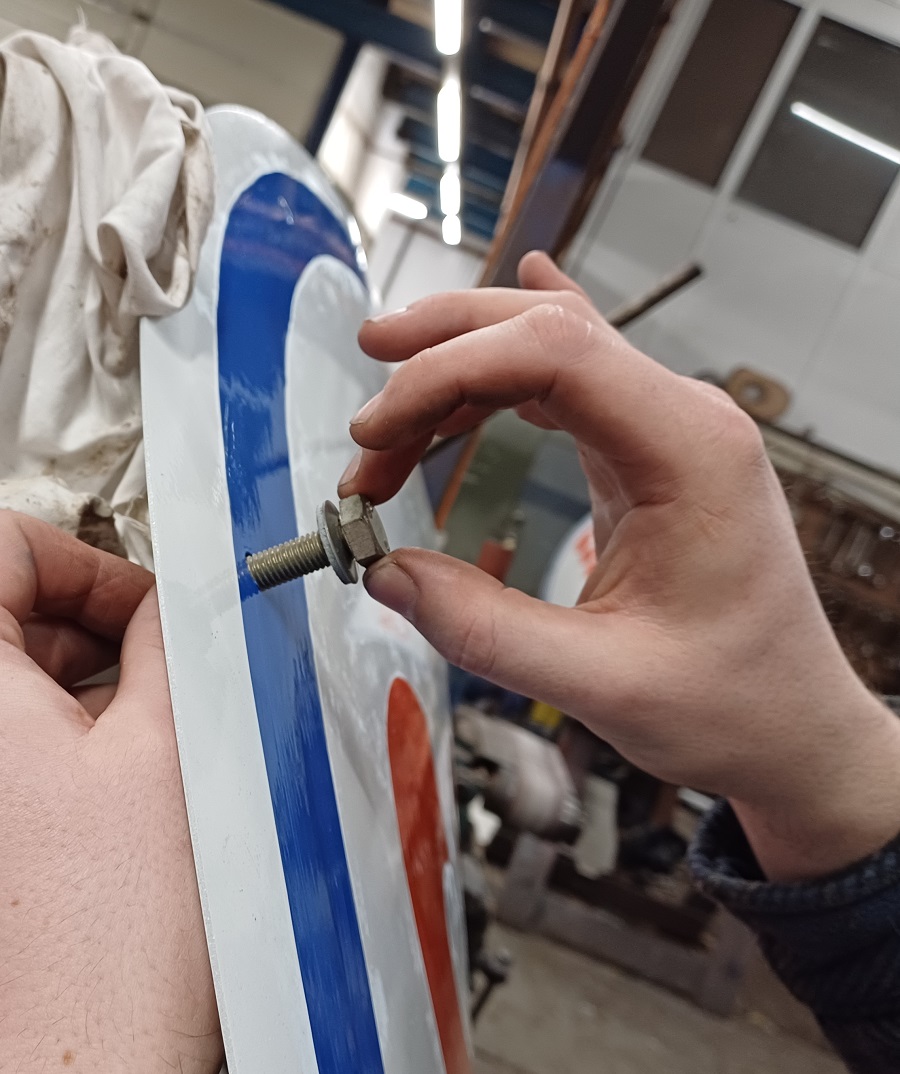 The bolts we had didn’t have enough thread length, so Oliver (with Nick’s help) used a die-nut to cut a longer thread length for the plate attachment bolts.