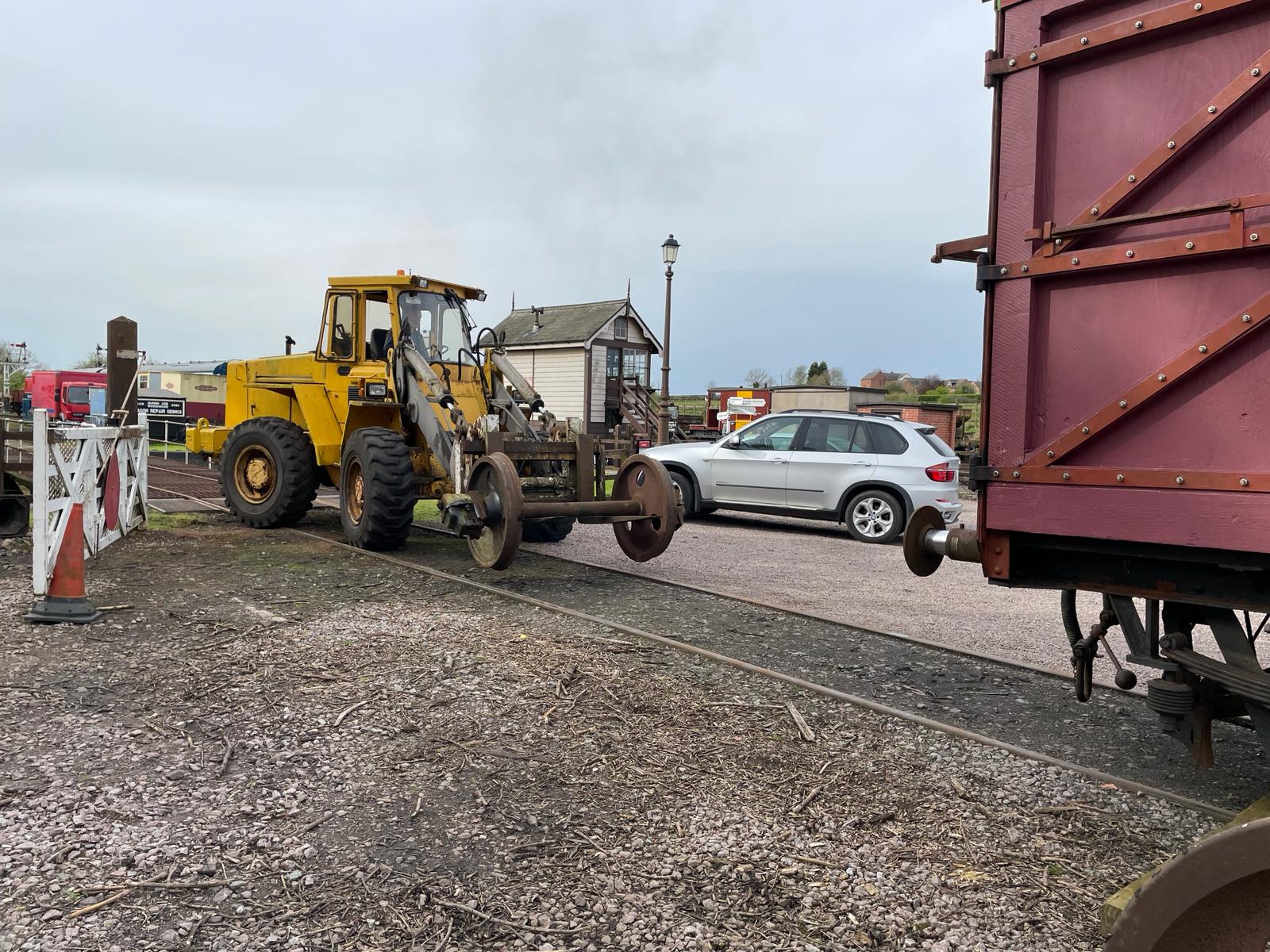 On Saturday the Palvan was positioned in the yard ready for the wheelset change; Richard and myself taking measurements of bumpstop gaps and buffer heights.
