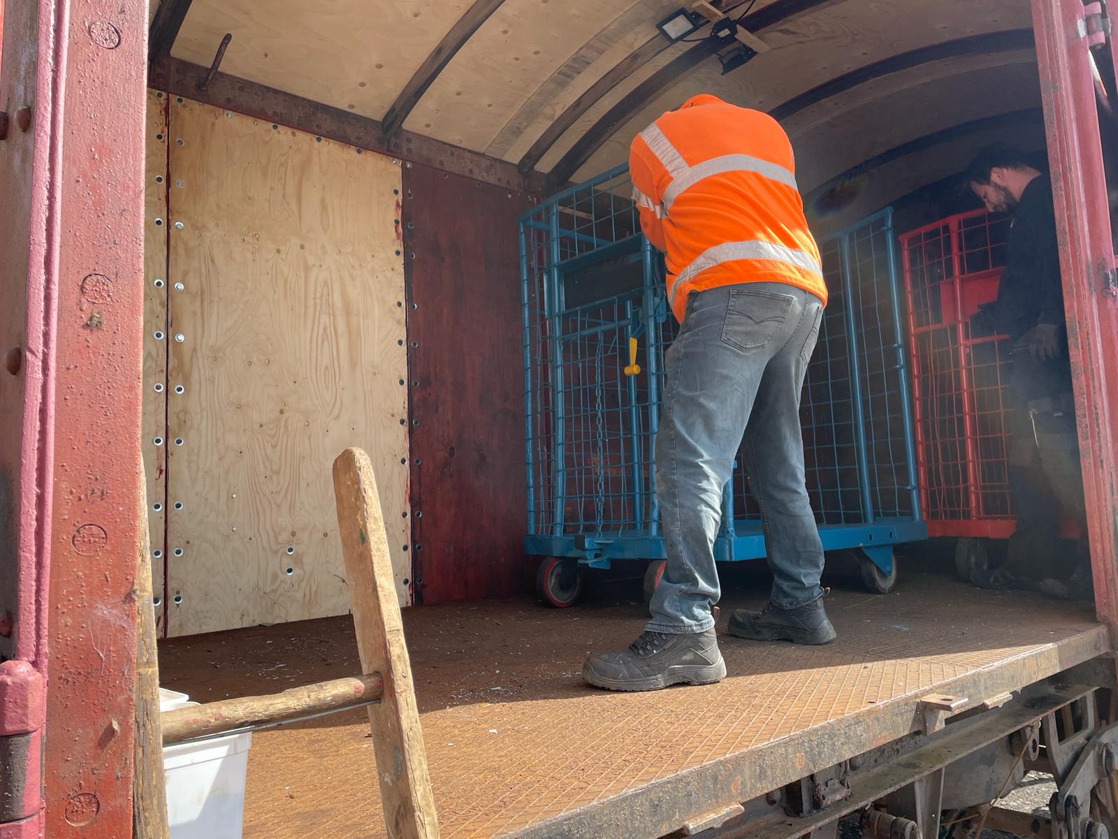 The six Brute trolleys were loaded into the Palvan with the Volvo, fitting neatly into the space inside. These will be secured before the van goes into traffic to prevent any movement or damage to the Brutes.