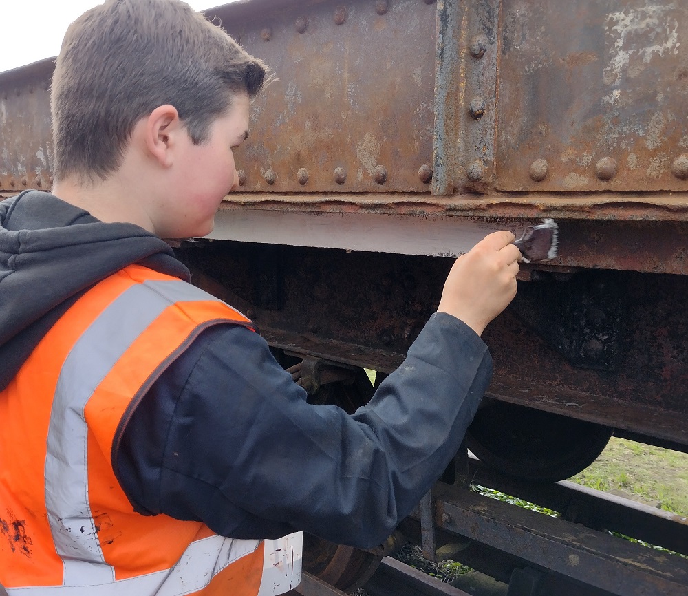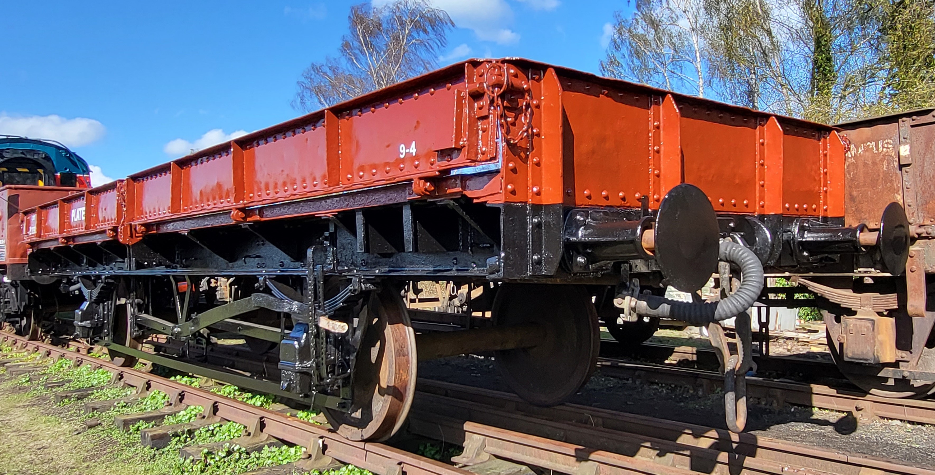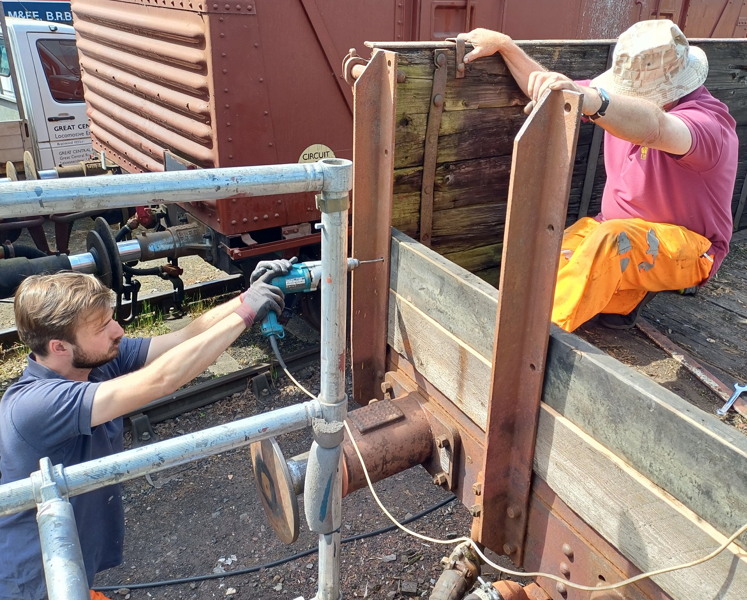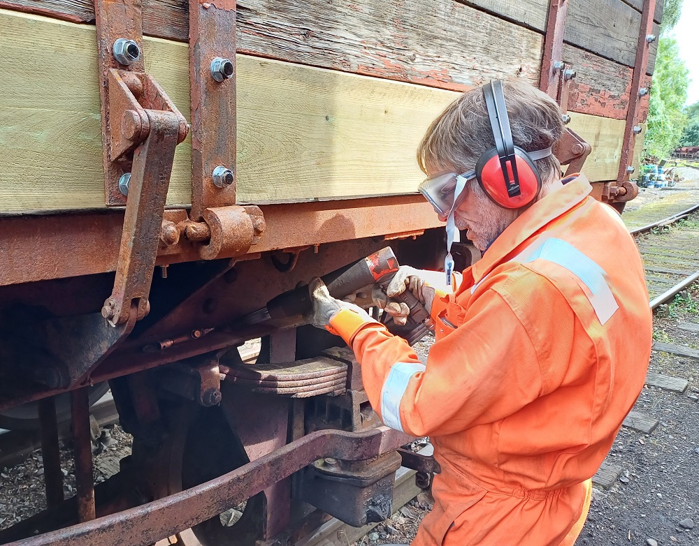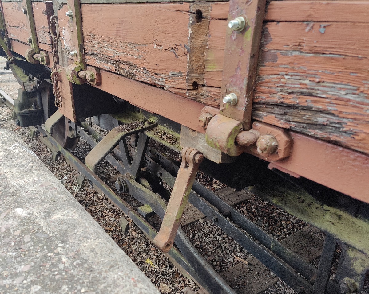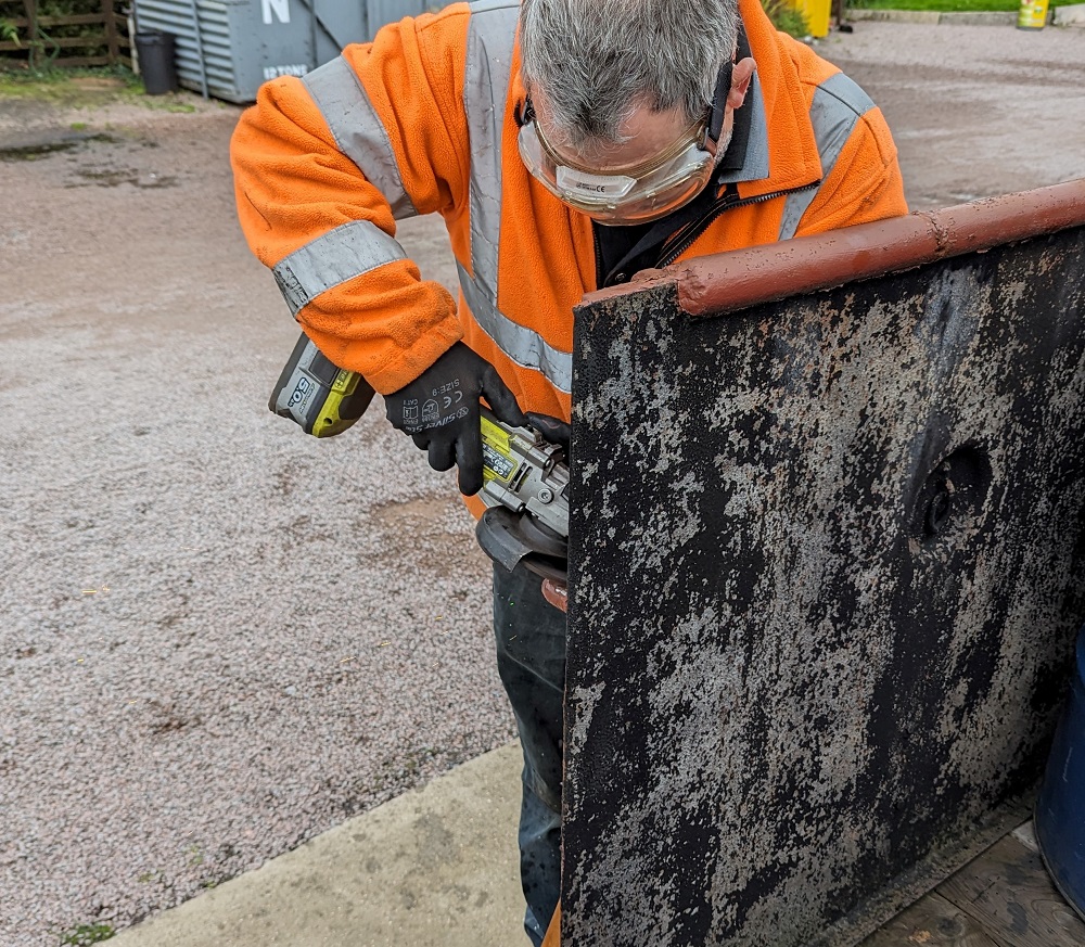 Whilst checking the wagons in preparation for railways at work, we came across a very reluctant drop-side door on steel high ADB280364. The cause was a lipped top latch post which was dressed lightly with a grinder and some red-oxide paint applied. This will make the door much easier to open and shut during the loading/unloading demonstrations.