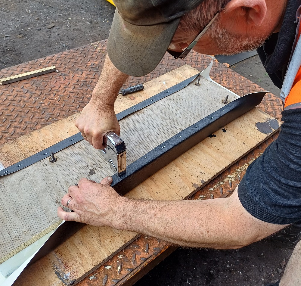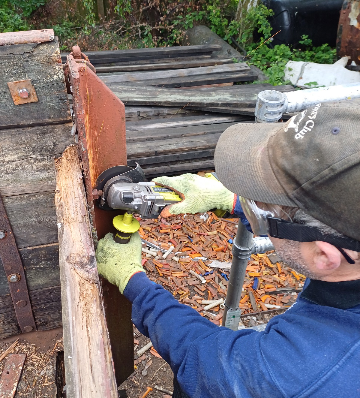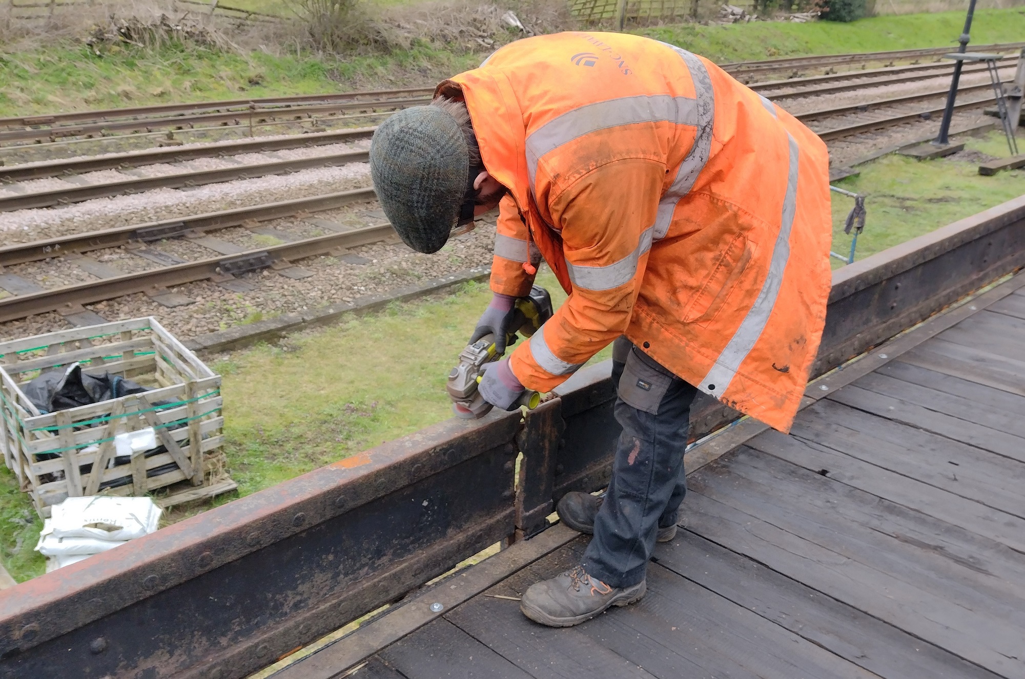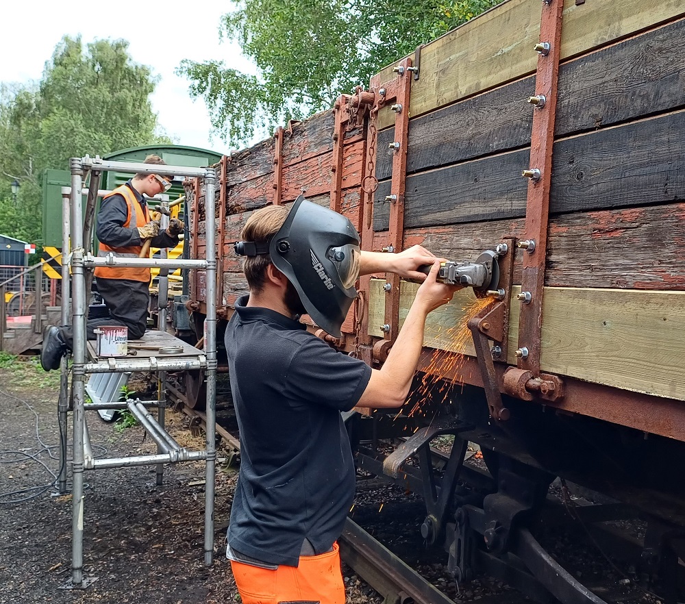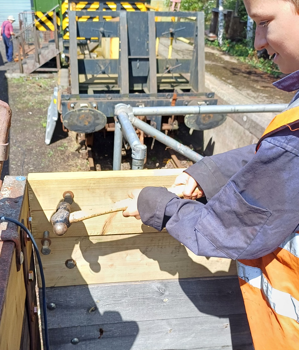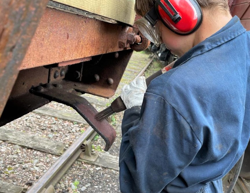 Whilst checking the wagons in preparation for railways at work, we came across a very reluctant drop-side door on steel high ADB280364. The cause was a lipped top latch post which was dressed lightly with a grinder and some red-oxide paint applied. This will make the door much easier to open and shut during the loading/unloading demonstrations.