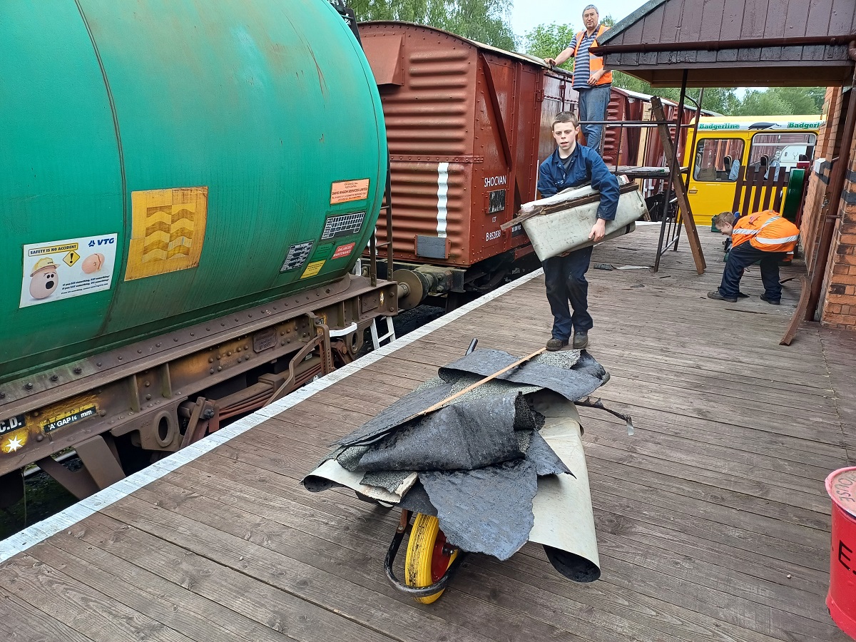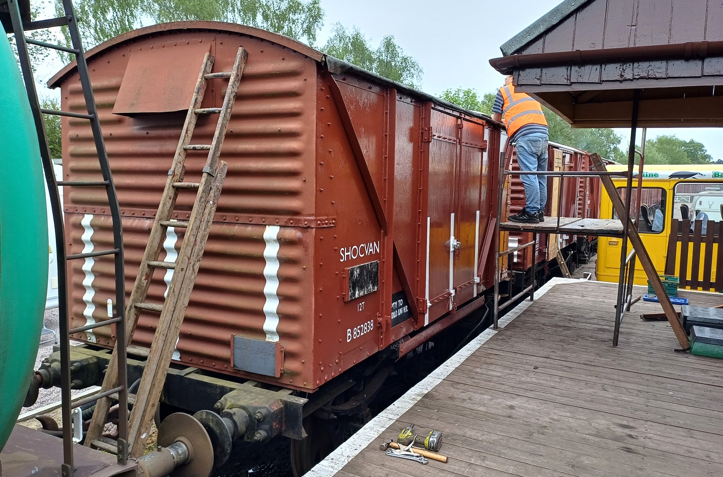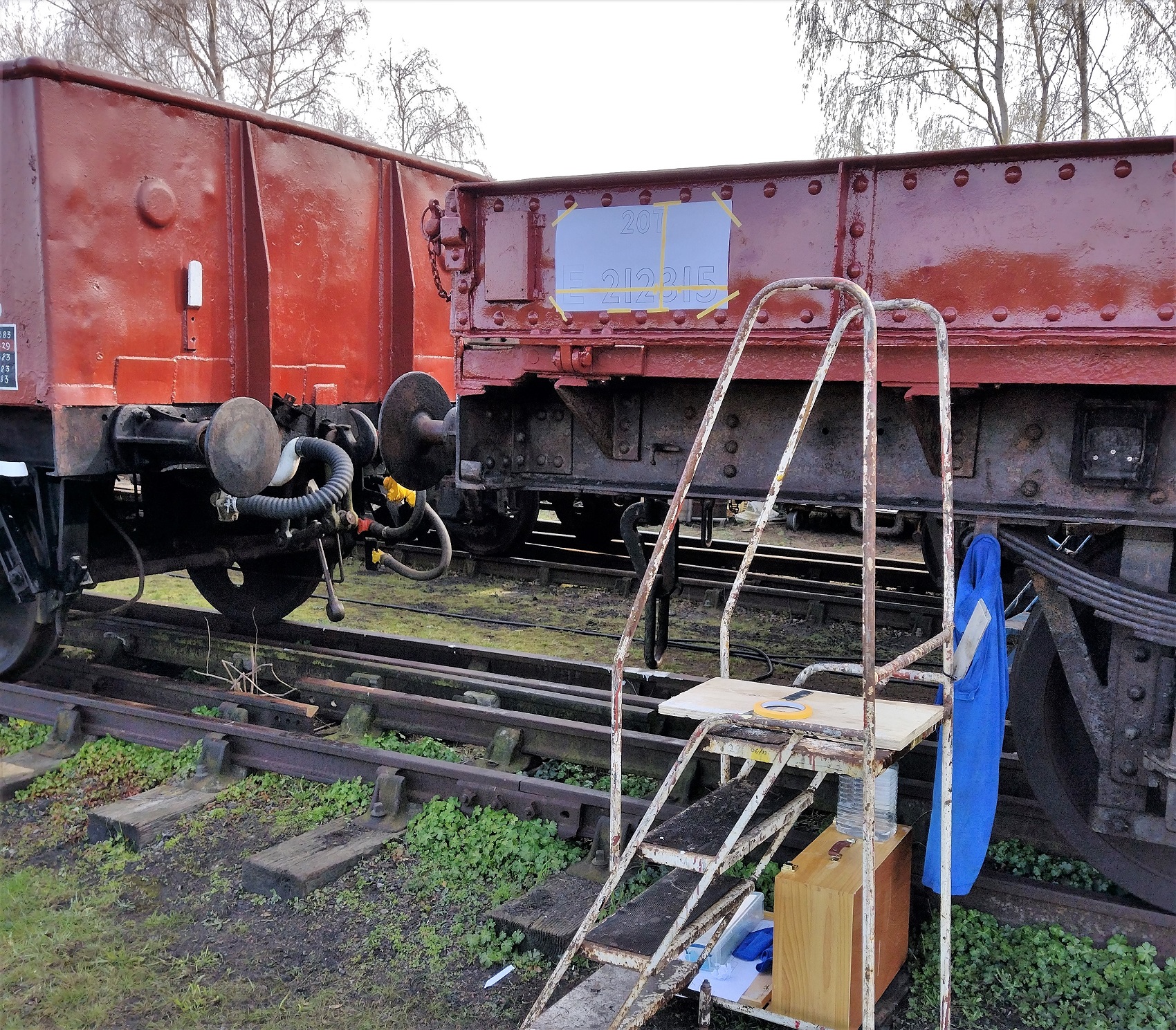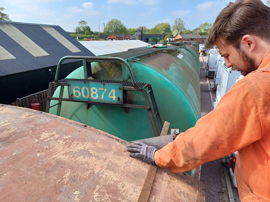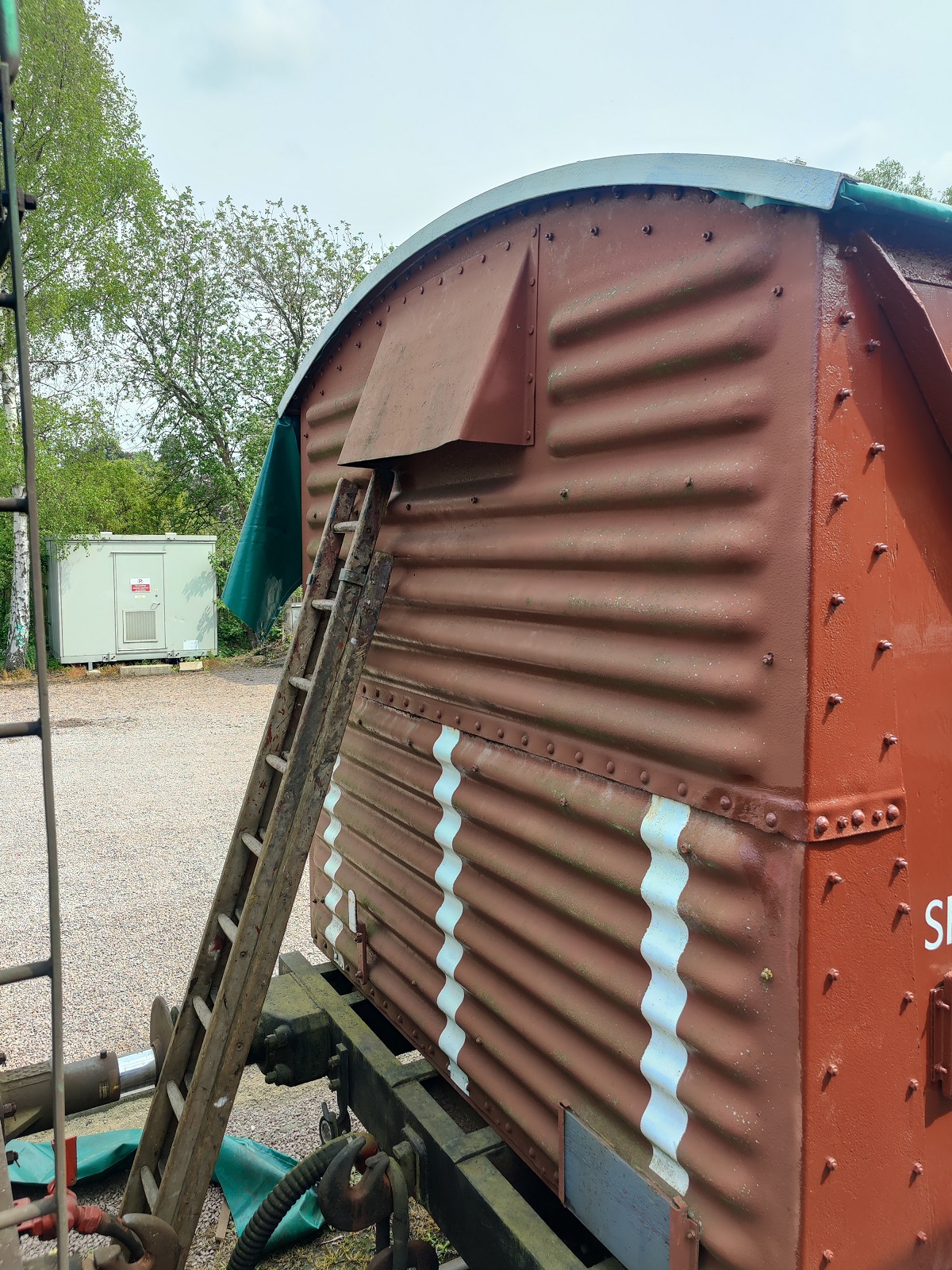 Despite the inclement weather continuing, we have had a busy weekend tidying & sorting the theatrical vans in preparation for the upcoming Railways at Work Gala, doing some housekeeping, attending to gutters and a sticky wagon door, progressed the Pipe wagon and we also managed a bit of work on tank 3777.