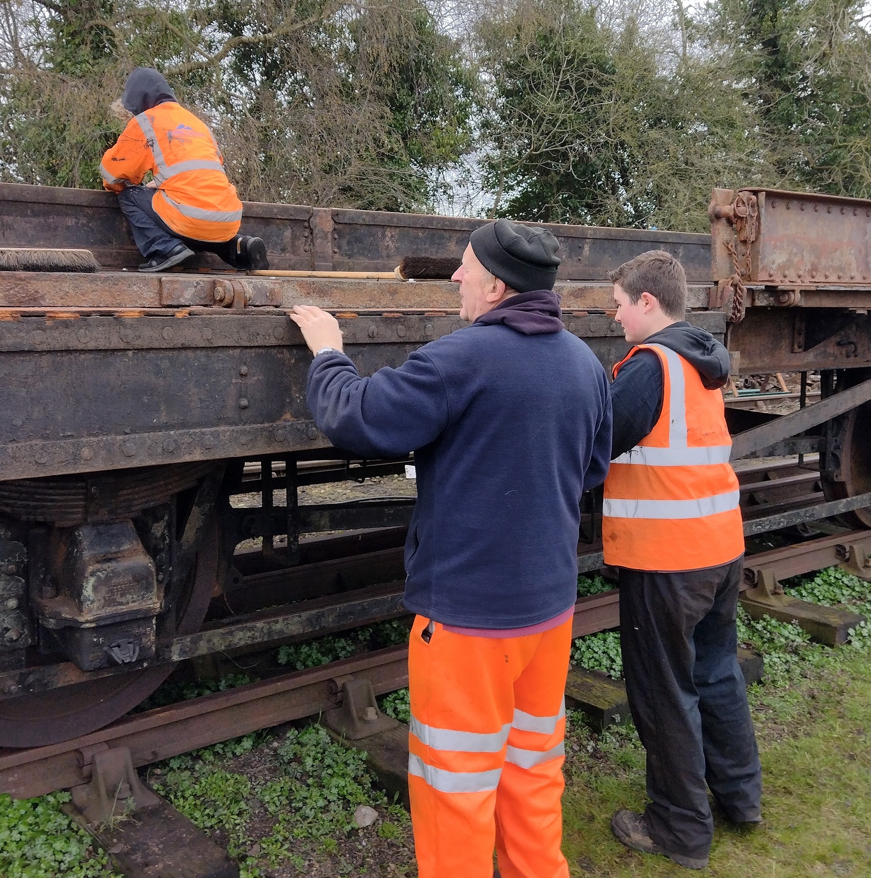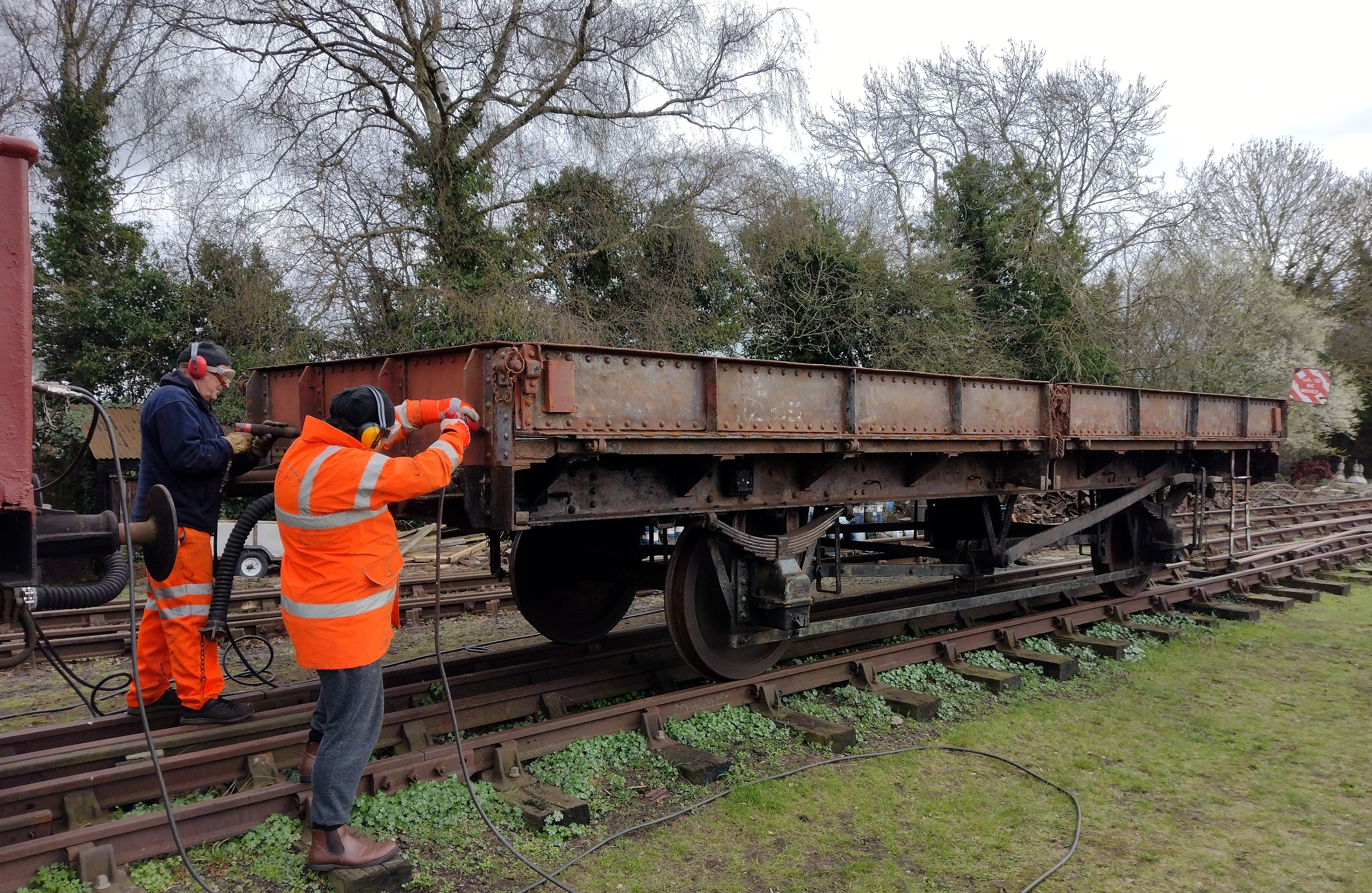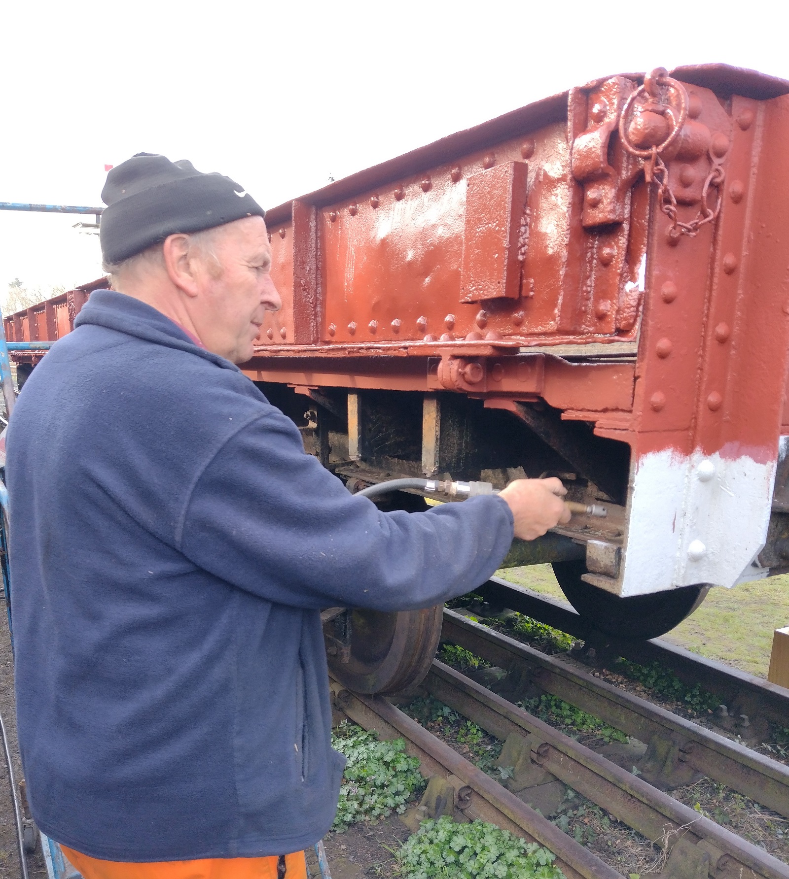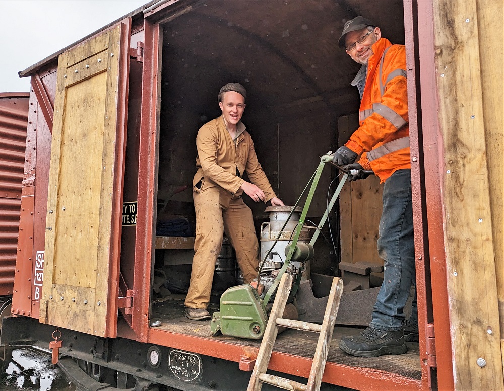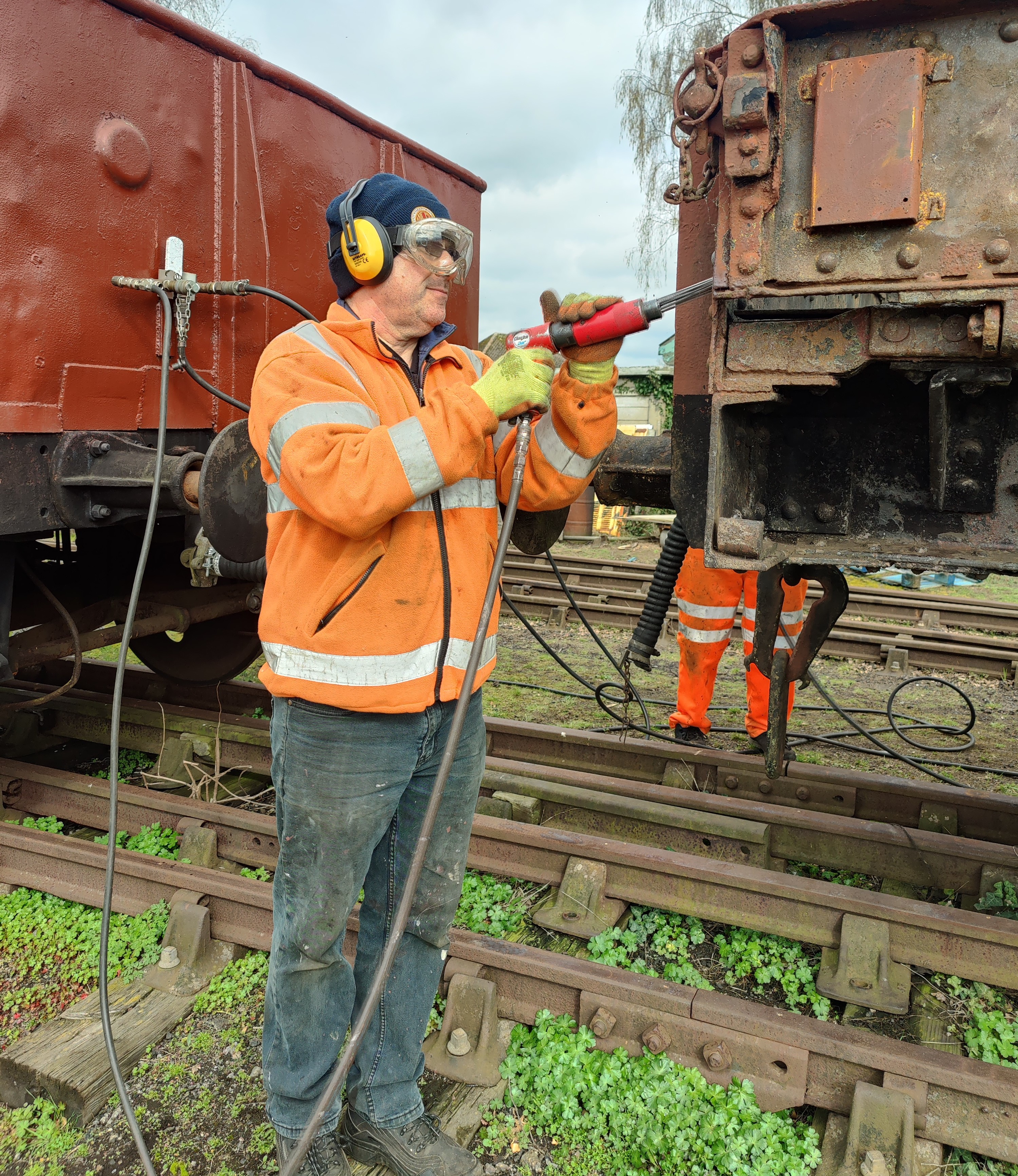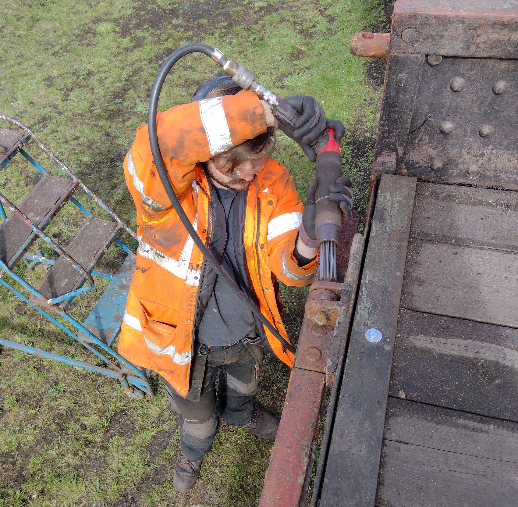 Despite the inclement weather continuing, we have had a busy weekend tidying & sorting the theatrical vans in preparation for the upcoming Railways at Work Gala, doing some housekeeping, attending to gutters and a sticky wagon door, progressed the Pipe wagon and we also managed a bit of work on tank 3777.