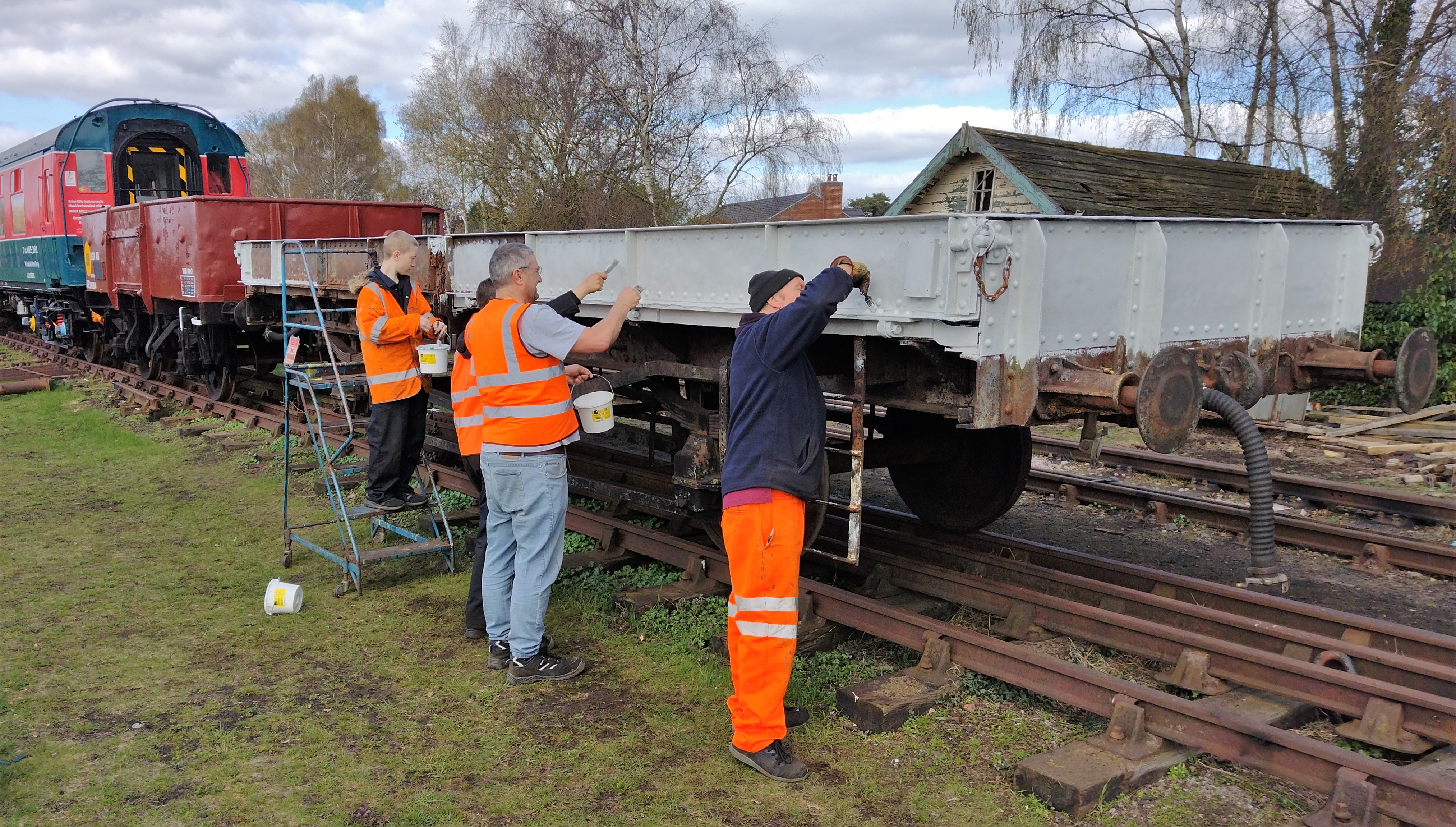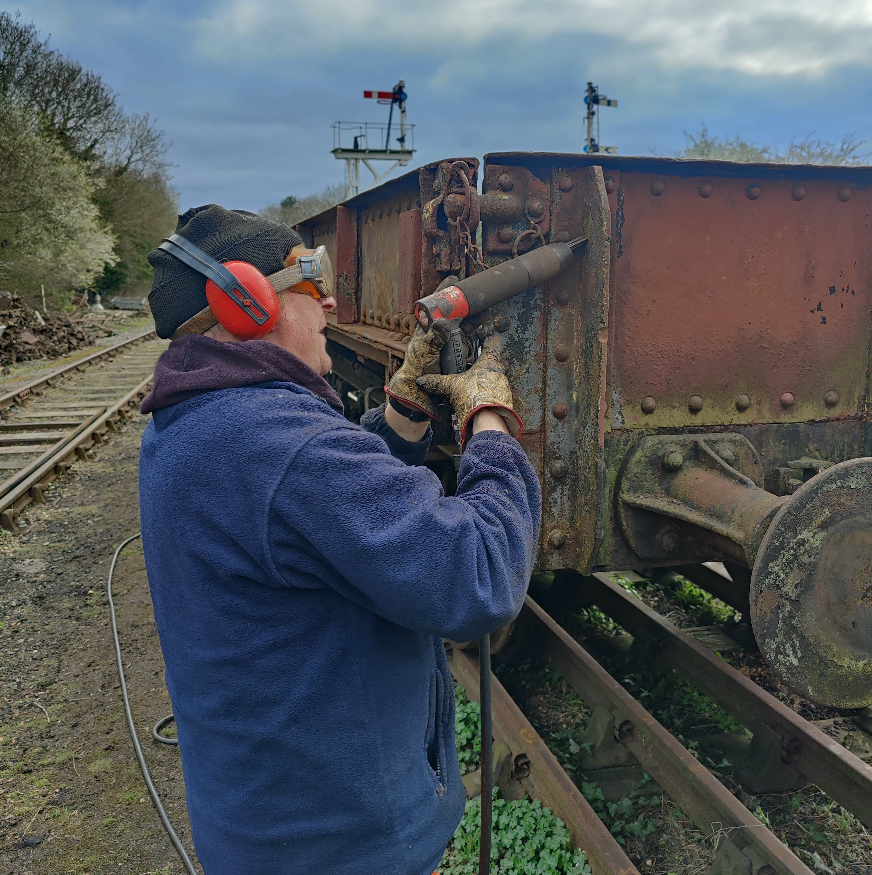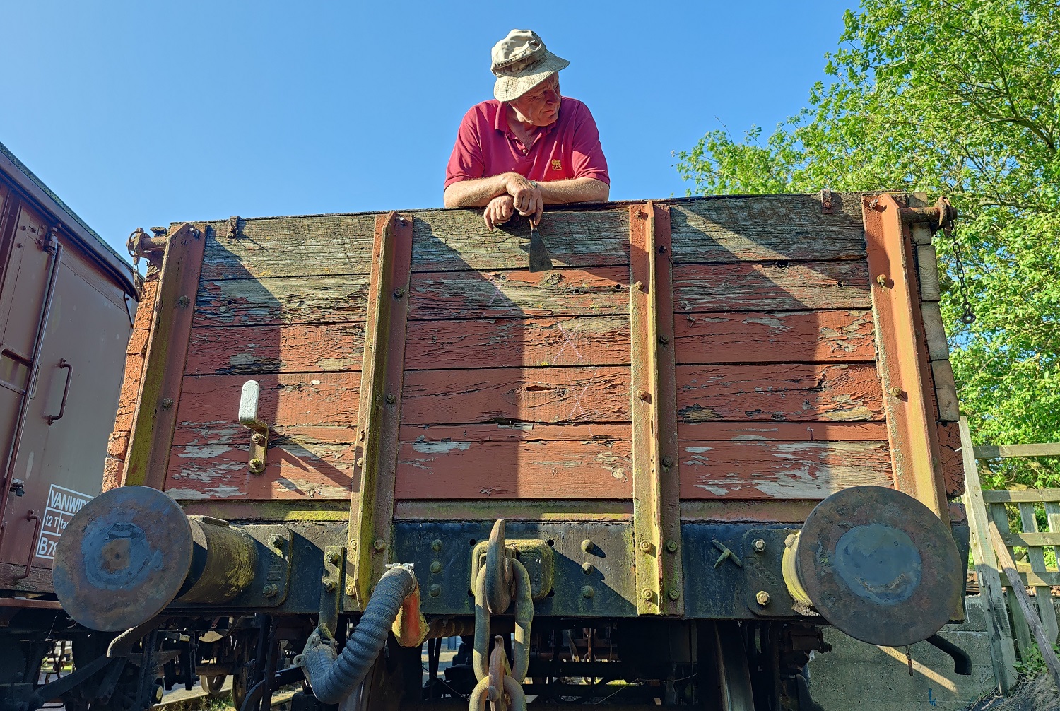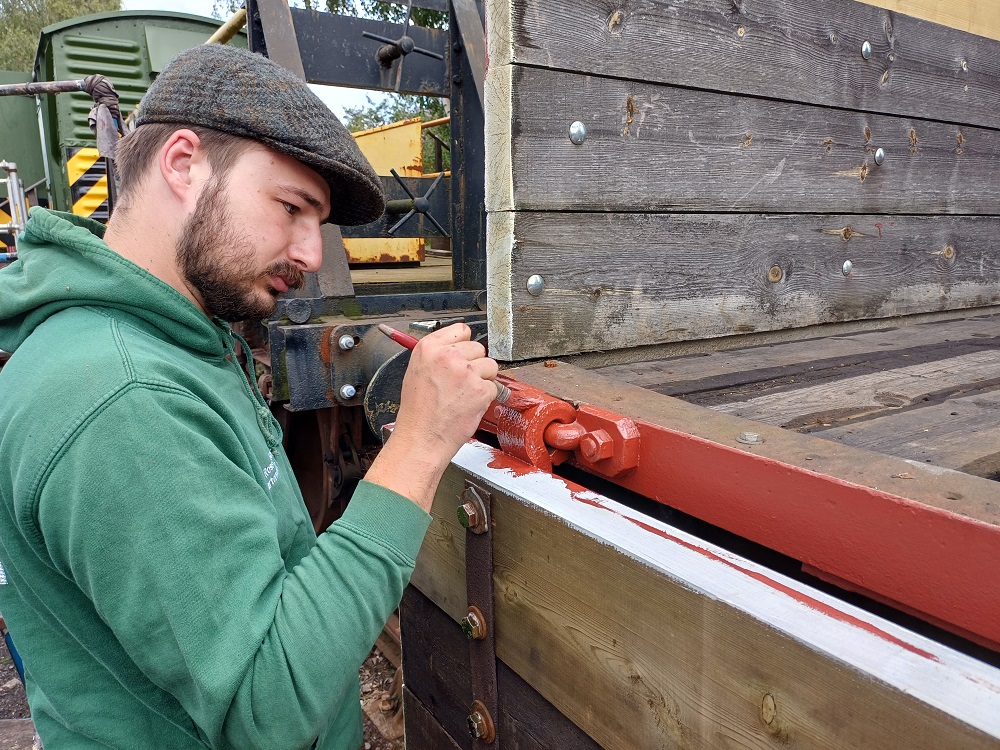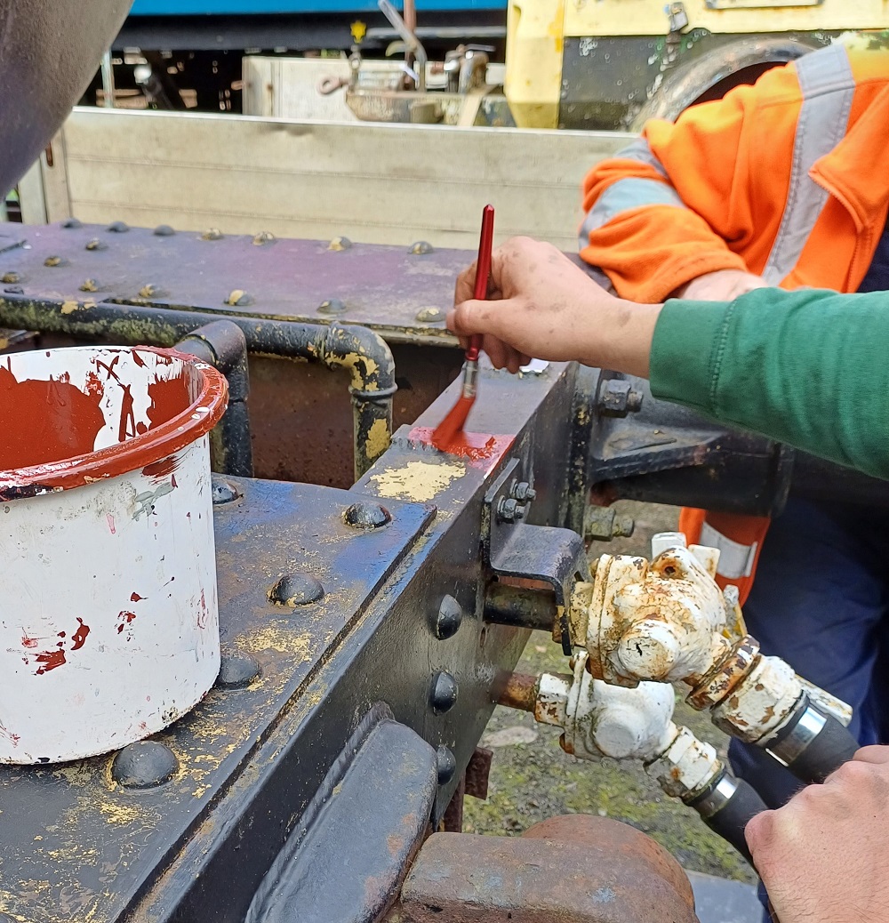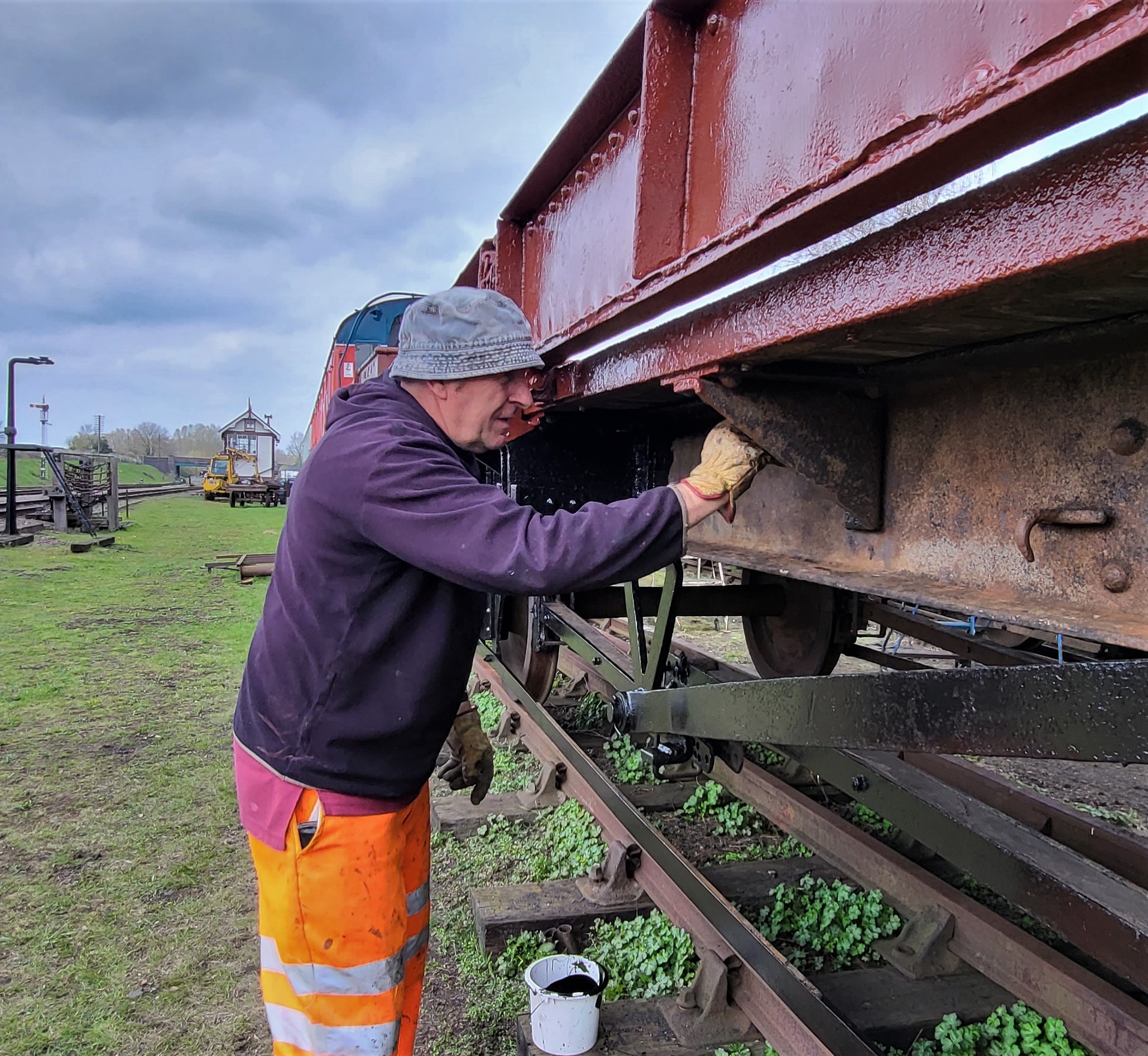 Despite the inclement weather continuing, we have had a busy weekend tidying & sorting the theatrical vans in preparation for the upcoming Railways at Work Gala, doing some housekeeping, attending to gutters and a sticky wagon door, progressed the Pipe wagon and we also managed a bit of work on tank 3777.