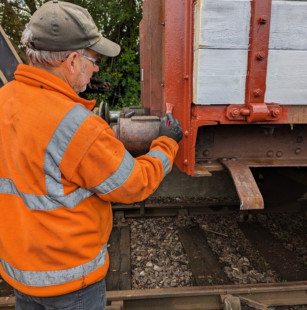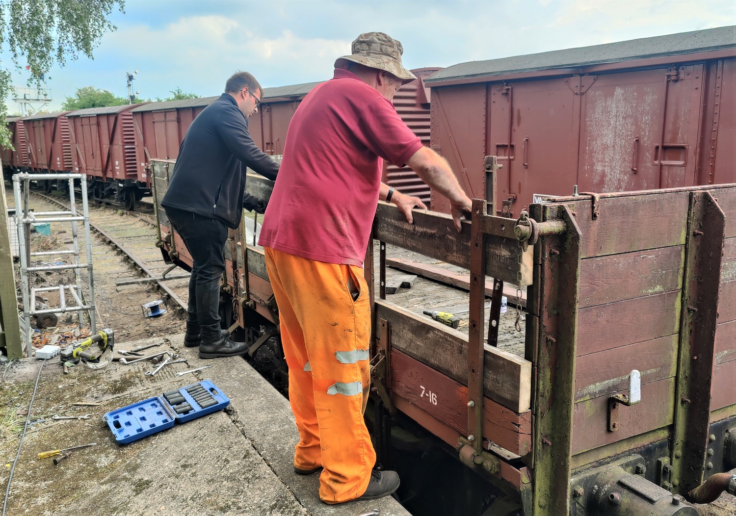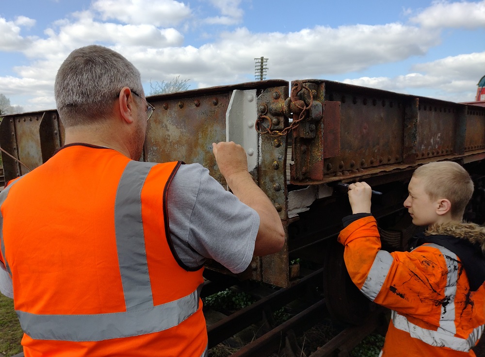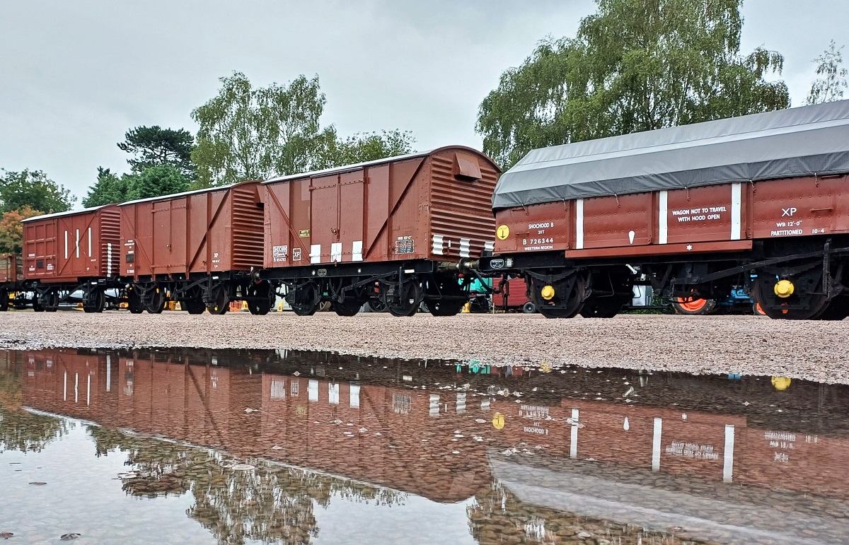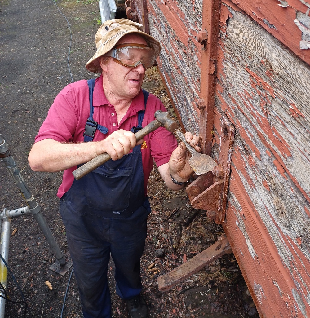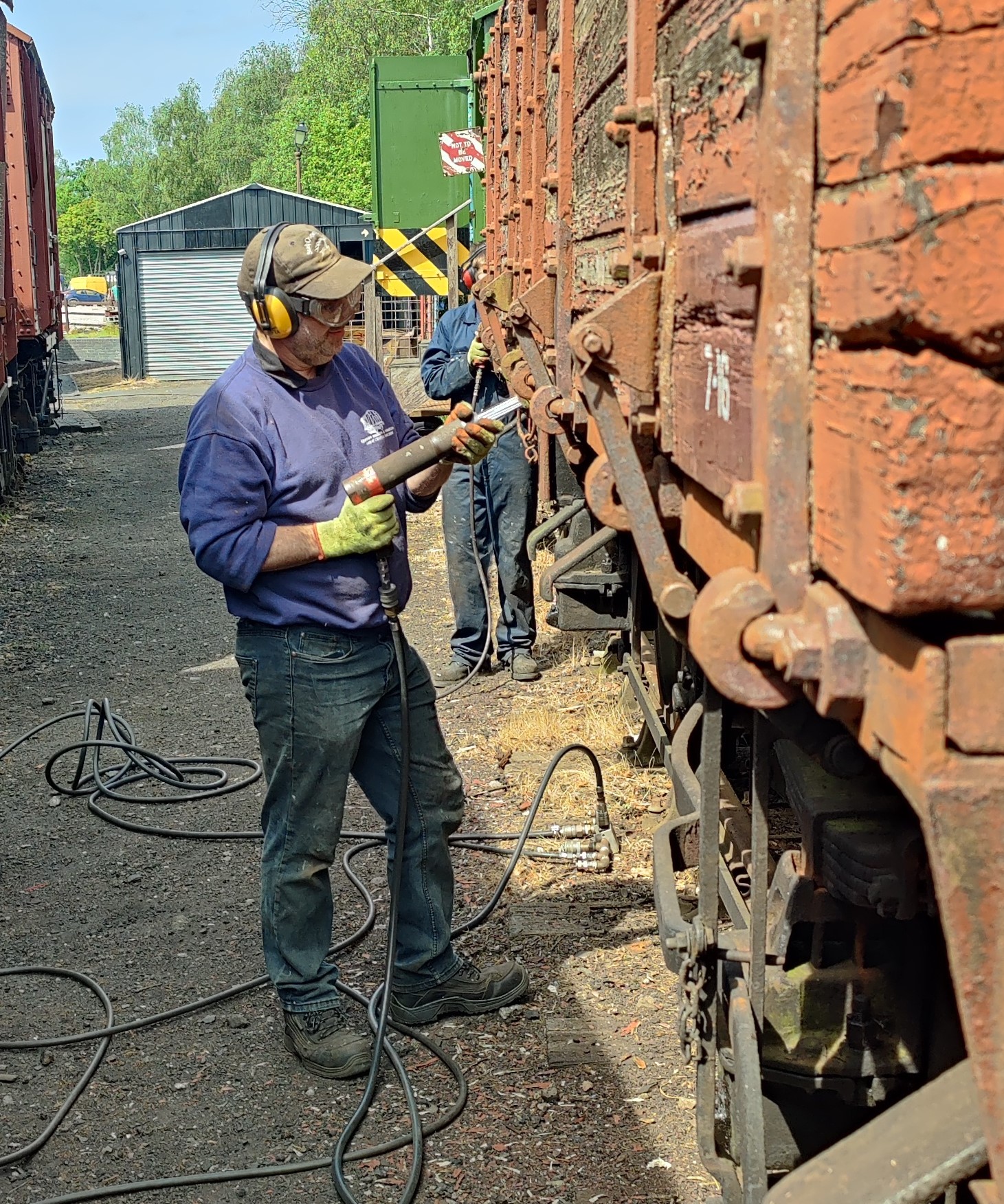 Despite the inclement weather continuing, we have had a busy weekend tidying & sorting the theatrical vans in preparation for the upcoming Railways at Work Gala, doing some housekeeping, attending to gutters and a sticky wagon door, progressed the Pipe wagon and we also managed a bit of work on tank 3777.