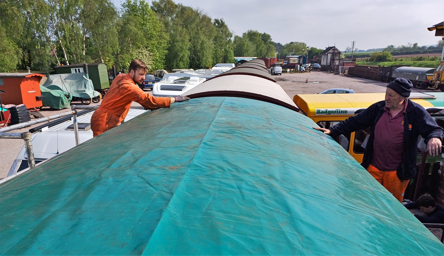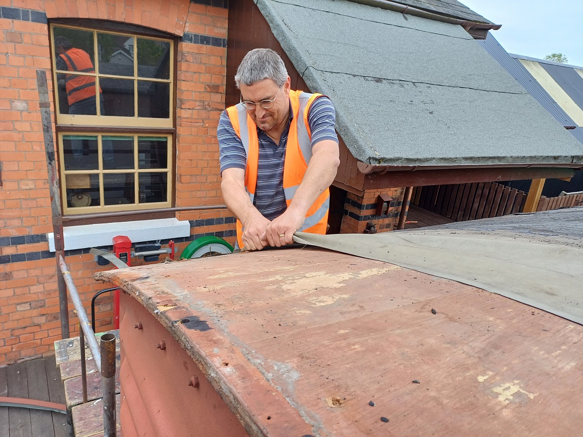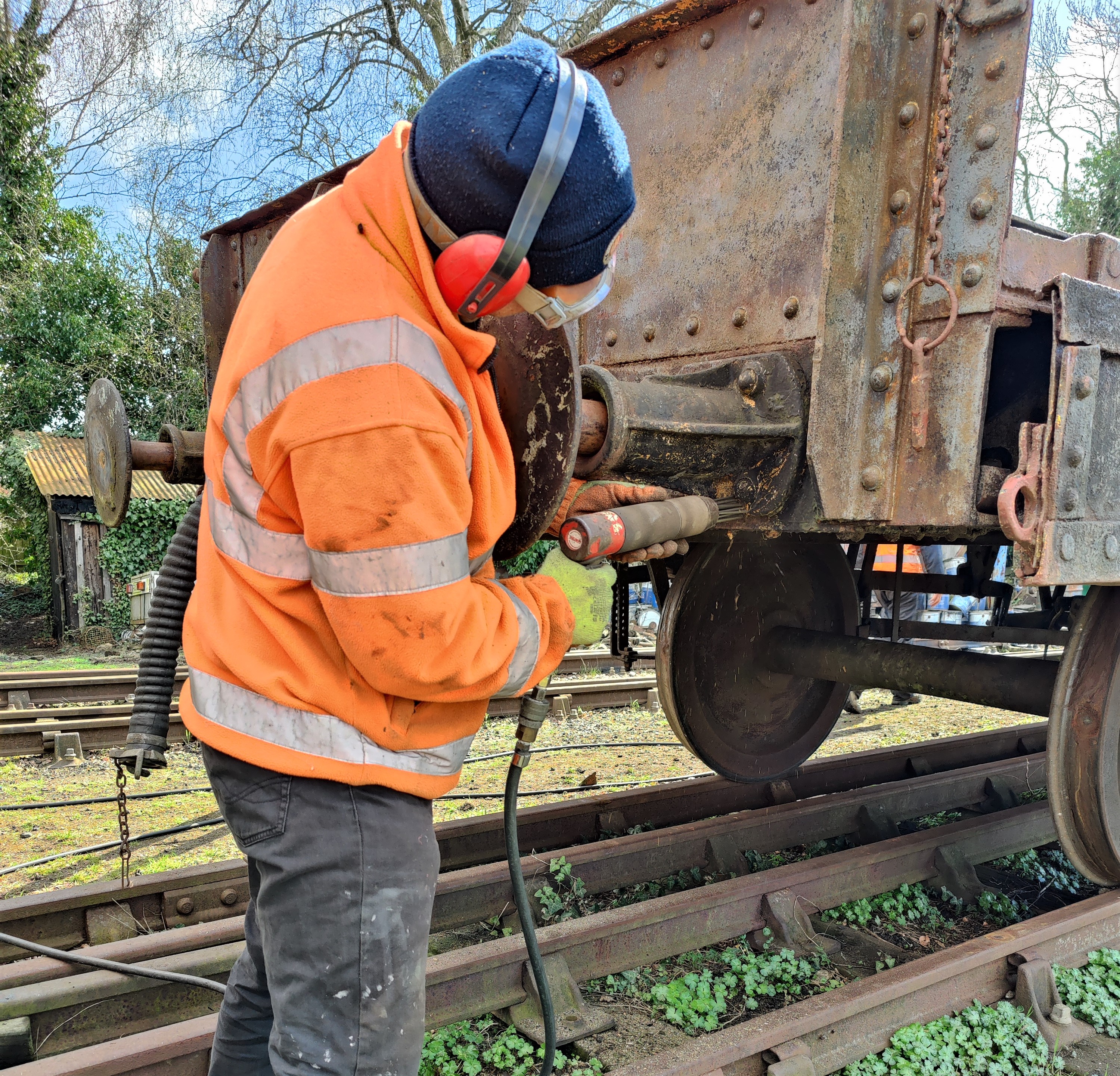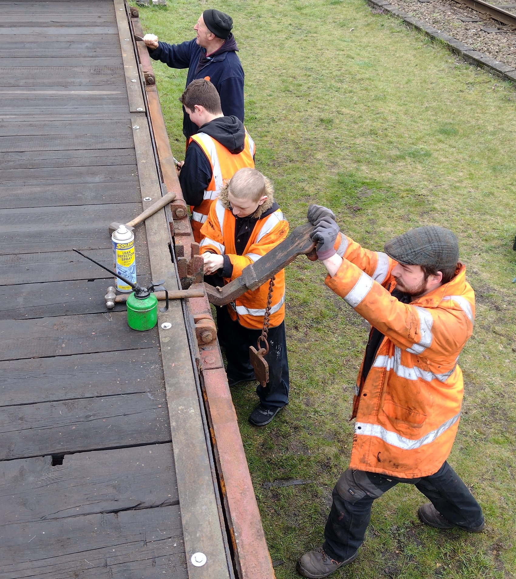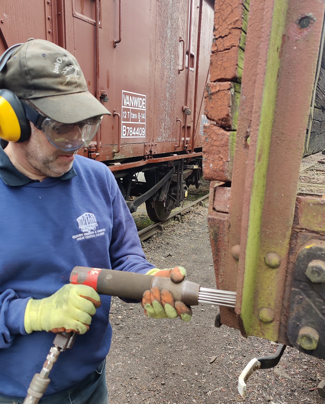 Despite the inclement weather continuing, we have had a busy weekend tidying & sorting the theatrical vans in preparation for the upcoming Railways at Work Gala, doing some housekeeping, attending to gutters and a sticky wagon door, progressed the Pipe wagon and we also managed a bit of work on tank 3777.