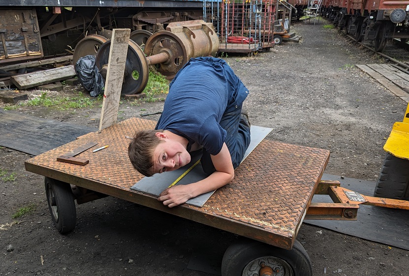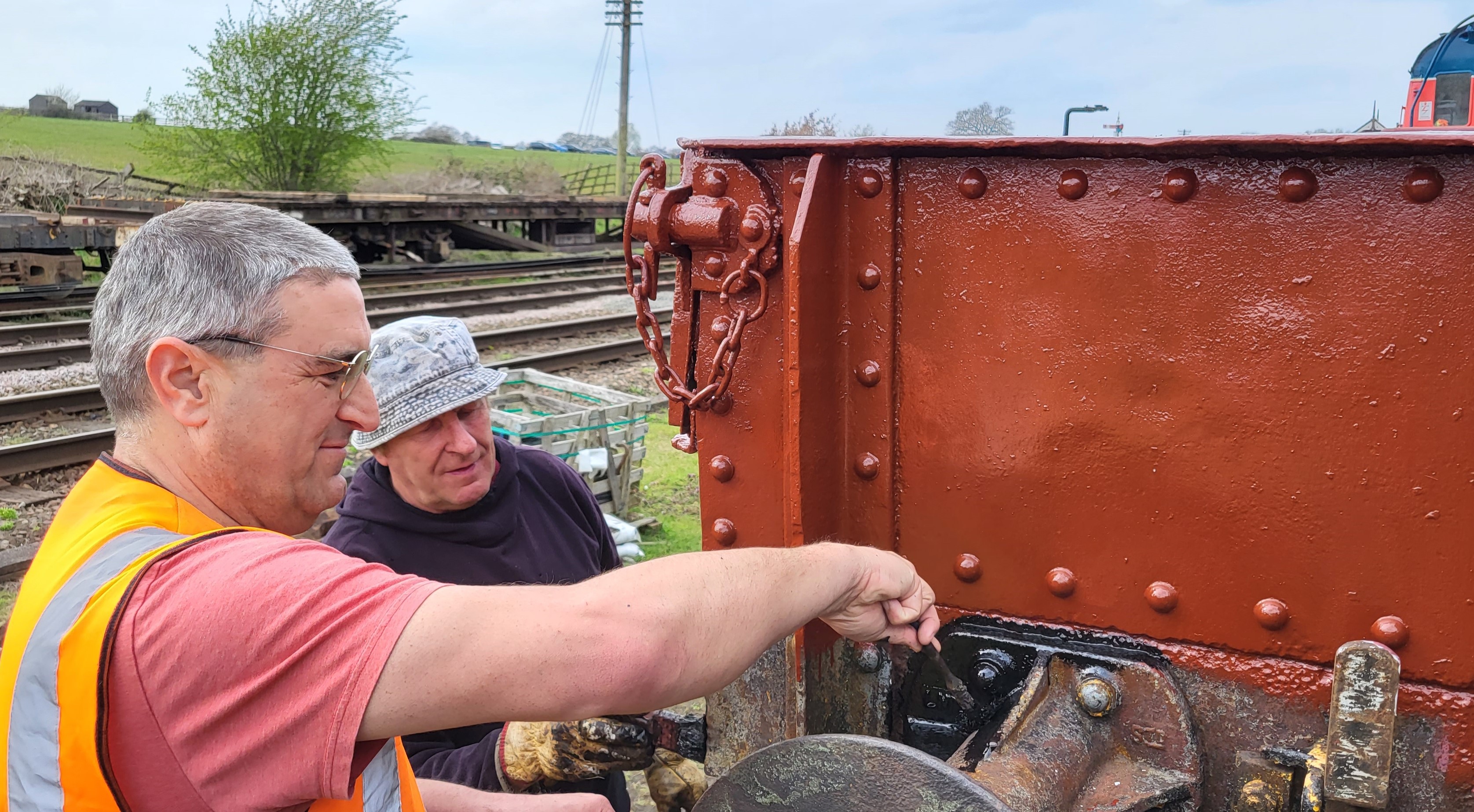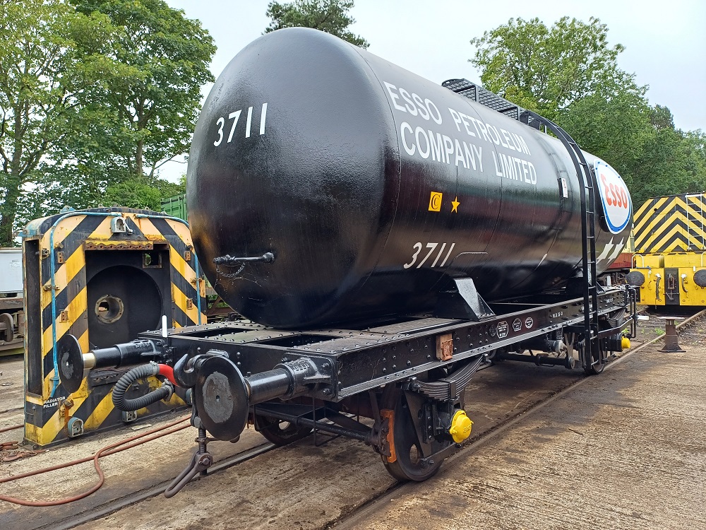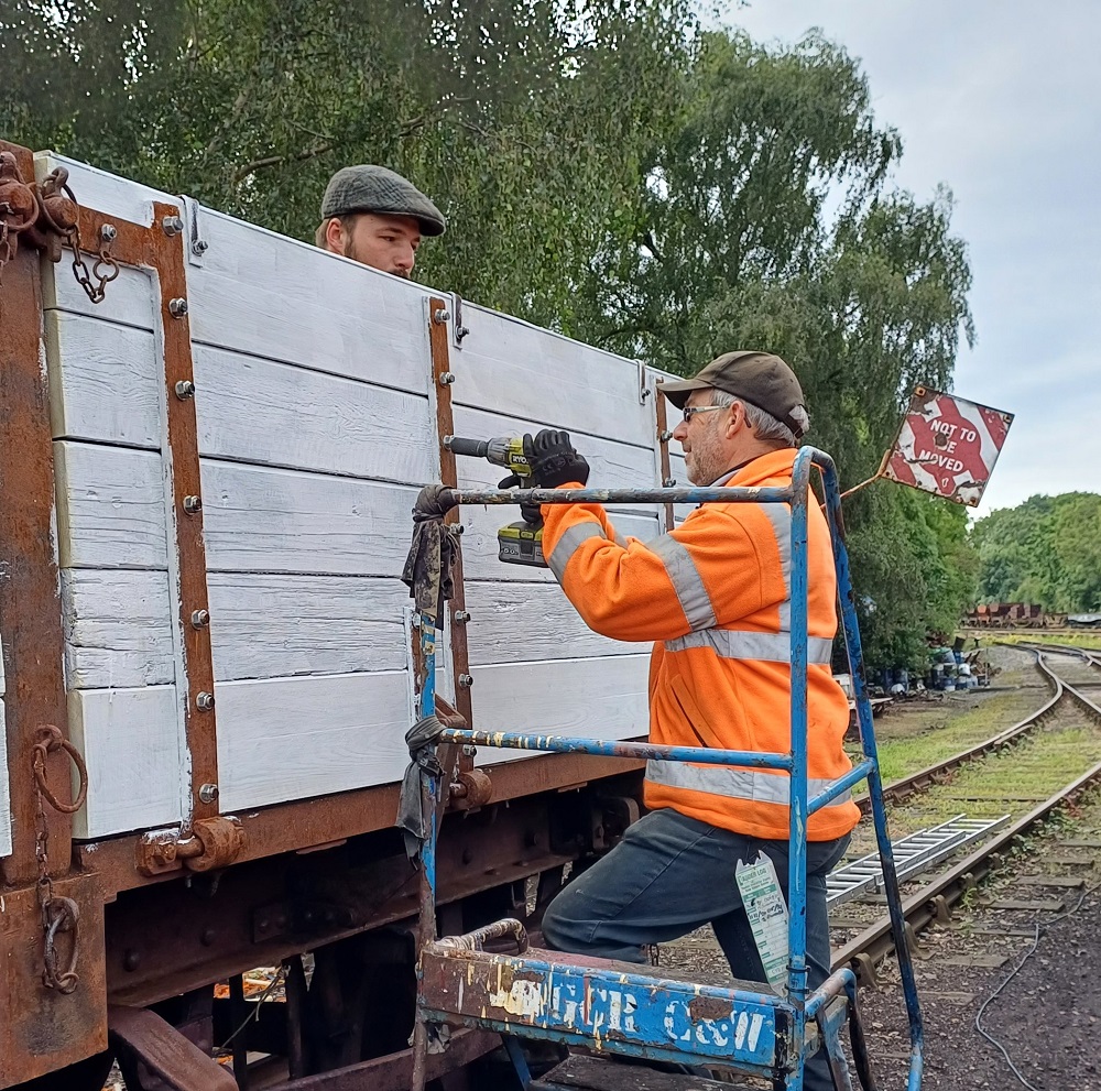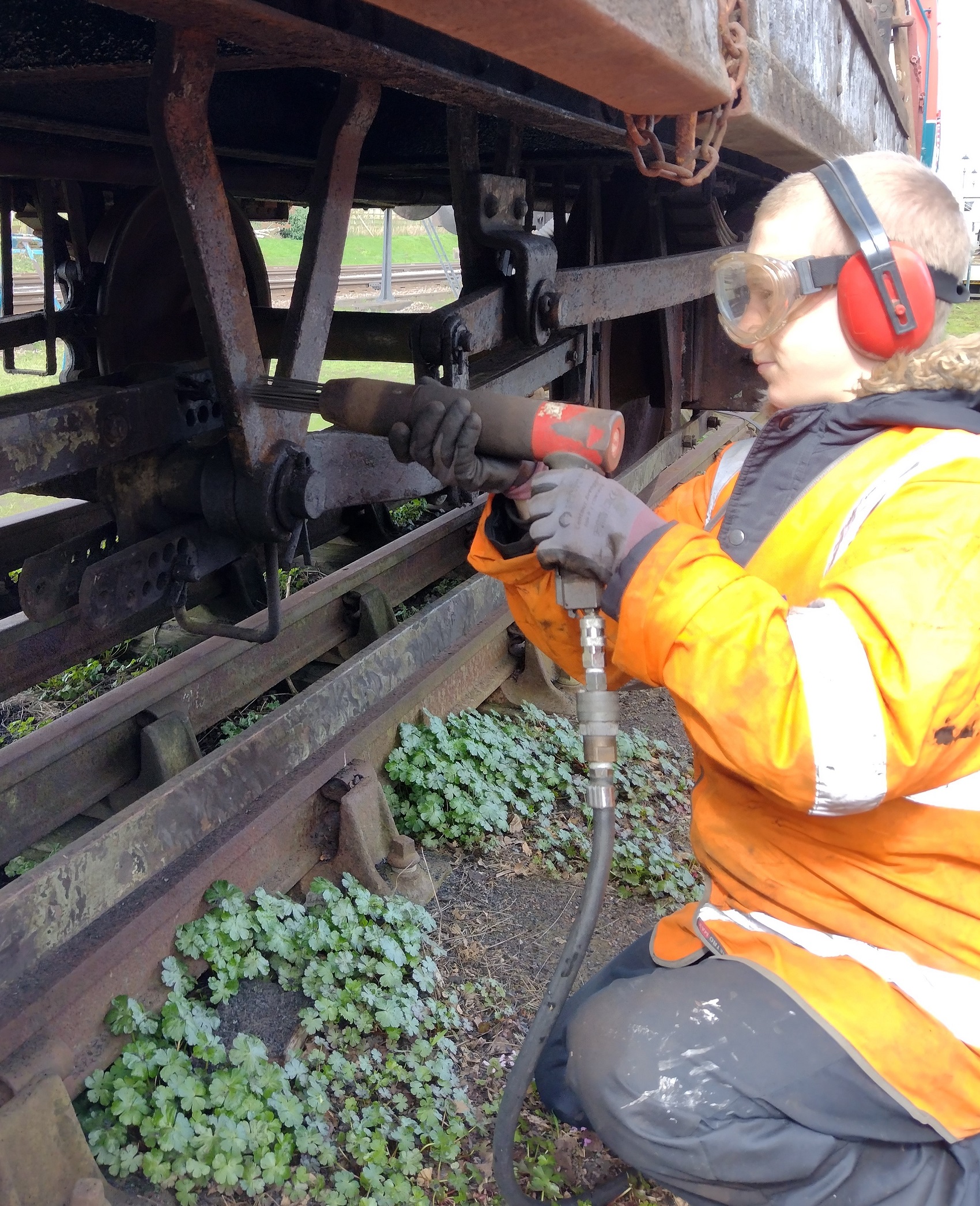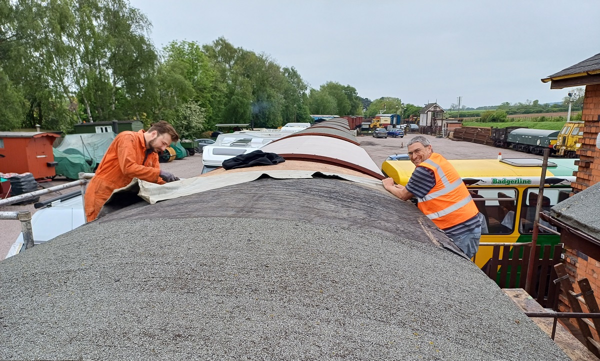 Despite the inclement weather continuing, we have had a busy weekend tidying & sorting the theatrical vans in preparation for the upcoming Railways at Work Gala, doing some housekeeping, attending to gutters and a sticky wagon door, progressed the Pipe wagon and we also managed a bit of work on tank 3777.