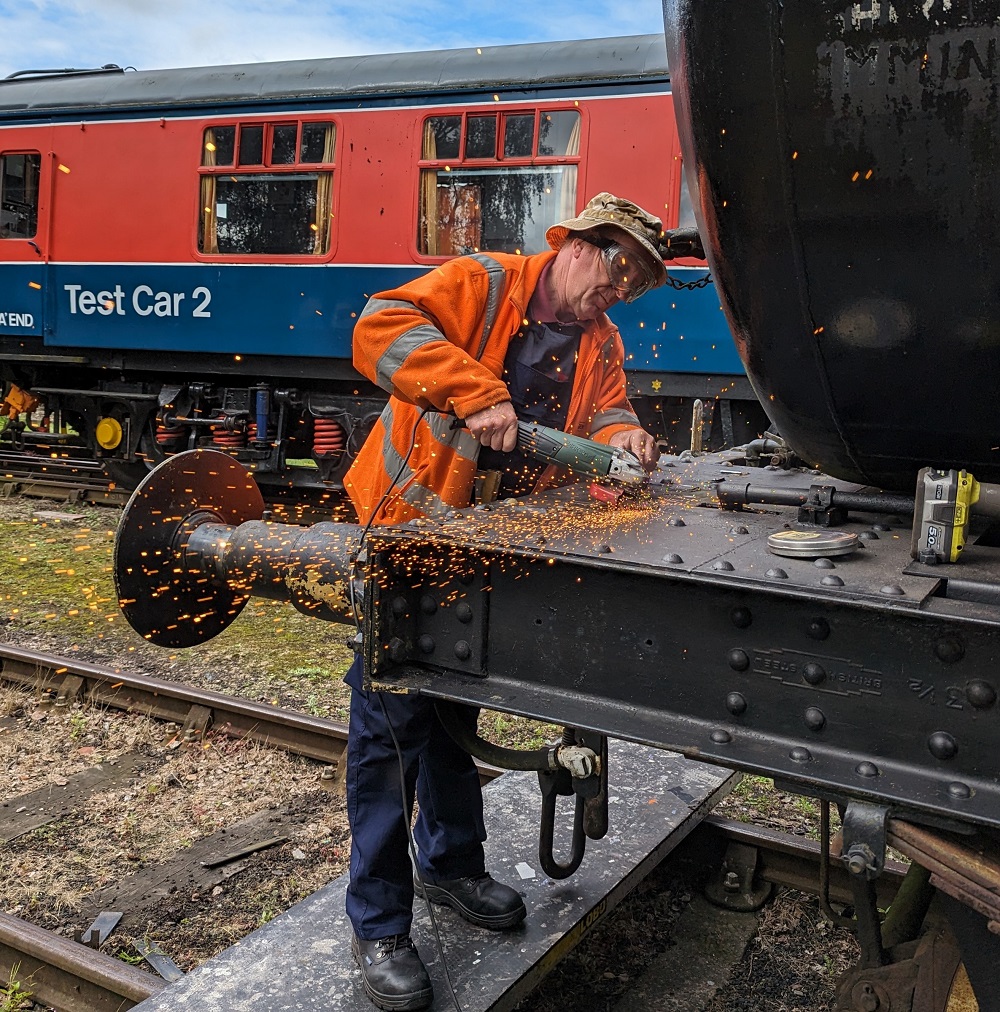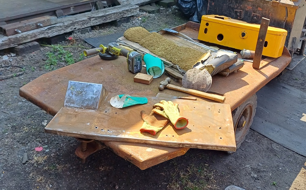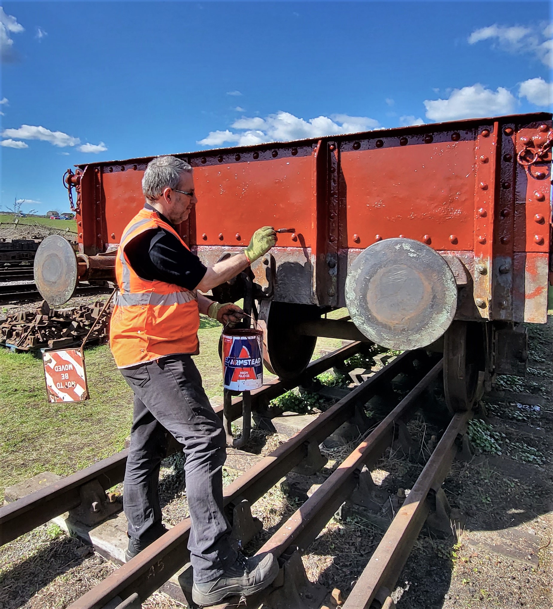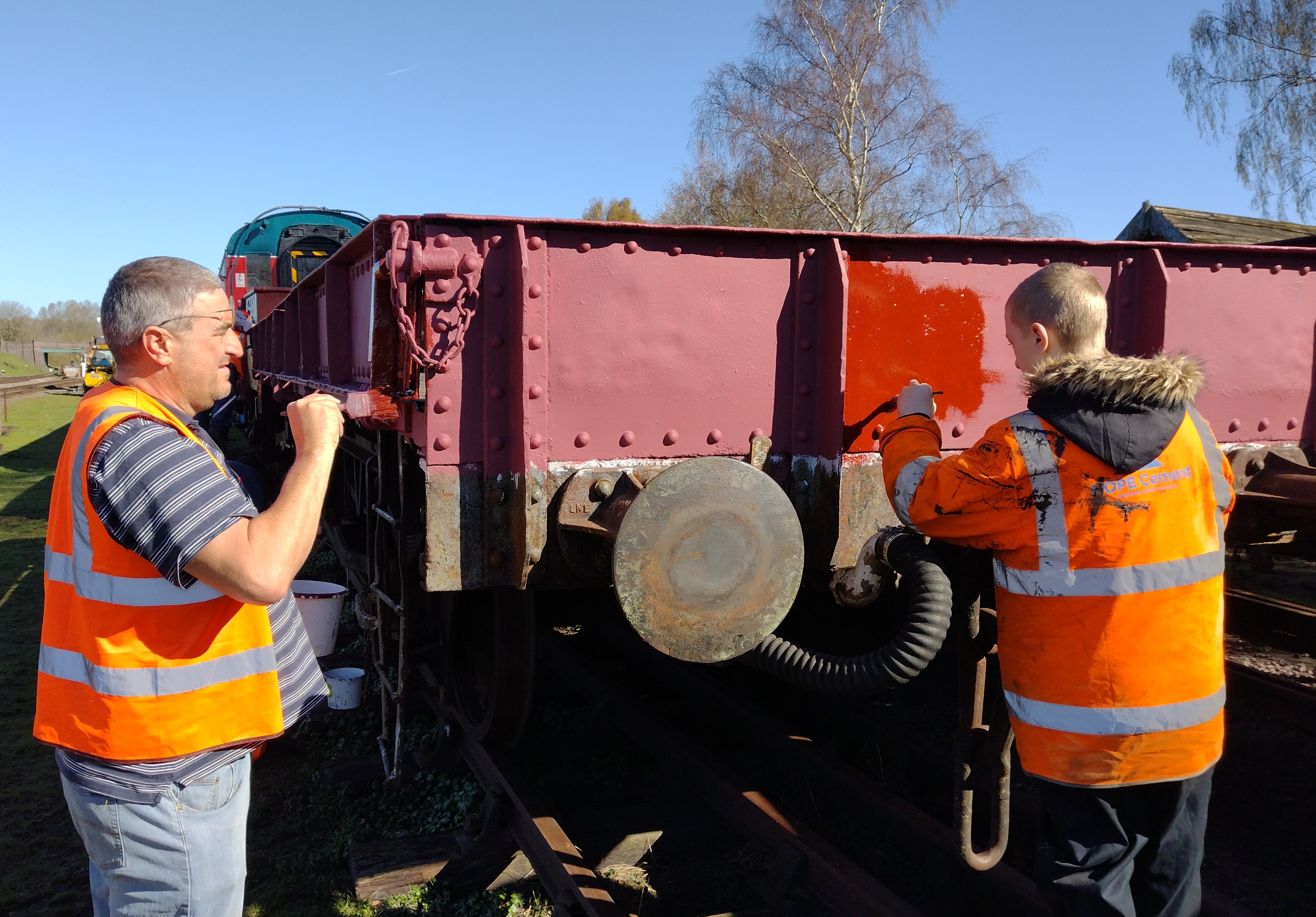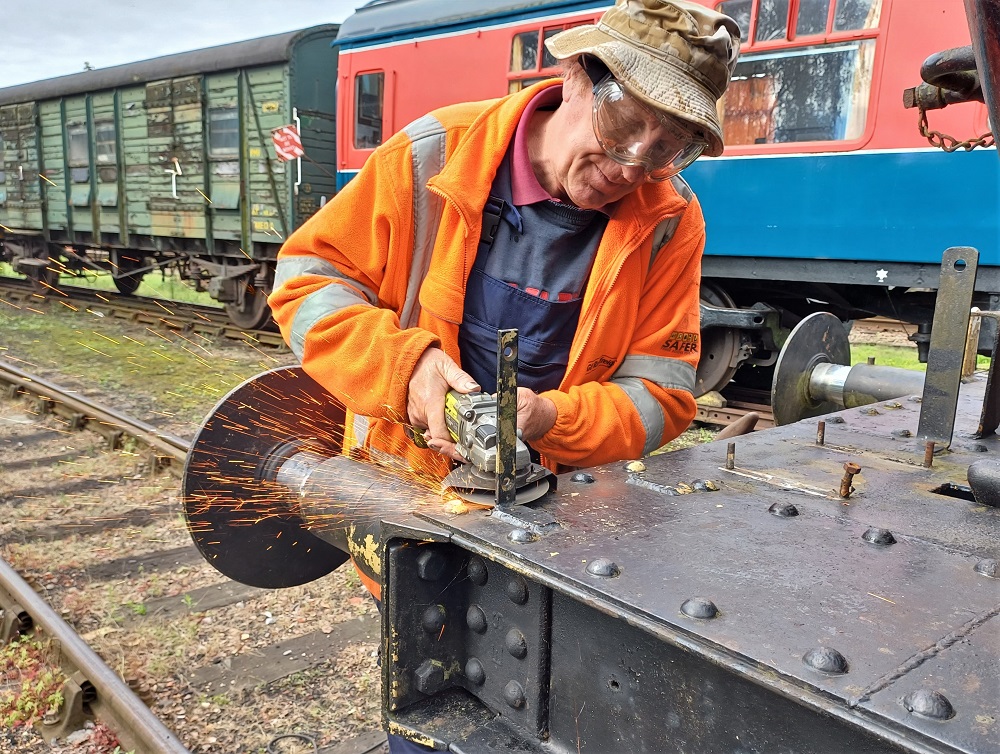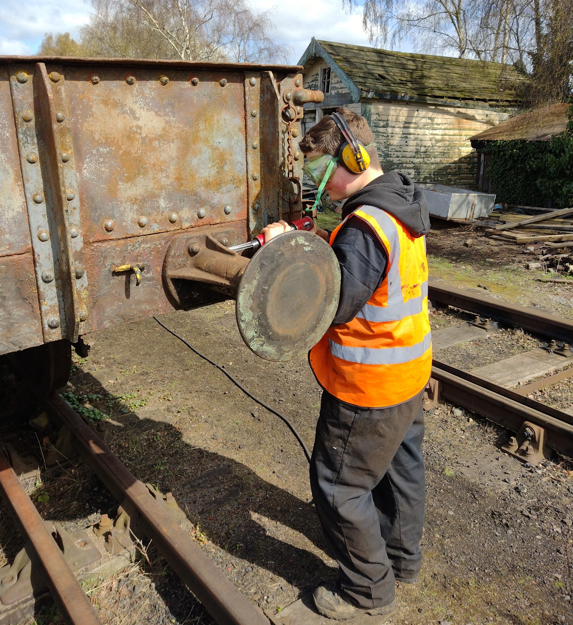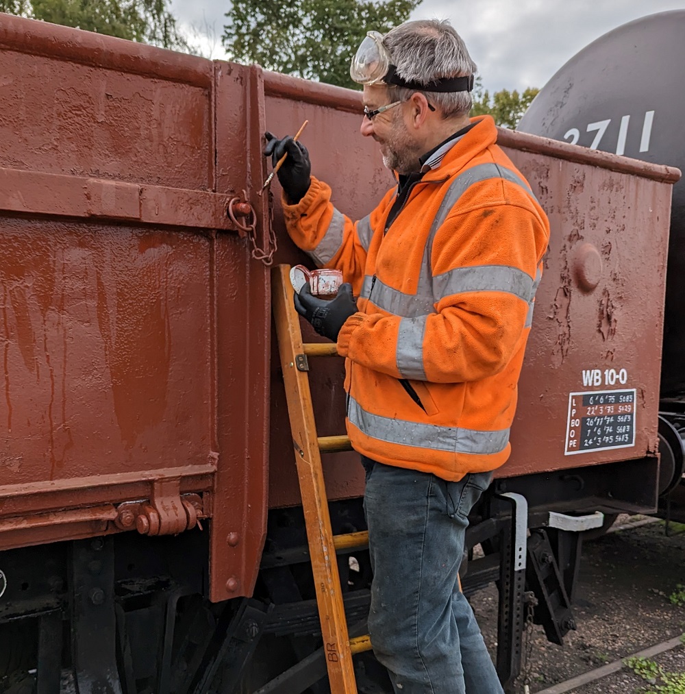 Despite the inclement weather continuing, we have had a busy weekend tidying & sorting the theatrical vans in preparation for the upcoming Railways at Work Gala, doing some housekeeping, attending to gutters and a sticky wagon door, progressed the Pipe wagon and we also managed a bit of work on tank 3777.
