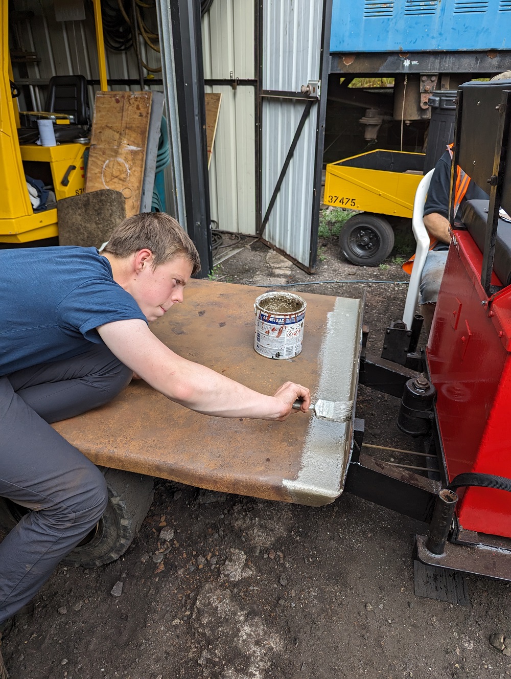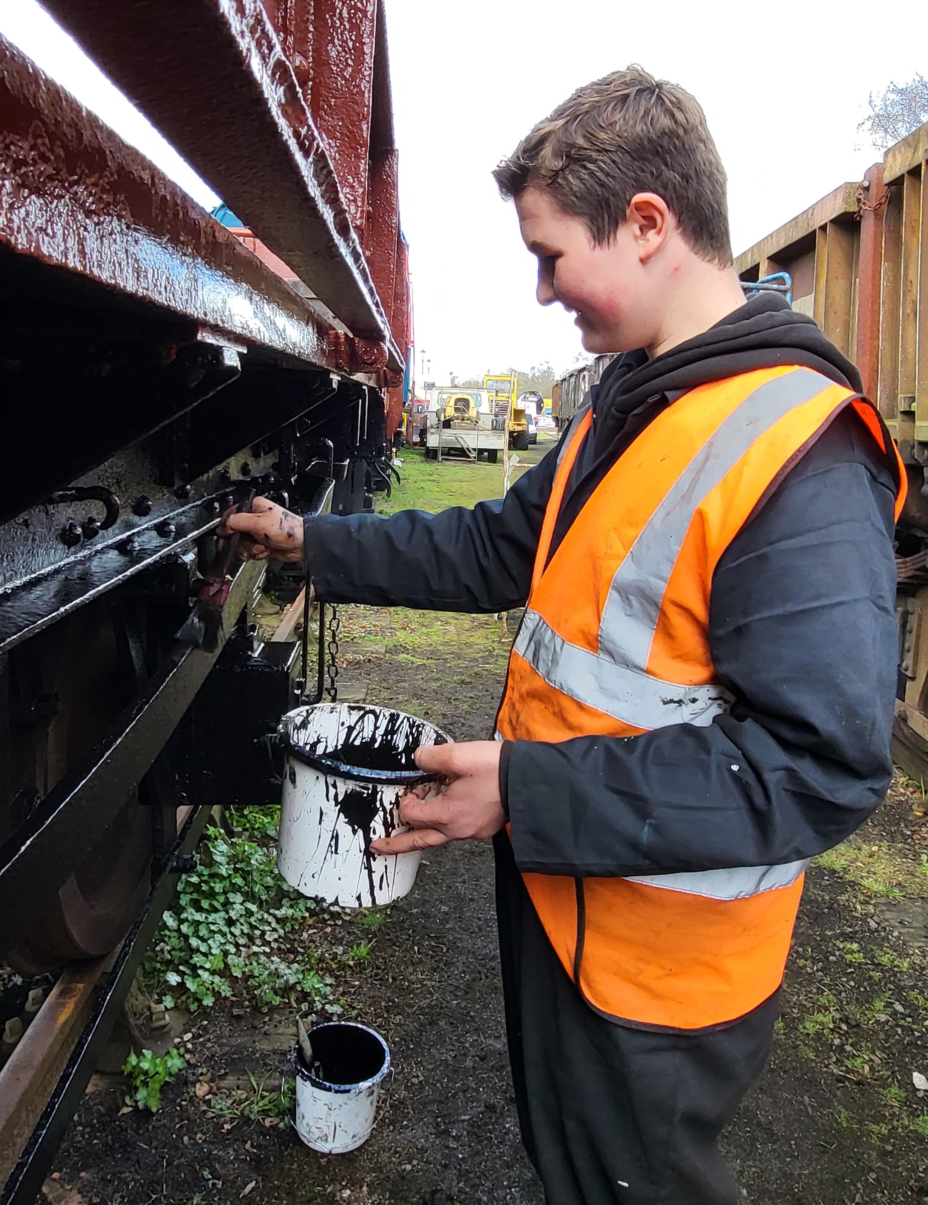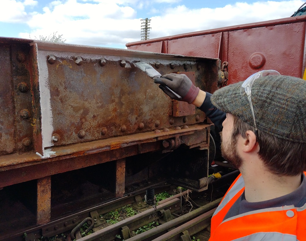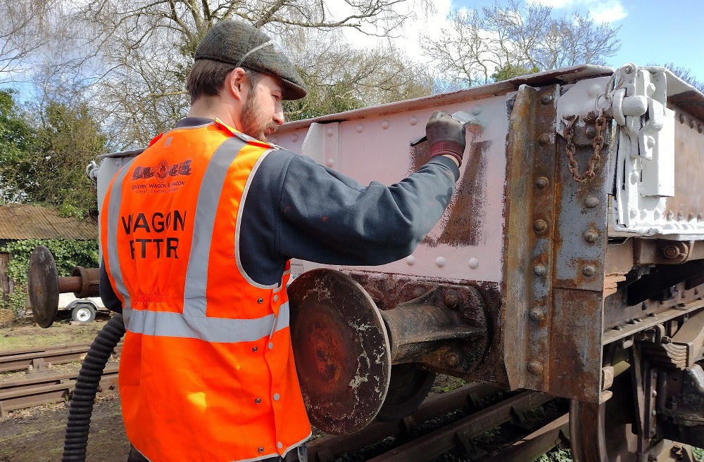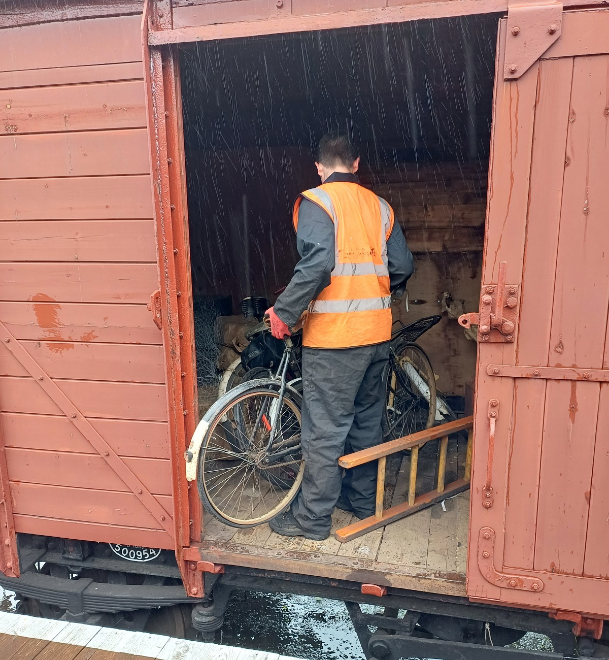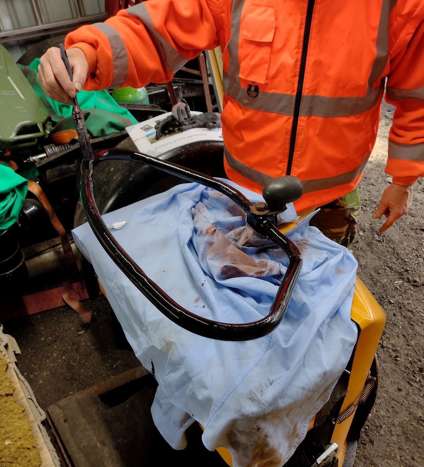 Despite the inclement weather continuing, we have had a busy weekend tidying & sorting the theatrical vans in preparation for the upcoming Railways at Work Gala, doing some housekeeping, attending to gutters and a sticky wagon door, progressed the Pipe wagon and we also managed a bit of work on tank 3777.