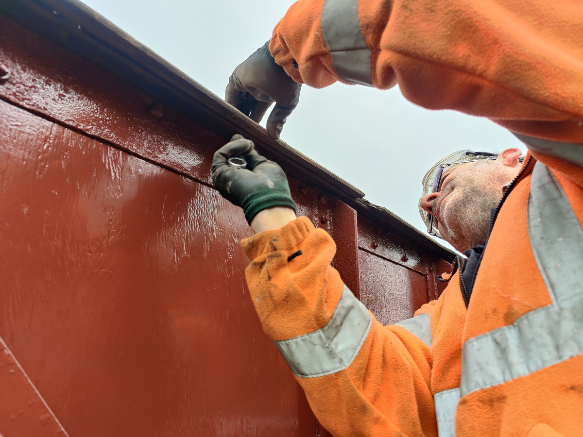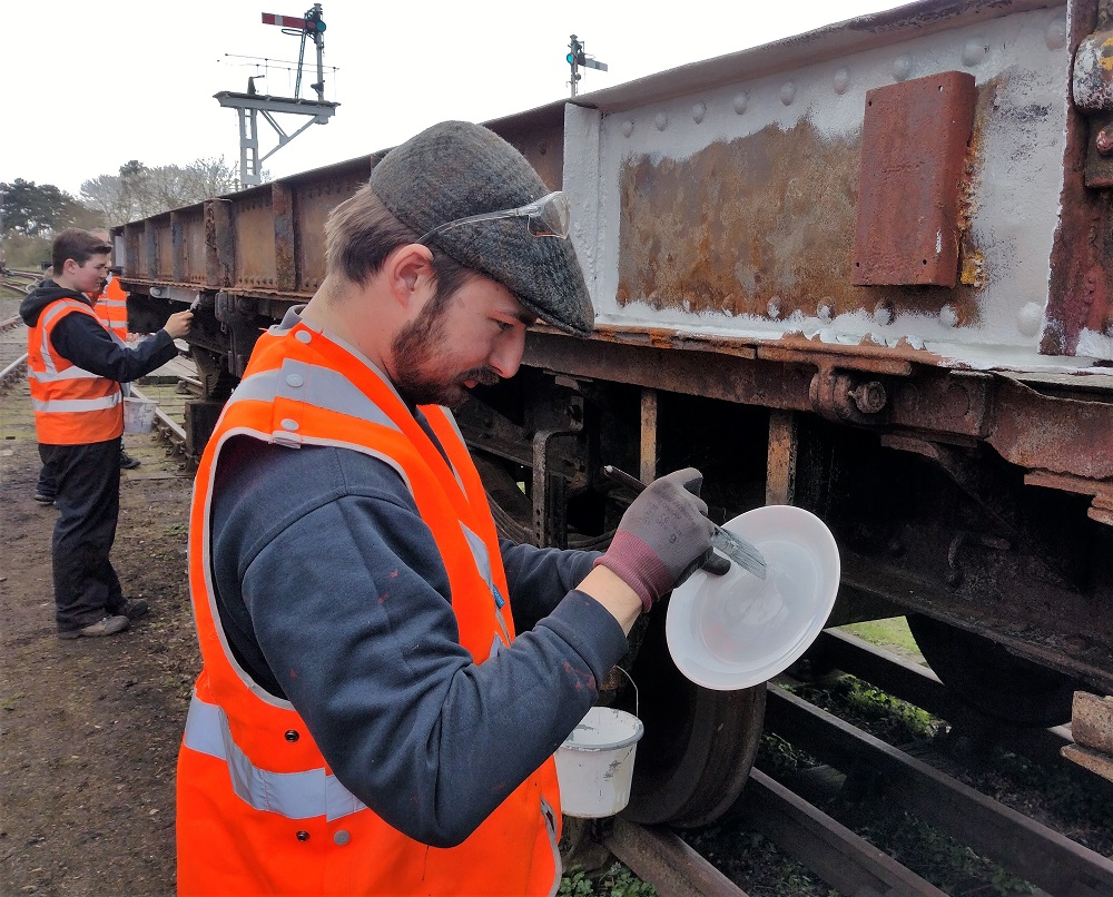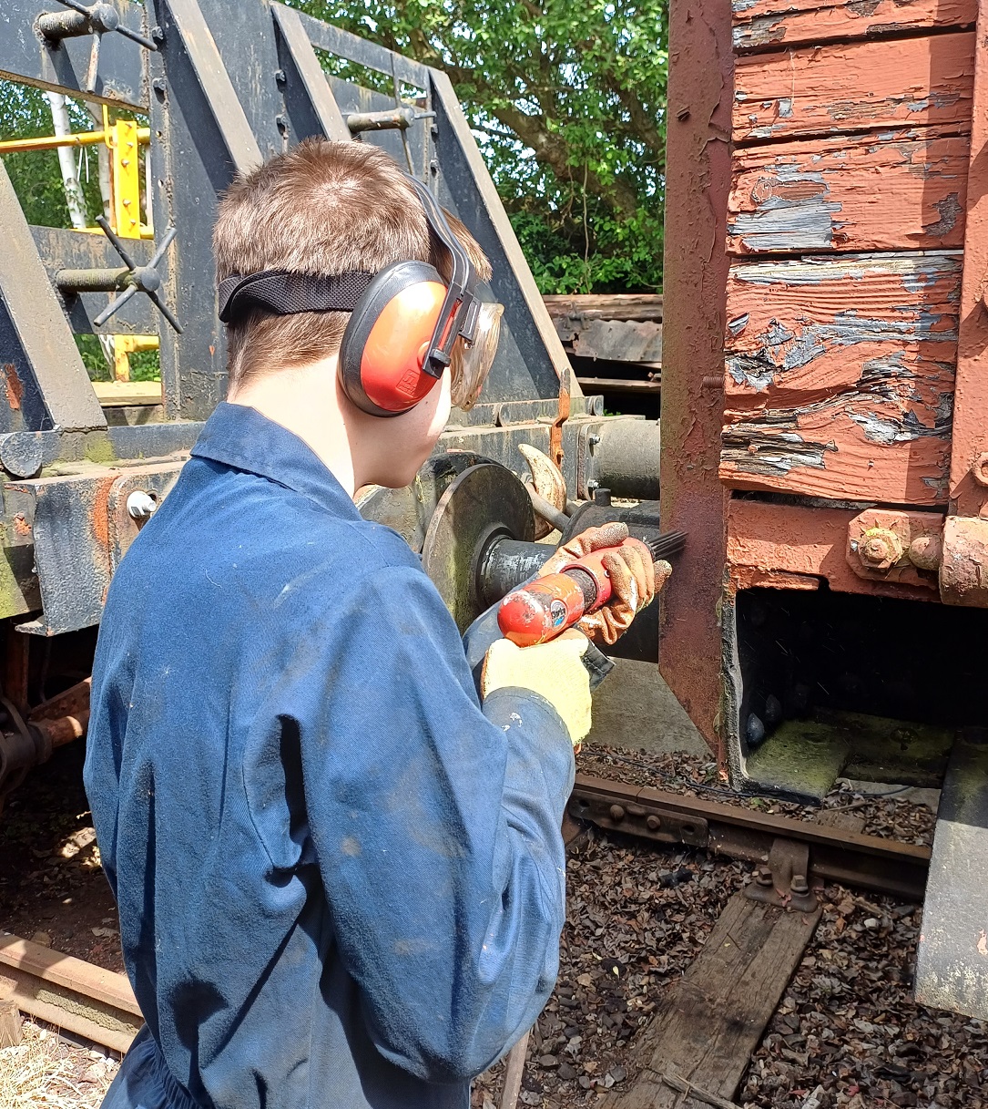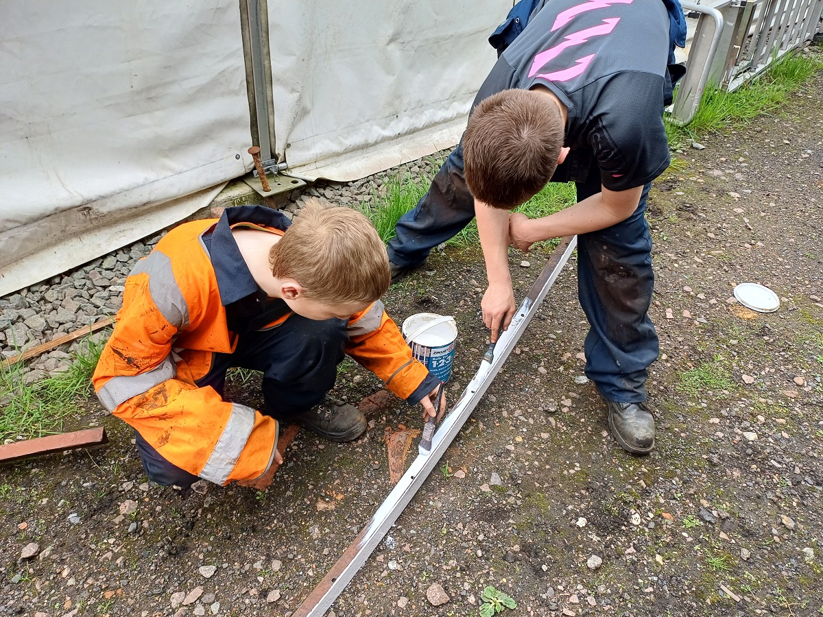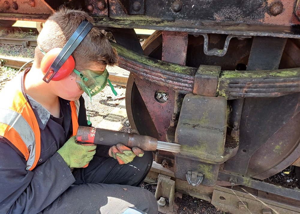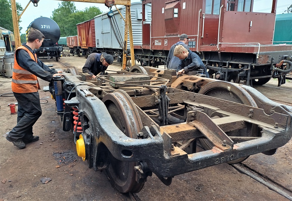 Despite the inclement weather continuing, we have had a busy weekend tidying & sorting the theatrical vans in preparation for the upcoming Railways at Work Gala, doing some housekeeping, attending to gutters and a sticky wagon door, progressed the Pipe wagon and we also managed a bit of work on tank 3777.