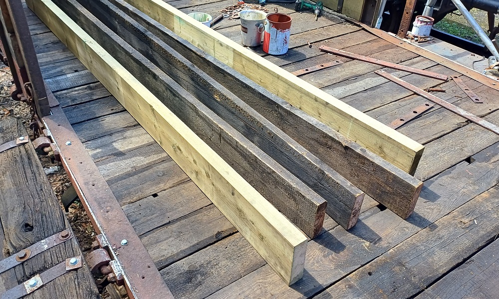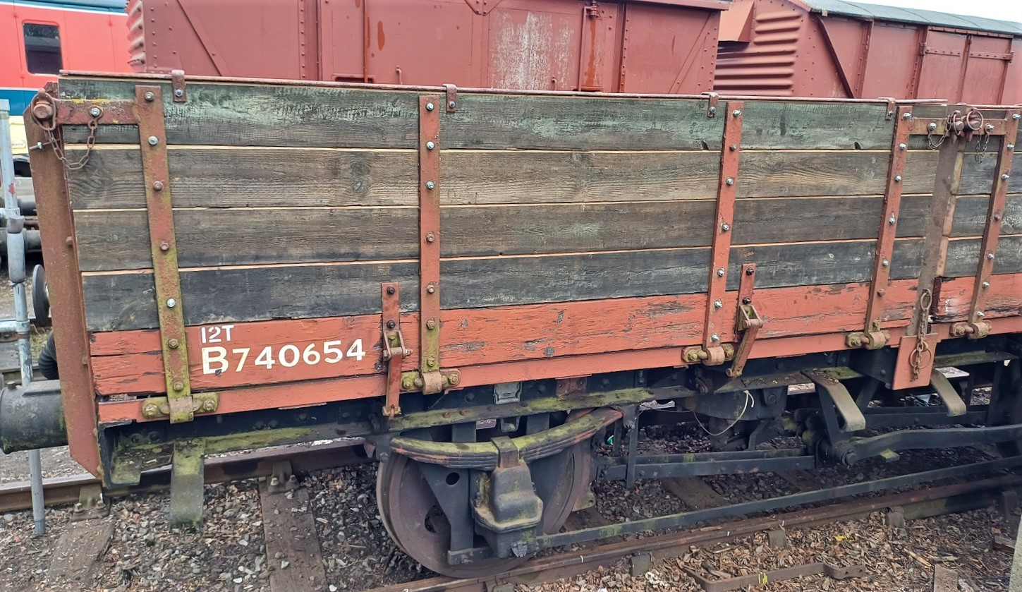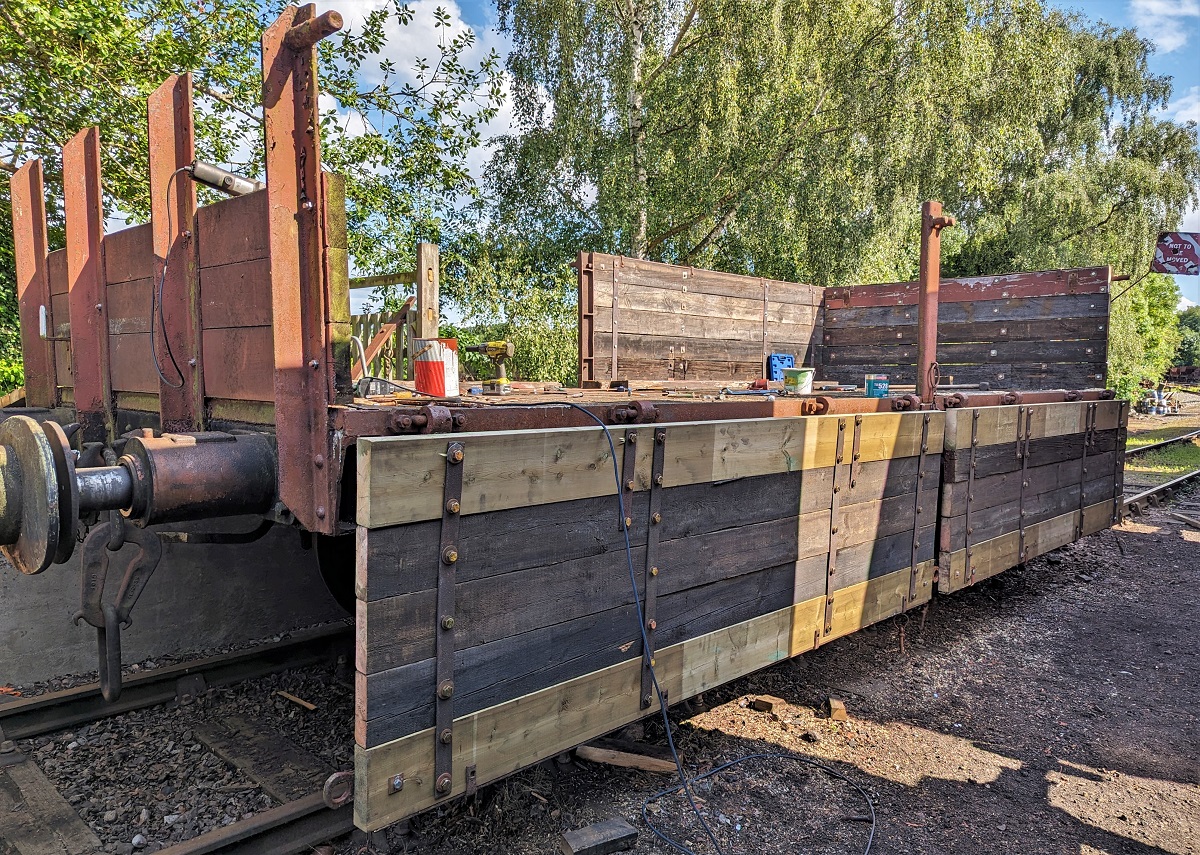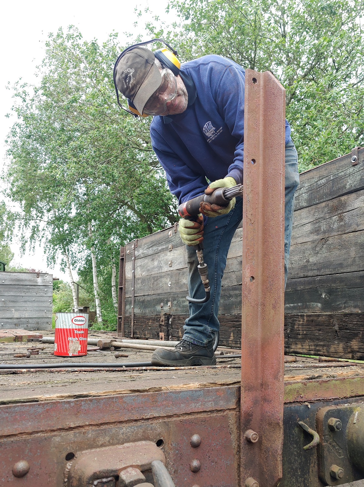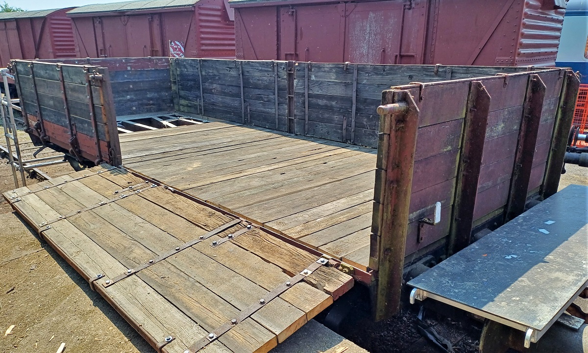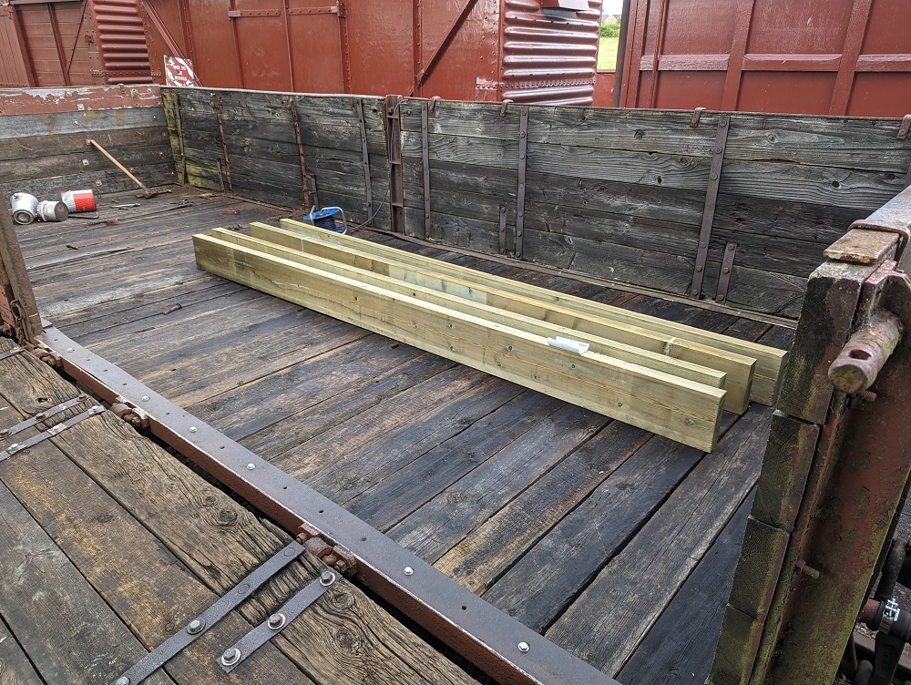 Sunday and the weather improved allowing us to work on the Pipe wagon B740654; after a couple of weeks for the planks to settle we tightened all the door bolts on the west side & south end, and trimmed a couple of slightly long ones.