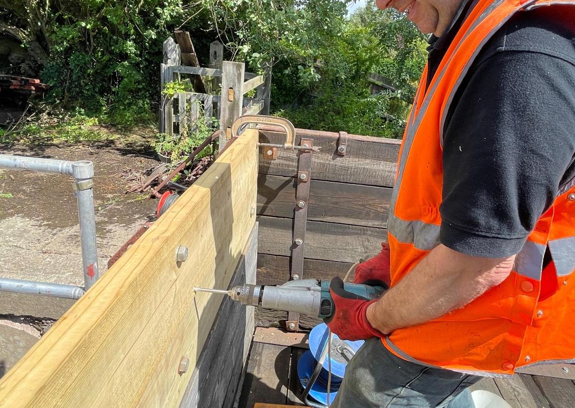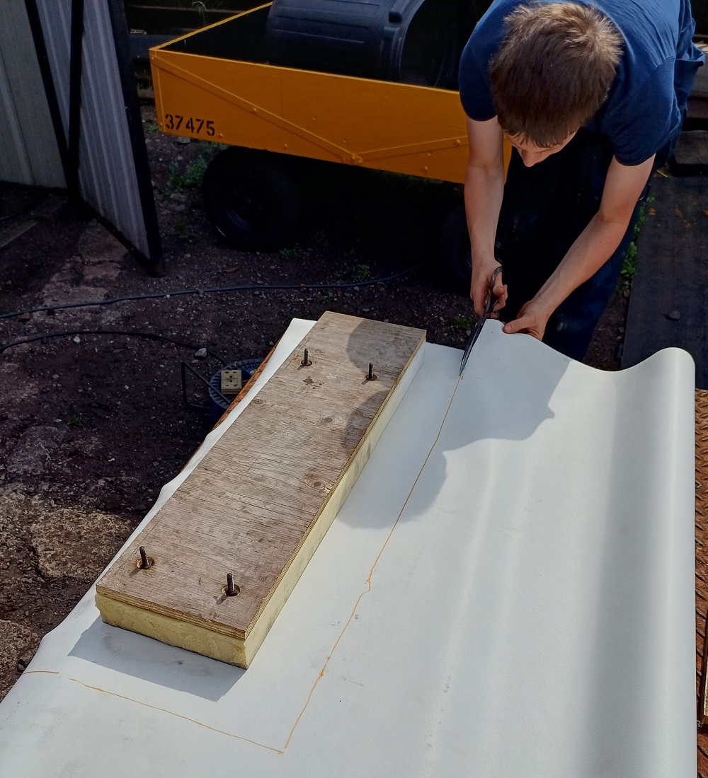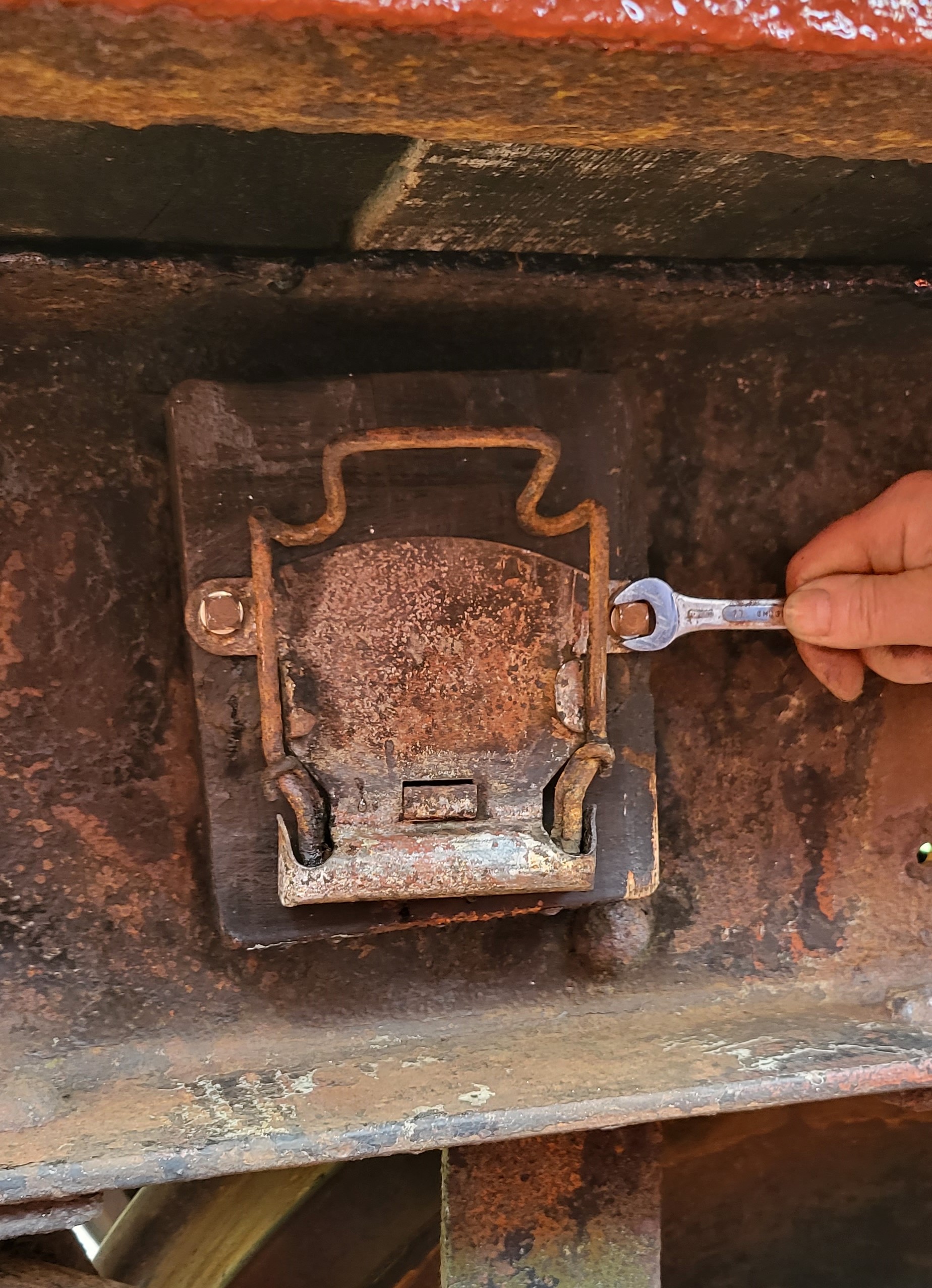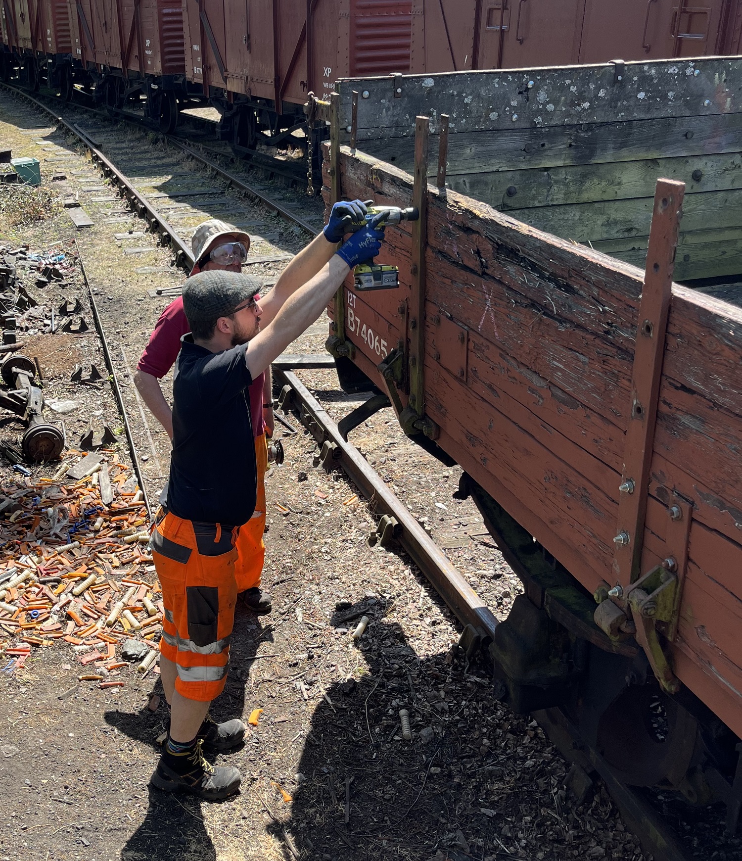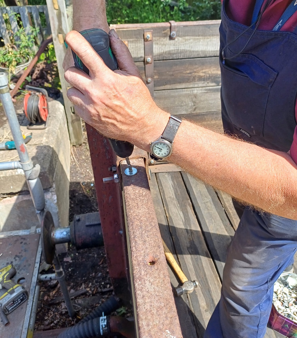 Sunday and the weather improved allowing us to work on the Pipe wagon B740654; after a couple of weeks for the planks to settle we tightened all the door bolts on the west side & south end, and trimmed a couple of slightly long ones.