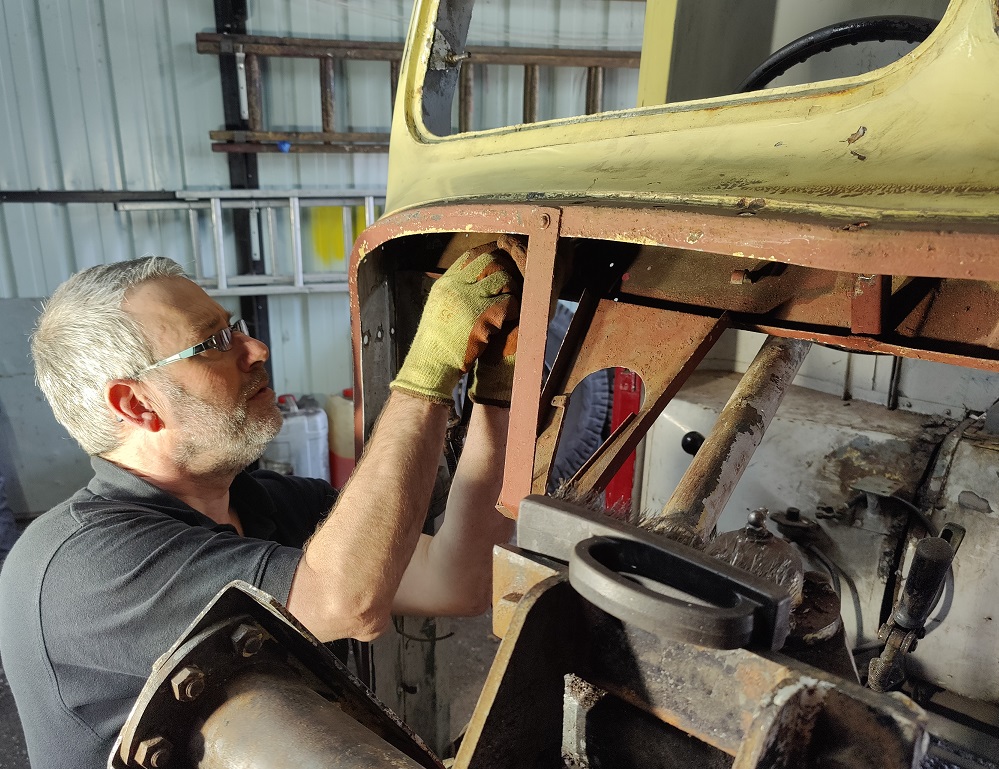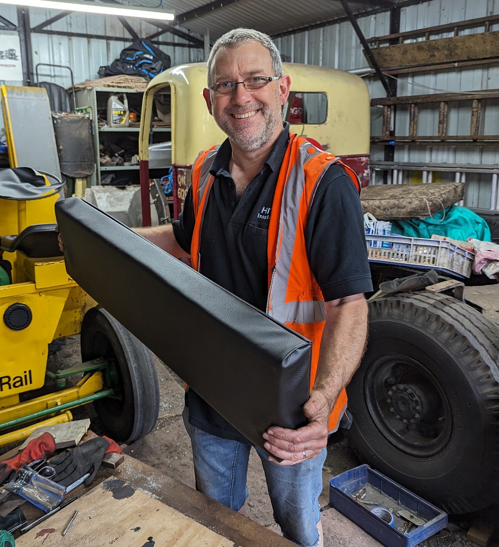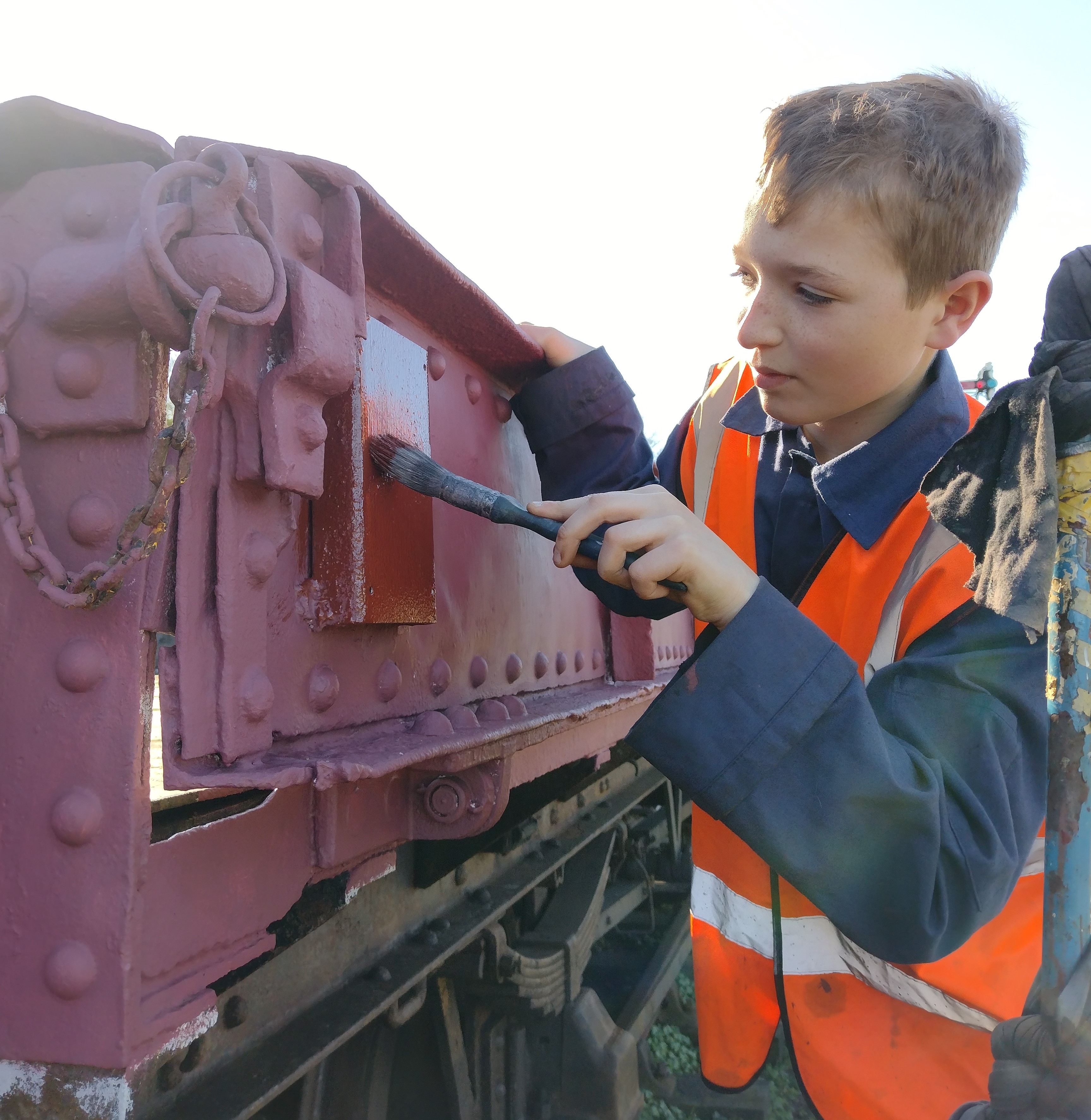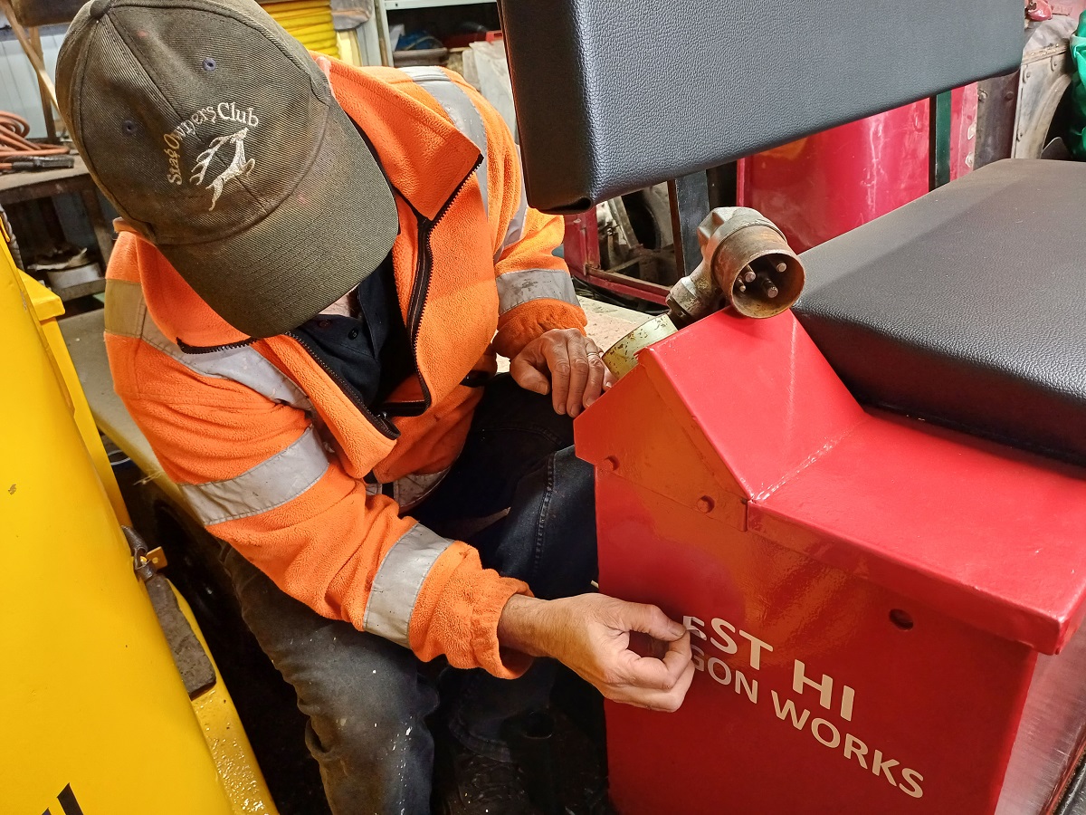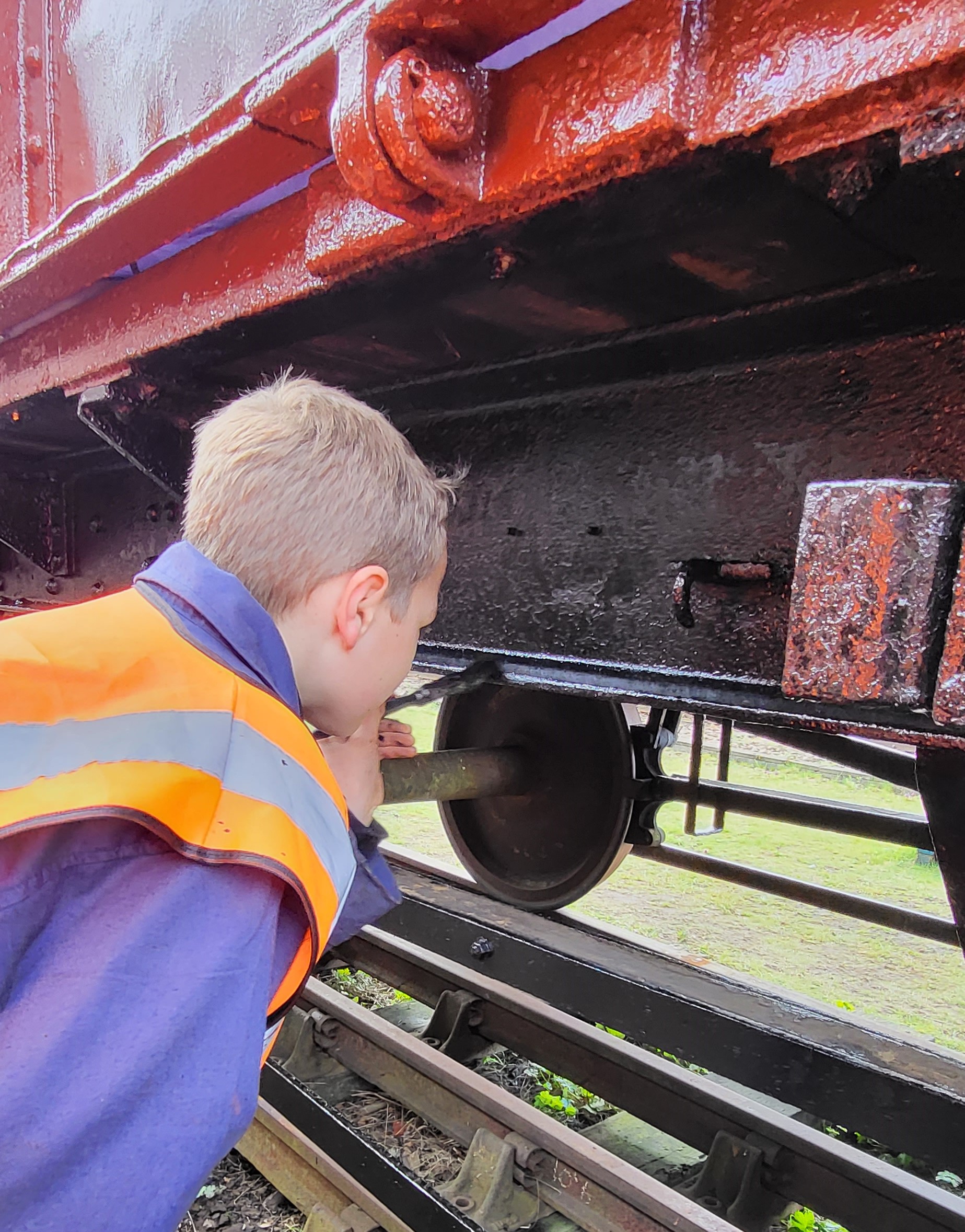 At our Open Weekend in July, Kiki took part adorned with our friends’ West Hill Wagon Works logos; however in preparation for the Railways at Work event Kiki will receive a more appropriate livery. The first step was to carefully remove the temporary vinyl lettering and clean the paintwork. Kiki‘s new livery will be revealed at the Railways at Work Gala on the 19th August.