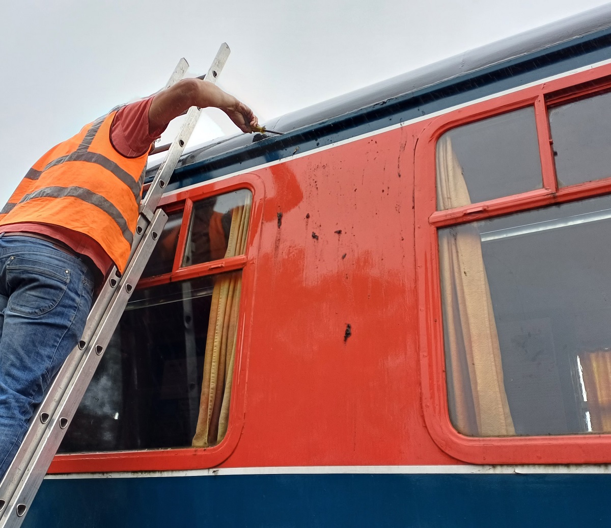 The heavy rain on Saturday highlighted to us that some of the gutters on Test Car 2 and the Mess coach had become clogged with muck and debris. These were cleared out allowing the rainwater to flow along the gutters rather than overflowing down the coach sides.