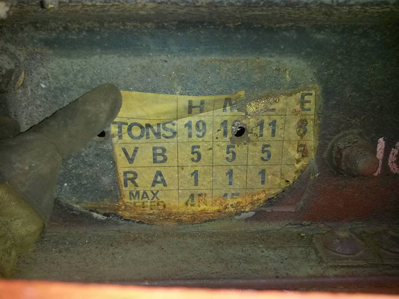 Also of note on B784409 we removed the east side wagon plate, this was fitted in 1981 when the vehicle had its vacuum brakes removed, fitted with air brakes and new suspension becoming VEA 230097. This uncovered the original HMLE data panel. This gives Route available and speed data for the vehicle under various load conditions.