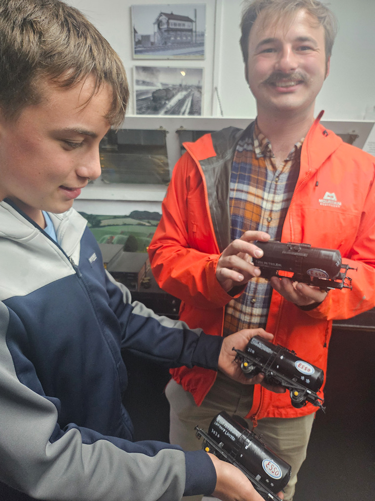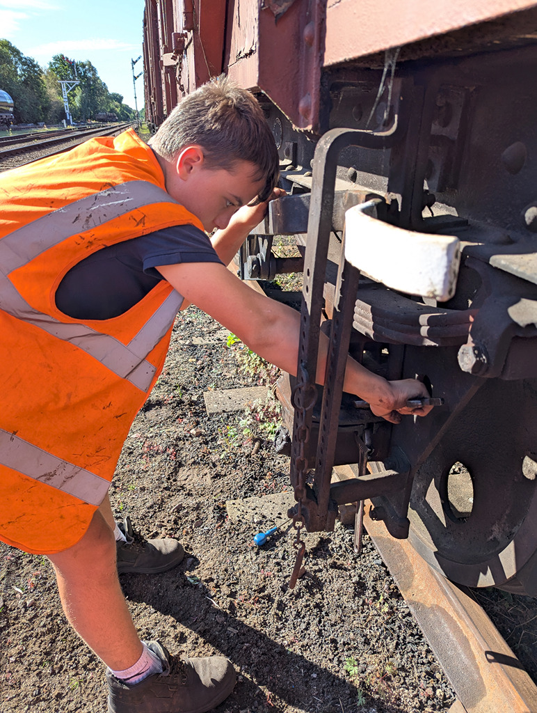 Dave and Dan continued with the signwriting on 3606 with Dan taking care of the OLE warning flashes, and Dave the lettering on the west side solebar.