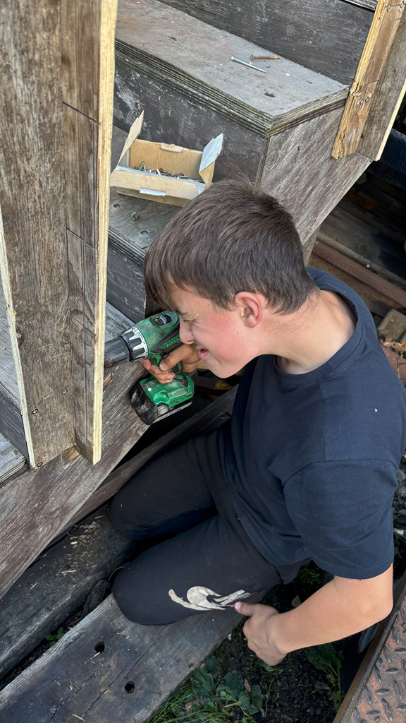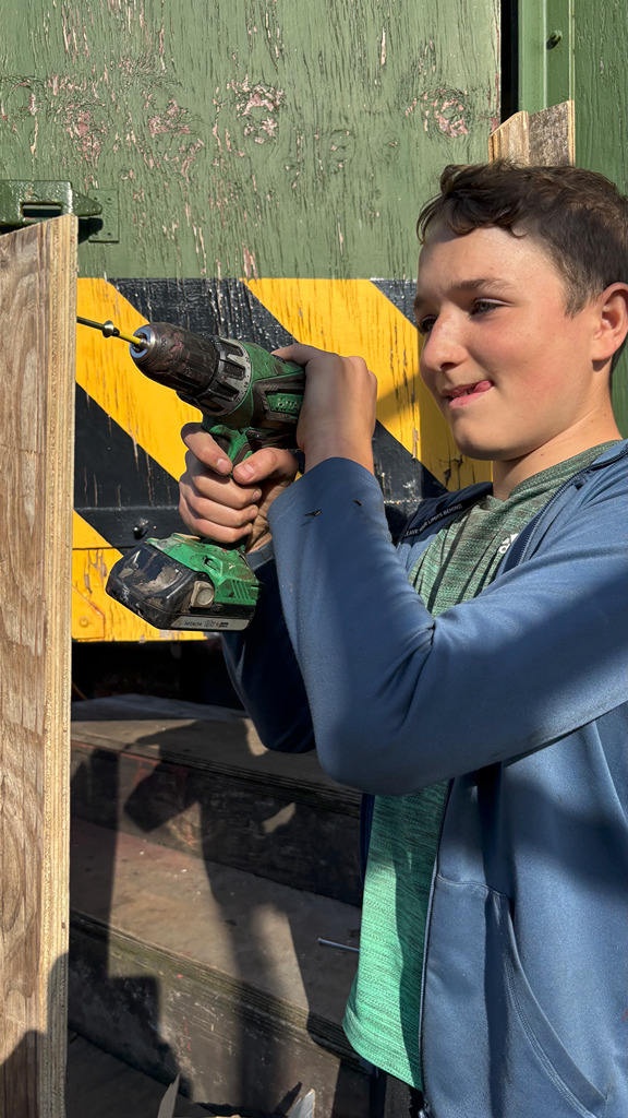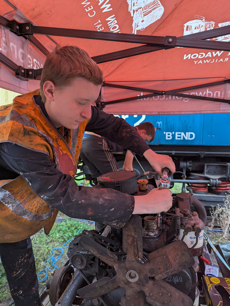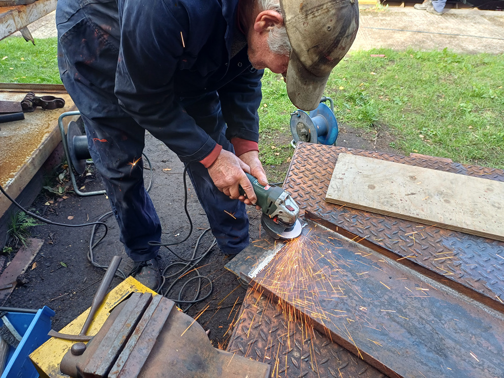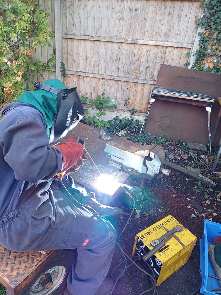 Charlie was able to use the smaller of the two new welding sets to practise welding on a very rotten spark guard from 3689. While we aren’t focusing on that tank, the opportunity to try out the welder was valuable