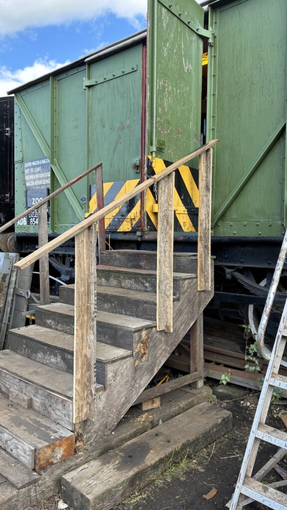 We also noticed that the OLE flash mounting plate on the east side of 3854 was also positioned over the Esso Petroleum text, so Nick removed it. As we are before paint, this will likely be welded back to the tank on the other side of the ladder.
