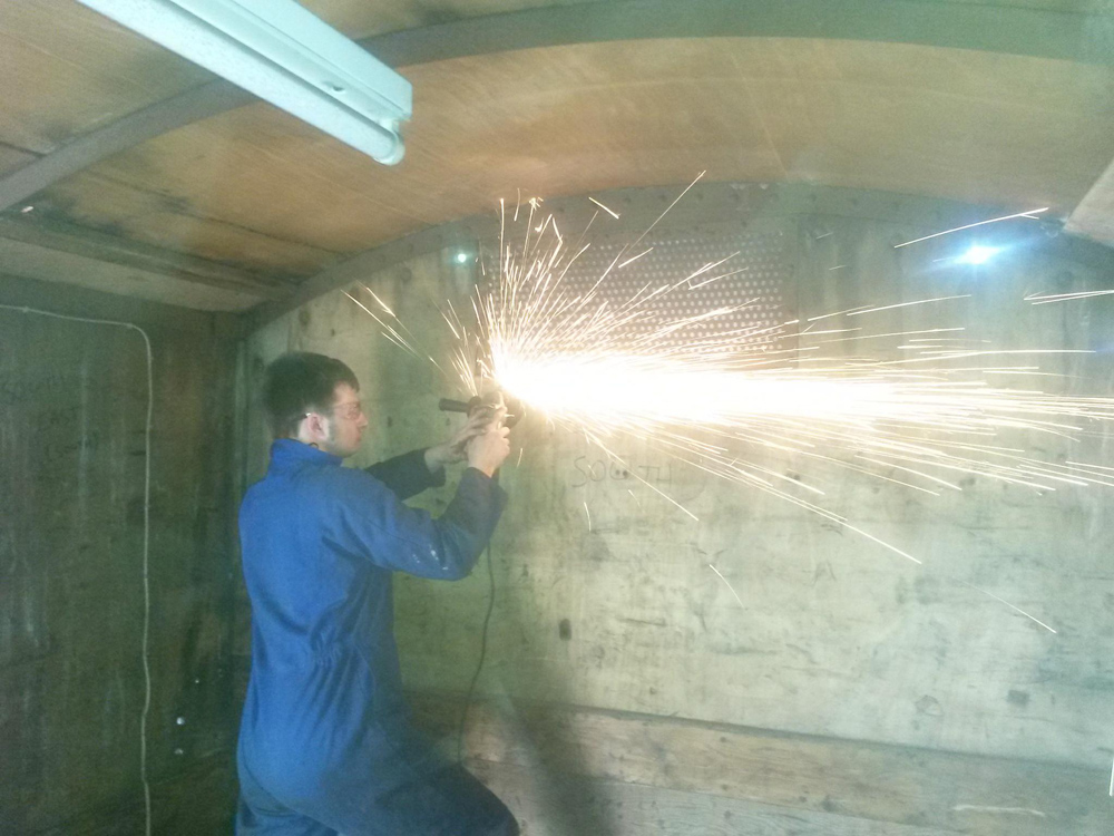 With the vehicle being 60 years old these did not want to undo so out came the grinders. Each one was cut down its length and the remaining nut pieces chiselled off.