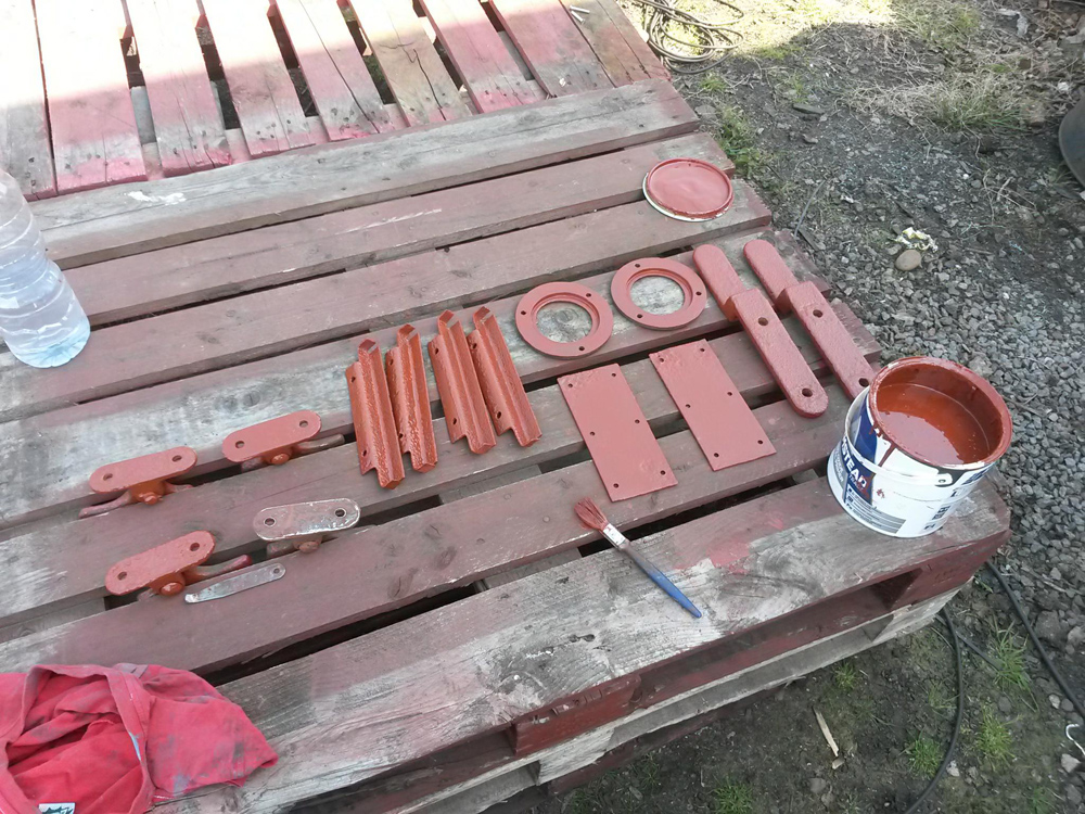 With the workshop back we undercoated the items red oxided last weekend