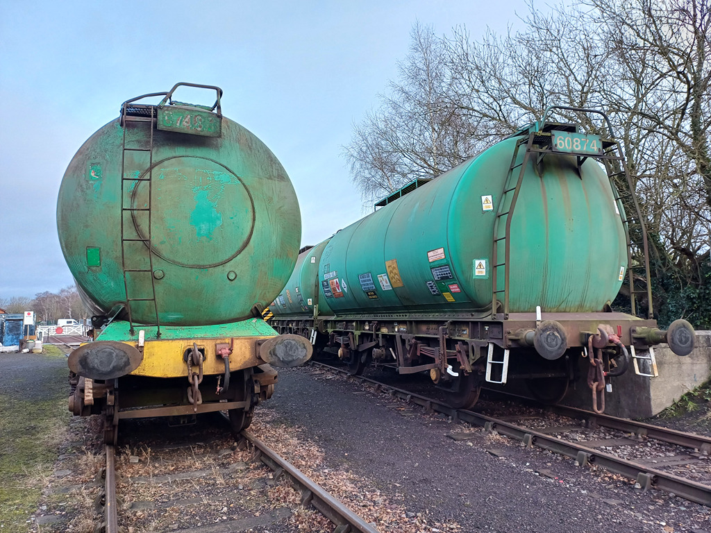 So here is our new arrival; 35T TSV Tank wagon number 3621, built in 1958 by Hurst Nelson in Wakefield for Esso, initially registered to BR Scottish Region (registration number 808). In the 1980s it was sold to the CEGB, renumbered 48527; then subsequently entered preservation in 1990. It has been acquired from the Foxfield Railway where it had been used as a water carrier; arriving at Quorn on 14 Feb 2025.