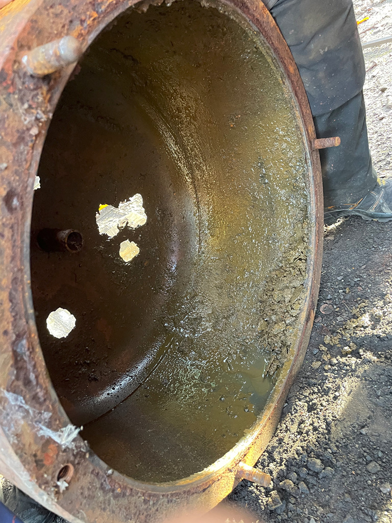 Before we connected the rig compressed air from Edward was blown through the new pipework on both wagons to ensure they were clear and free from any debris.