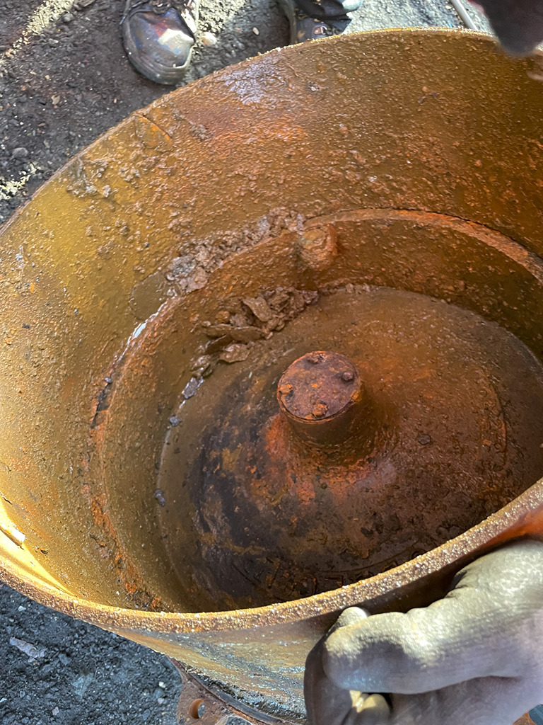 First off, the team set about locating our 21″ vacuum cylinder spares, which were spread across a few locations. During this, the yard area was tidied up to release a complete (but not very well cylinder) from inside the Volvo’s bucket.