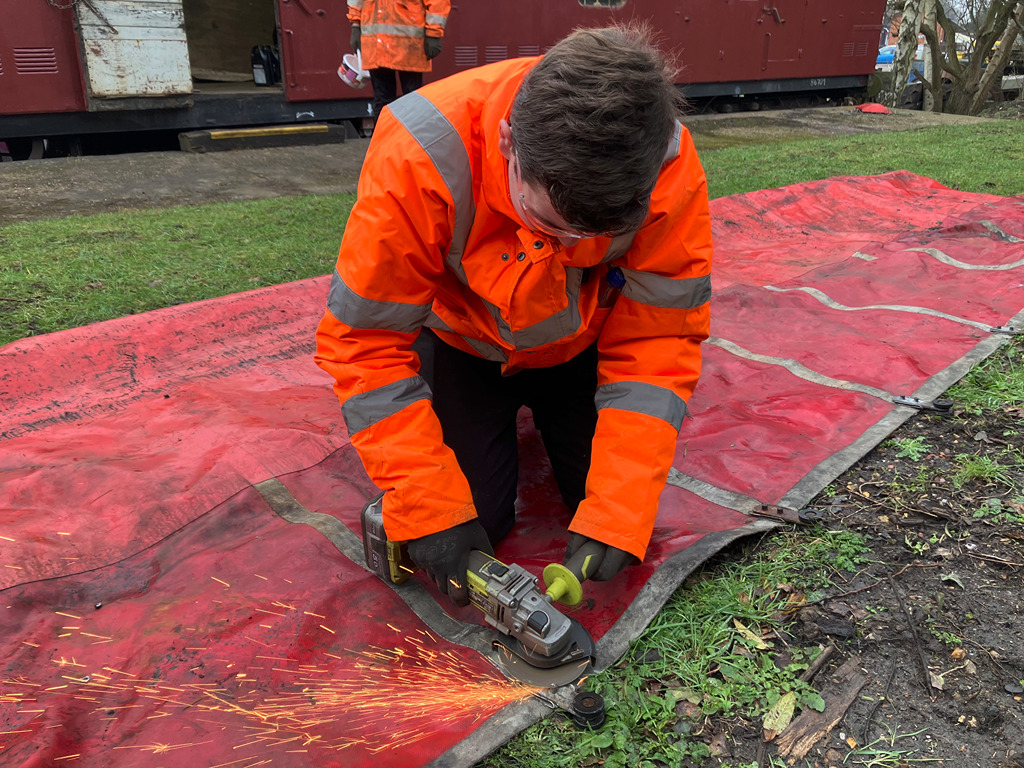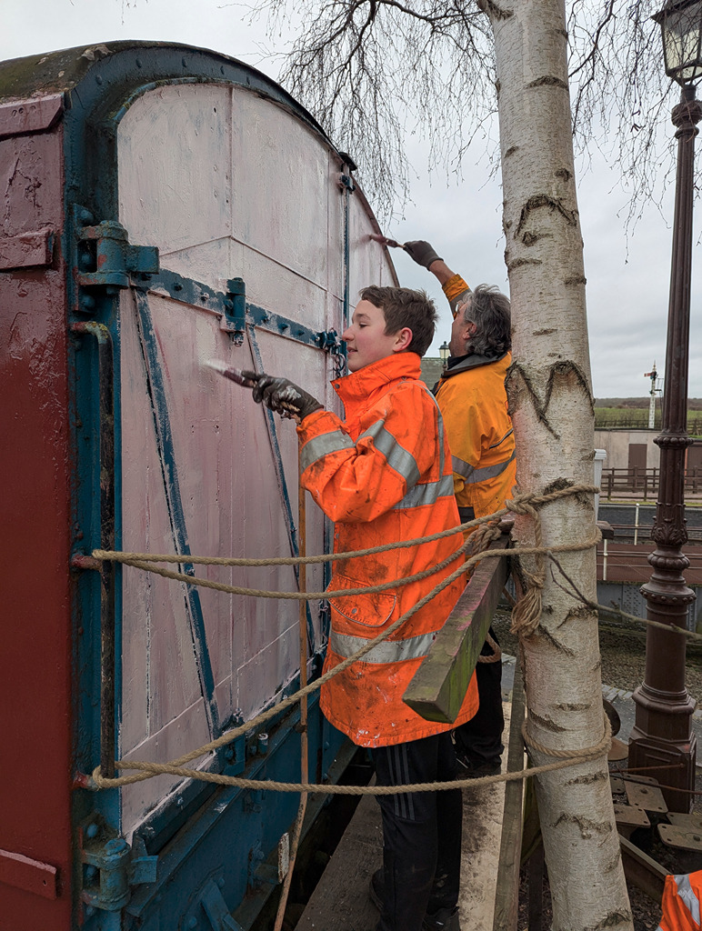 The team set up a handrail and platform at the north end of the GUV to continue the repaint. After this was ready, Mark and Oliver started to undercoat the south end of the GUV.