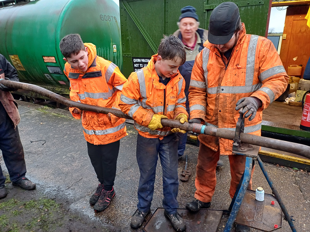 Nick, James and Charlie went on a road trip to Foxfield to gather some more Esso tank parts, this time it was more outfeed pipes and valves to replace those that arrived missing on 3854. When they got back and after a cup of tea, the valves and outfeed pipes were fitted.