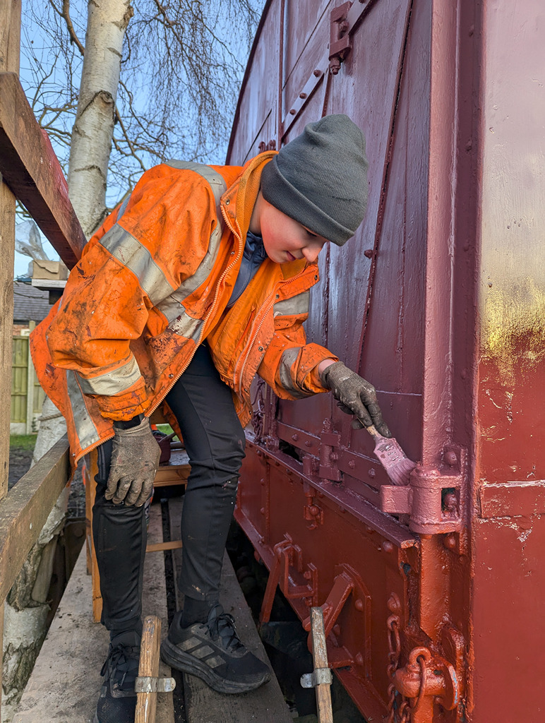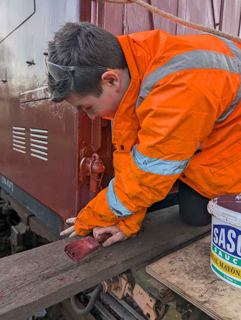 With the day being a little warmer on Sunday the pressure washer was cracked out to clean down 3689. Tom, Dan, Oliver and Tom worked on this most of the day, getting wet through in the process. Most of the unsound paint came off including most of the black sign writing resembling silver snowflakes. After this the team gave 1802 a going over, removing its layer of algae.