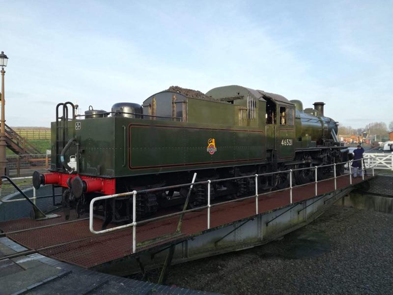 Sunday and an unscheduled visitor into the yard, namely 46521 deputising for 4953 which had failed that morning. We took advantage of the vist and had the Iron Ore tippler moved to the centre road so we could fit the 15″ cylinder before we opened the doors.