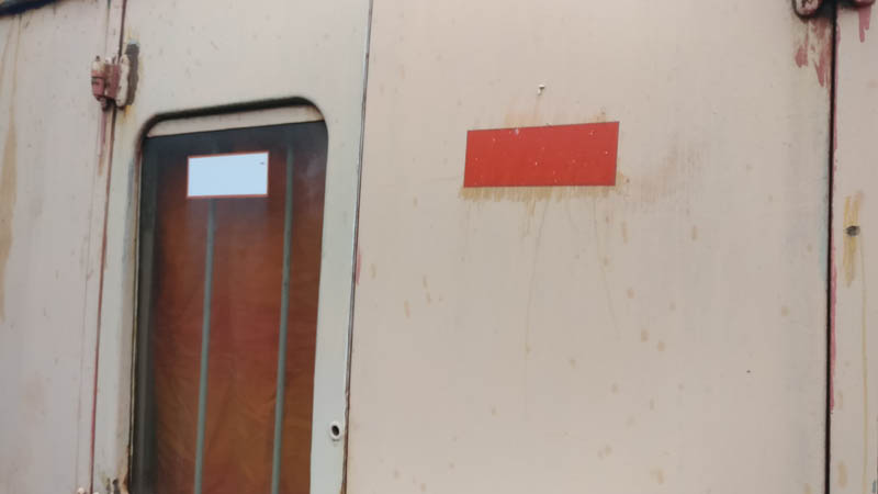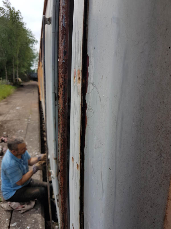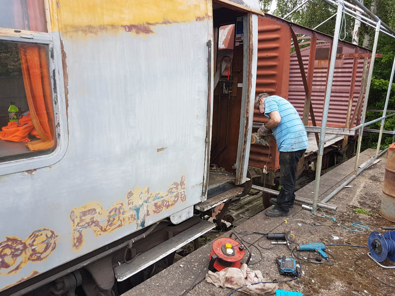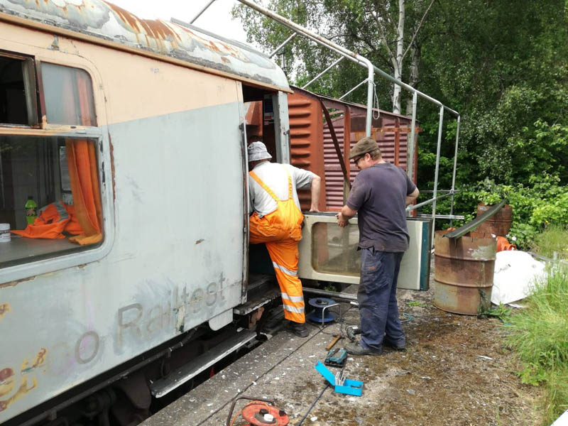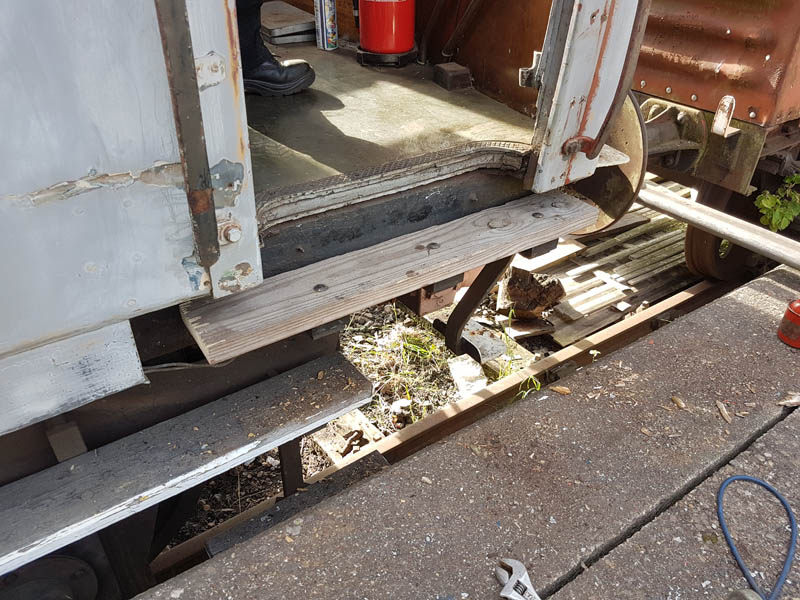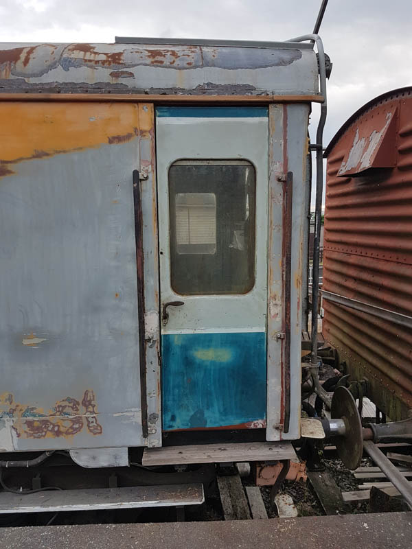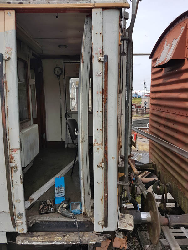 Once back in position all of our attention turned to the Test Car. Due to the poor condition of the inward opening door on the “A” End or the Slip End as its known the decision was taken to change it for another held in stock. This was trial fitted and due to some accurate measuring previously, fitted with no problems at all.