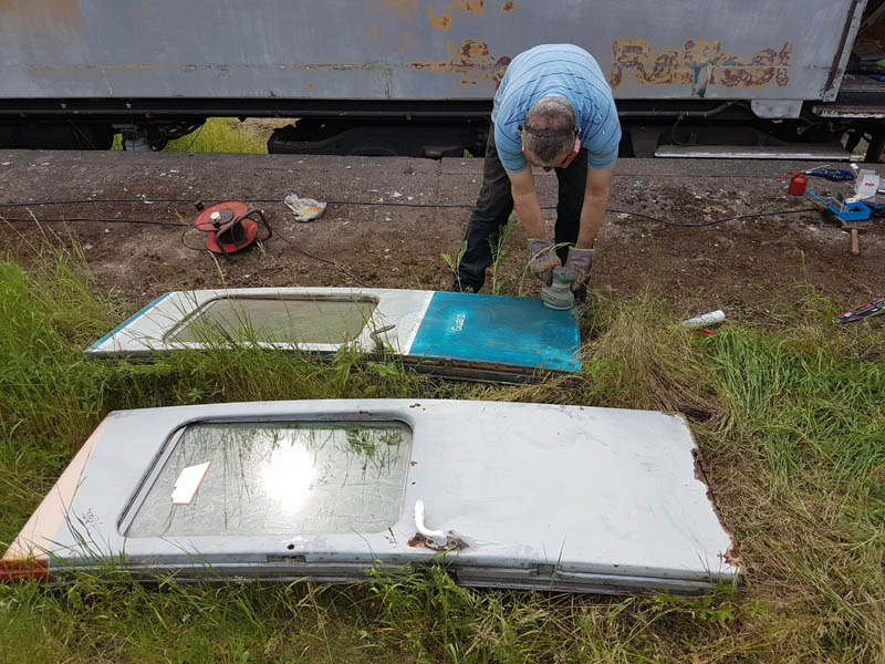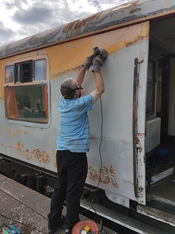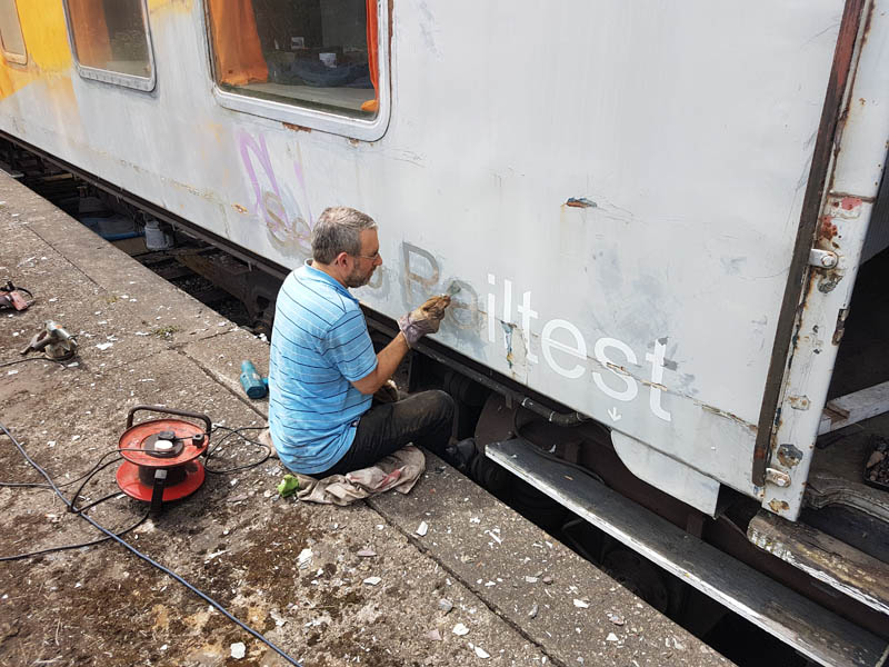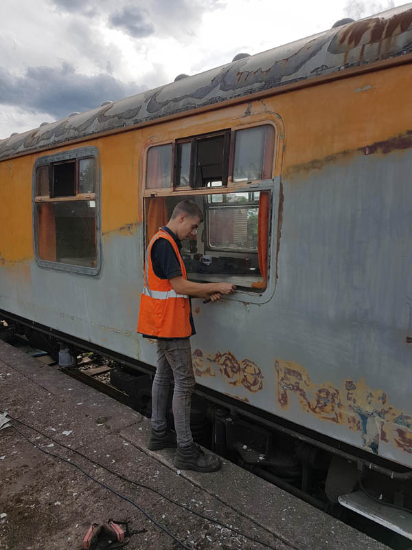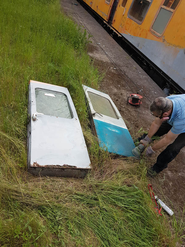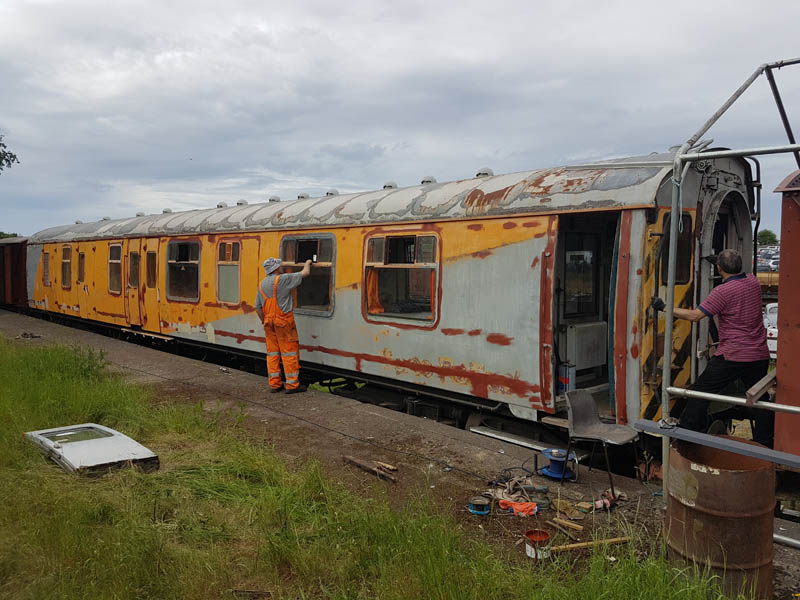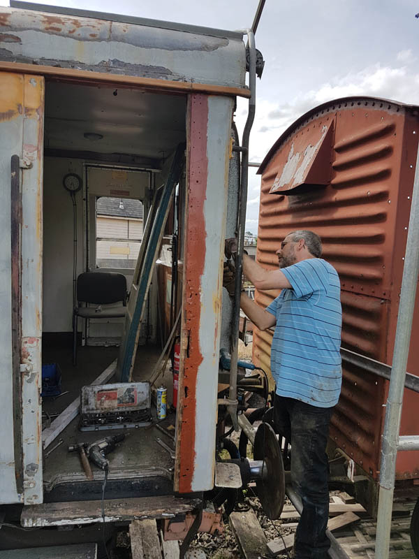 Once back in position all of our attention turned to the Test Car. Due to the poor condition of the inward opening door on the “A” End or the Slip End as its known the decision was taken to change it for another held in stock. This was trial fitted and due to some accurate measuring previously, fitted with no problems at all.