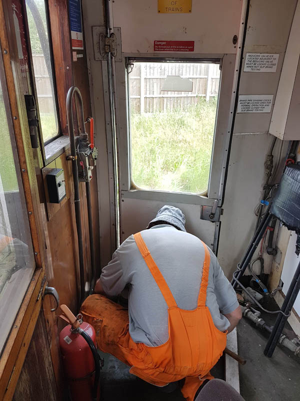 A now seemingly rare day at Quorn on Saturday, with us preparing for the gala next week. With the TPOs unable to run due a Temporary Speed Restriction just on the approach to Quorn, we shall be opening up the Test Car and having our own little open day. We are planned to show what we do on a weekend-ly basis to visitors to the gala, and are planning to show a vacuum cylinder overhaul, re-flooring a wagon and a release valve overhaul. To preapre for the above, we swapped the cylinder from under the ‘regular’ LNER Steel High E281882 fitting a new branch-pipe and overhauled release valve, and removed the 15″ cylinder from the Iron Ore Tippler B385782 ready for overhaul (this is awaiting an overhaul kit). Some attention was paid to the Test Car, with Harry, Eddie and James cleaning and tidying up in preparation to open it again. This trio also tidied some of the yard area too.