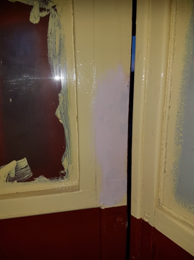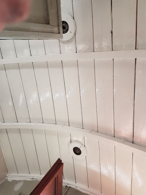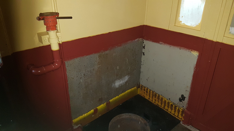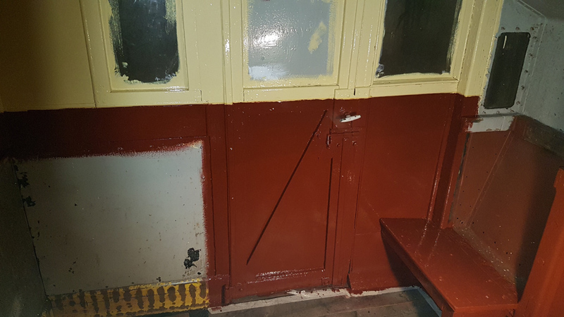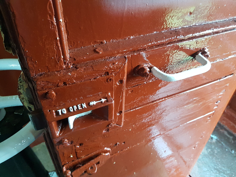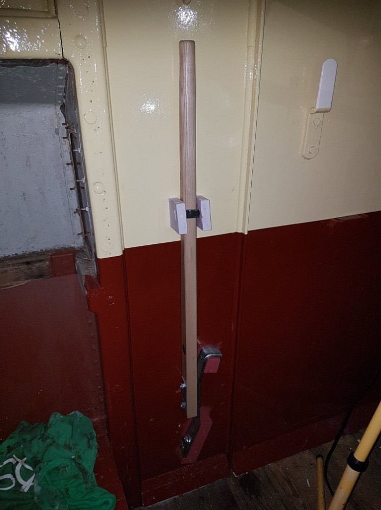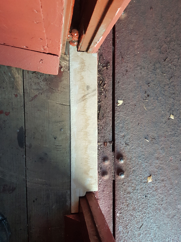 Whilst the air system was being removed the veranda doors and the corner noggings that include the door latches saw attention. All Noggings were removed and areas of built-up plate rust removed. A number of door repairs were also carried out most notably the South East Veranda door which Ross is particularly proud of, work included a lot of fine woodwork to get the door to fit up and close effortlessly.