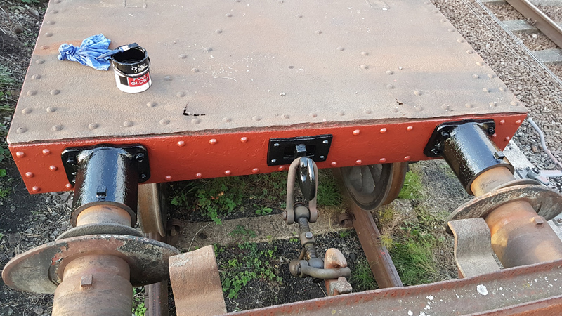 Once complete again attention turned to the Tank flat, undercoating the headstocks and scraping down and applying bitumen to the east side of both bogies.