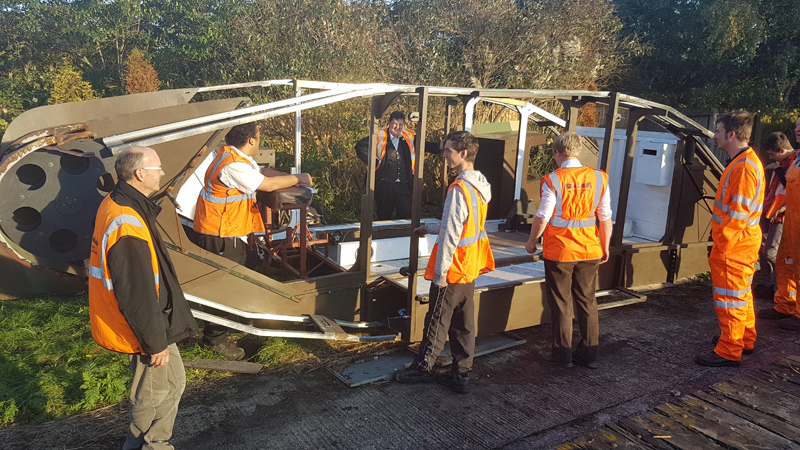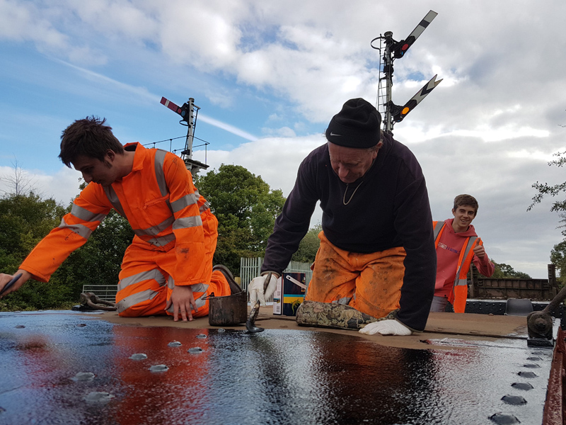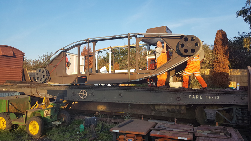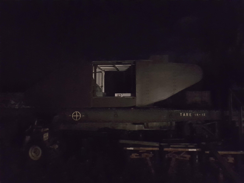 I, unfortunately, had to work but when I had finished I arrived to apply Signwriting to the Weltrols Eastside. Final push for Saturday was placing the WWI tank on to the Tank flat, assistance was sought from Quorn station volunteers. Jack had spent the day stripping the tank but it still had a sizable weight. With plenty of hands, the tank was positioned without to many problems.