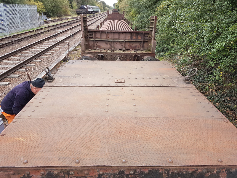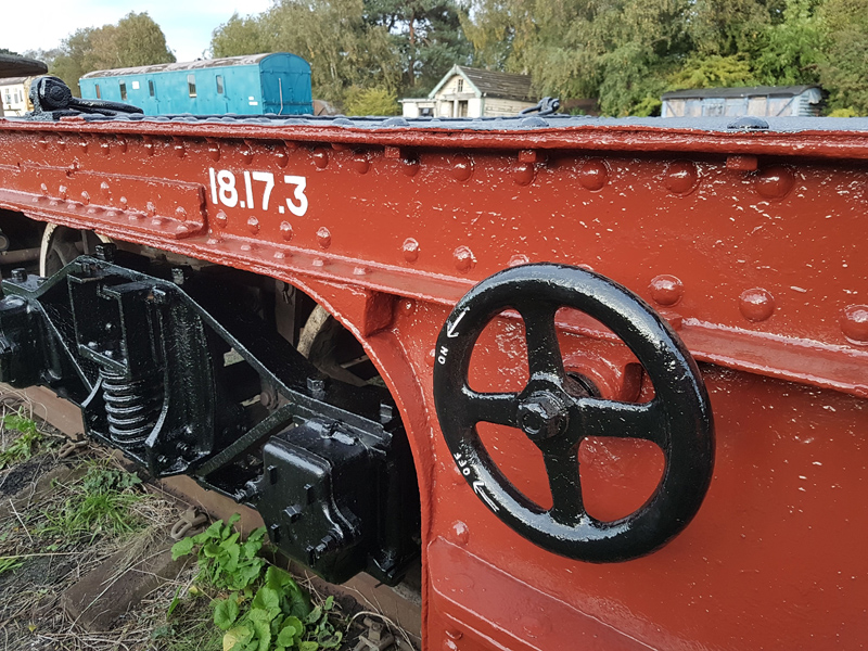 The 10th and 11th November sees the GCR commemorate 100 years since the end of the First World War. As part of this, the GCR is assembling a train of appropriate vehicles of either age or type. The first from our collection to see attention for this commemorative train is M300356, this vehicle, a Well Trolley (Weltrol) was built in 1913 by the Caledonian Railway and is being returned to CR livery.