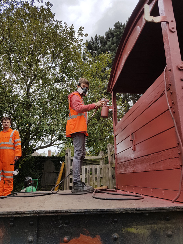 Once rubbed down Nick, Ross and Jake moved back to the Southern Brake and applied a layer of undercoat, the opportunity was taken to teach Jake a new skill, that being the use of the spray gun.
