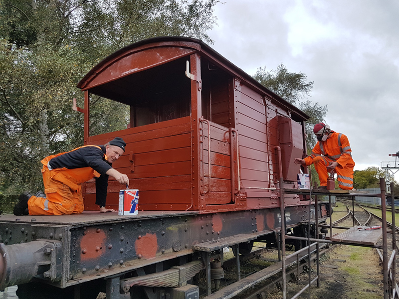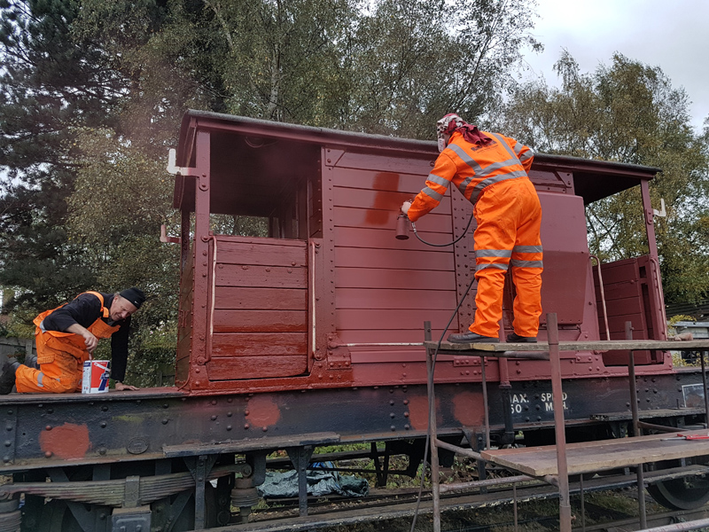 At Quorn Wagon and Wagon this weekend, we have been continuing our efforts on the Southern brake van, S56010. Matt has also continued painting the Caledonian Weltrol, M300356, in readiness the the Great Central Great War event.