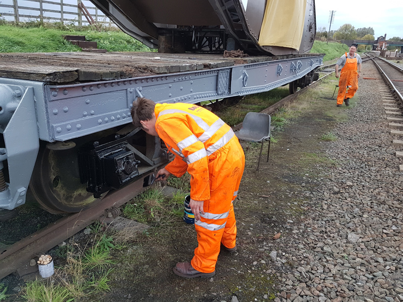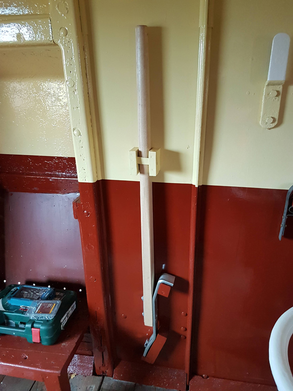Sunday and down came the rain, unfortunately, this put a hold to the plans to continue painting. We were able to fit the filler pieces, painted over the previous days, and finished off the final detailing of the interior. Handbrake wheel painted, track circuit operating clips and the short-circuiting bar fitted.
