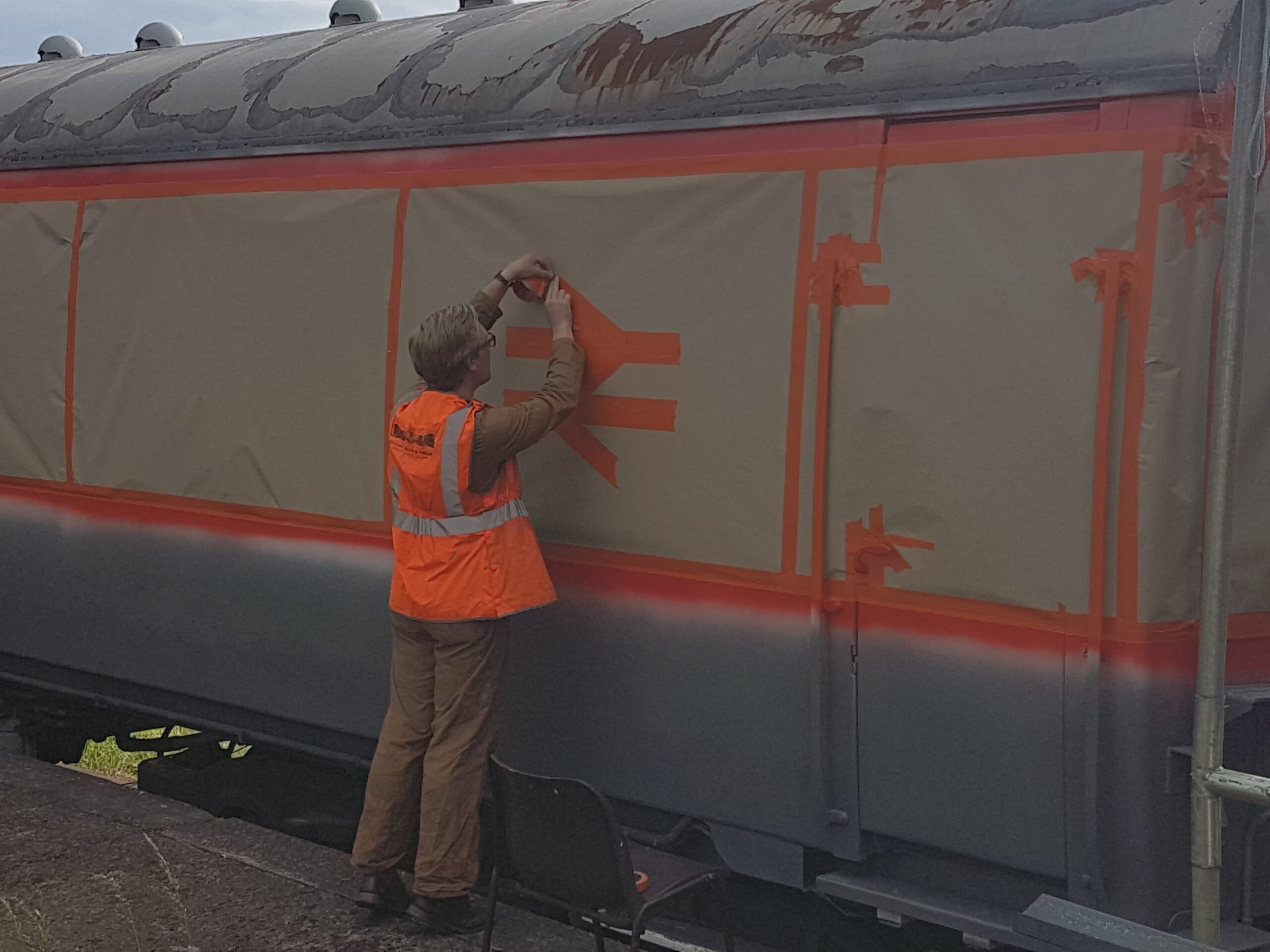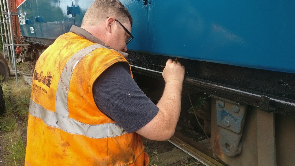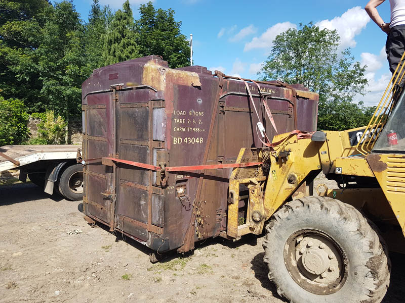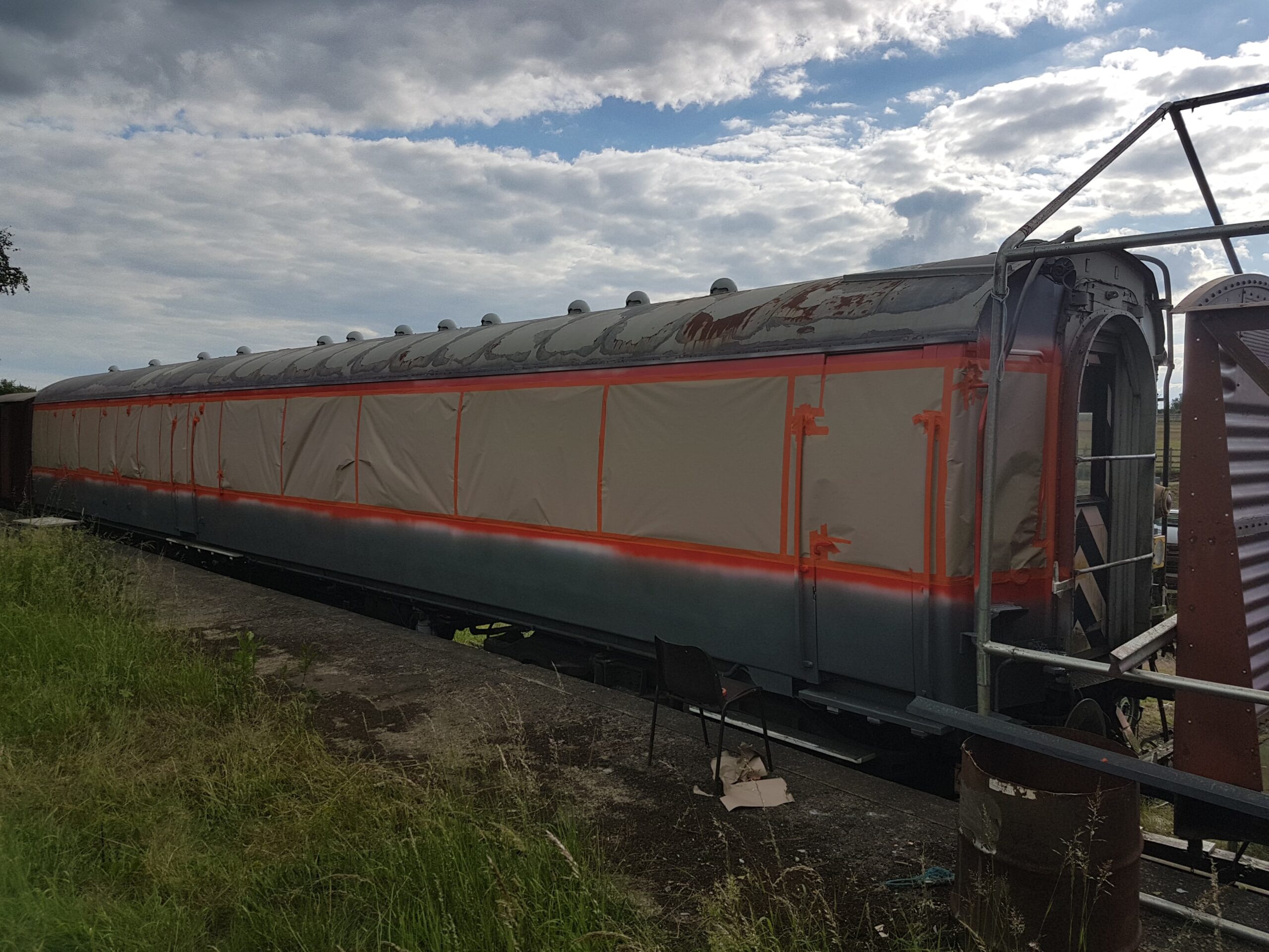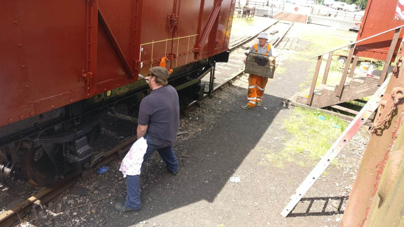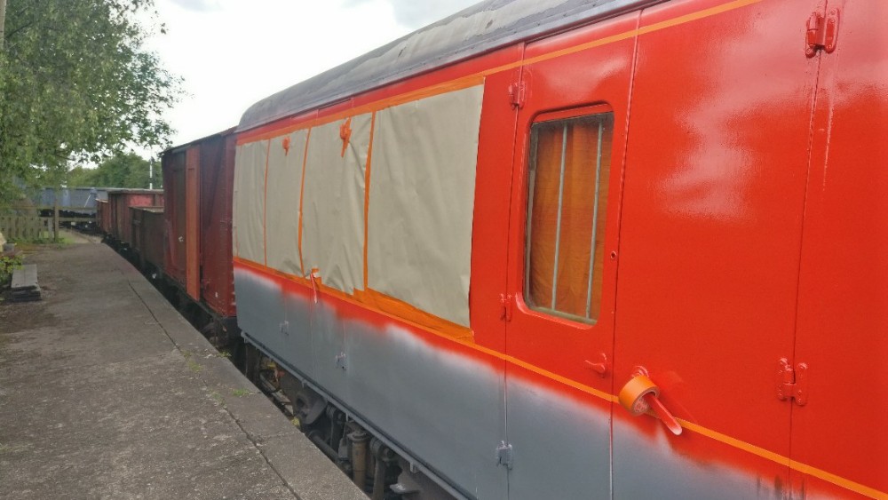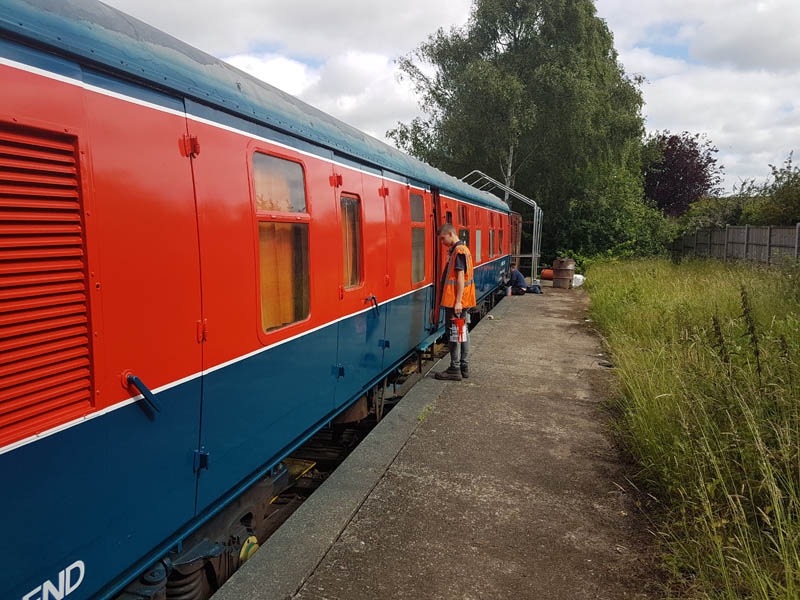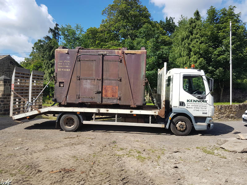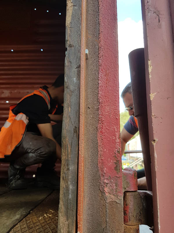 This weekend has been one of hospital jobs, but before we get to that we have some week work to catch up on. Those of you that are following our Facebook page will know that several things has happened this week. Firstly, Matt bought and fetched a fibreglass container with Nick. Secondly, Matt completed the signwriting on the Centre Shock van, thereby releasing the vehicle to traffic. It can now join the rest of the van train. Lastly, courtesy of the Heavy Tractor Group, the Test Car has been turned so that we can start work on the other side.