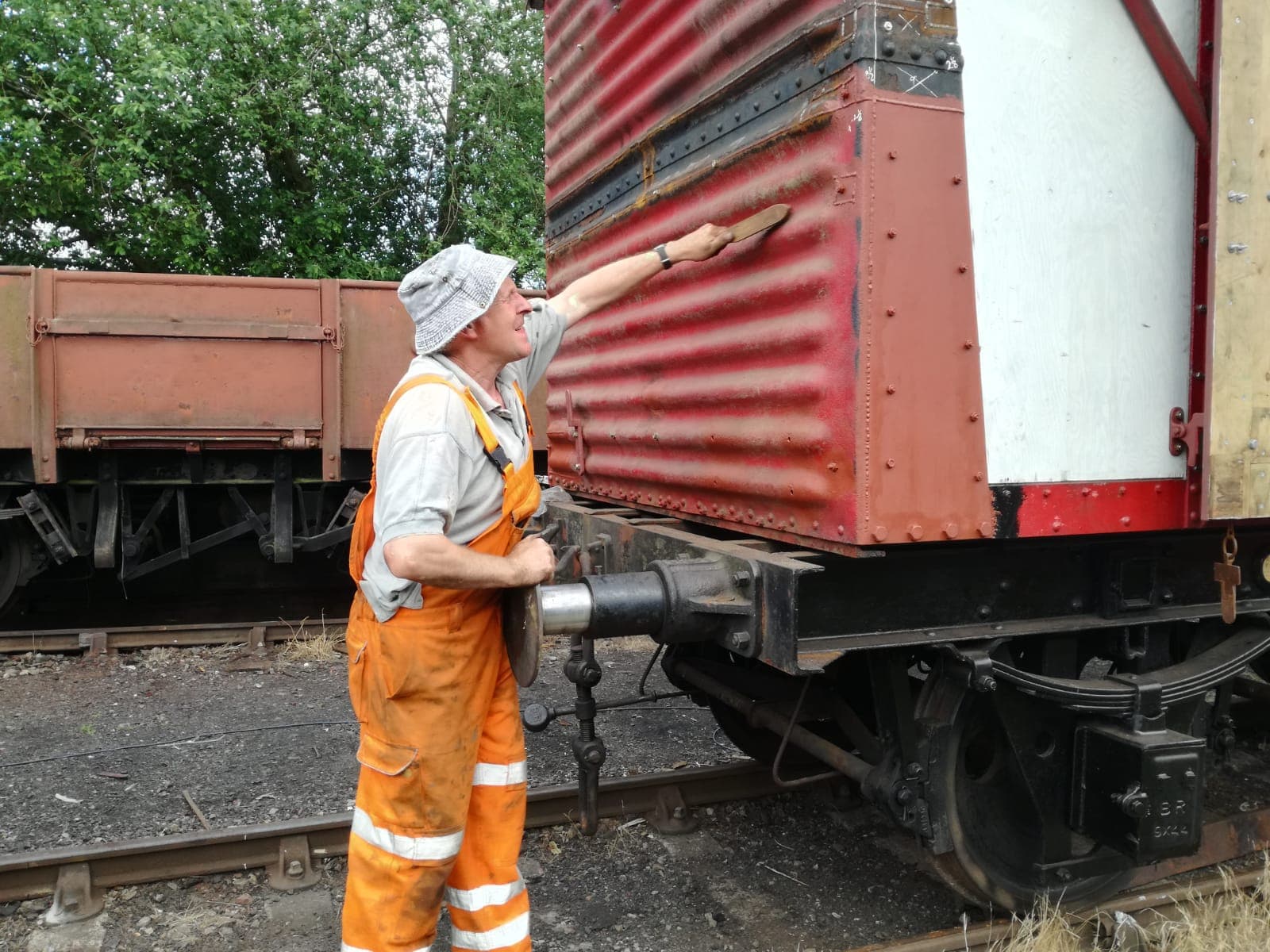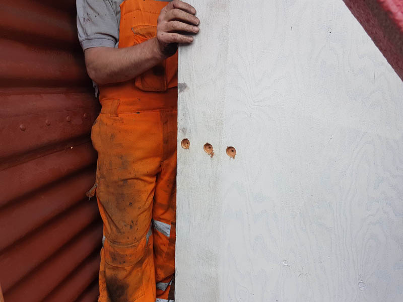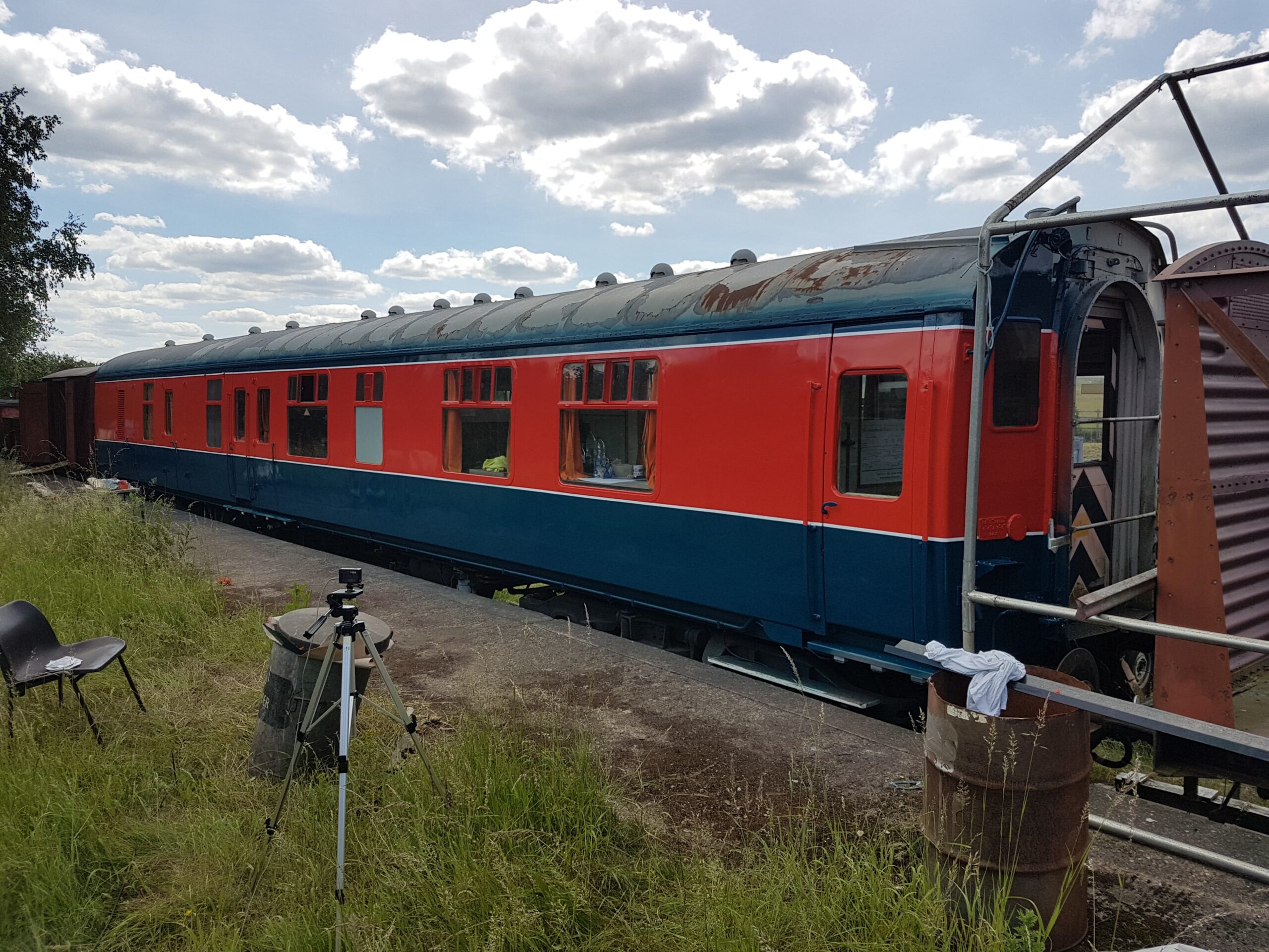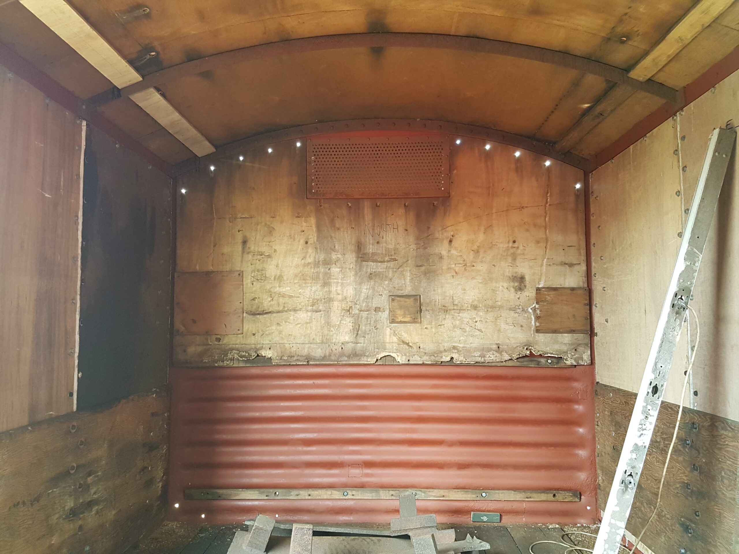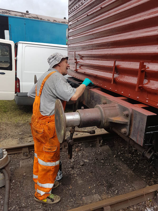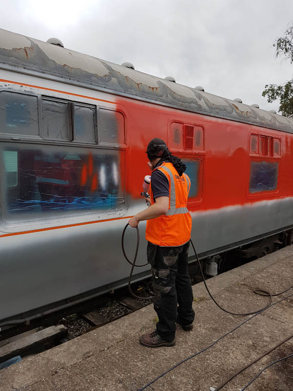 This weekend has been one of hospital jobs, but before we get to that we have some week work to catch up on. Those of you that are following our Facebook page will know that several things has happened this week. Firstly, Matt bought and fetched a fibreglass container with Nick. Secondly, Matt completed the signwriting on the Centre Shock van, thereby releasing the vehicle to traffic. It can now join the rest of the van train. Lastly, courtesy of the Heavy Tractor Group, the Test Car has been turned so that we can start work on the other side.
