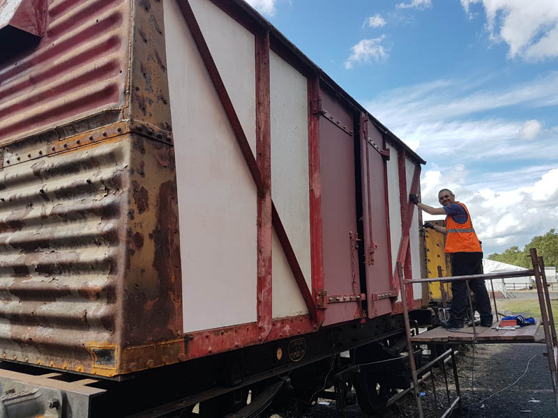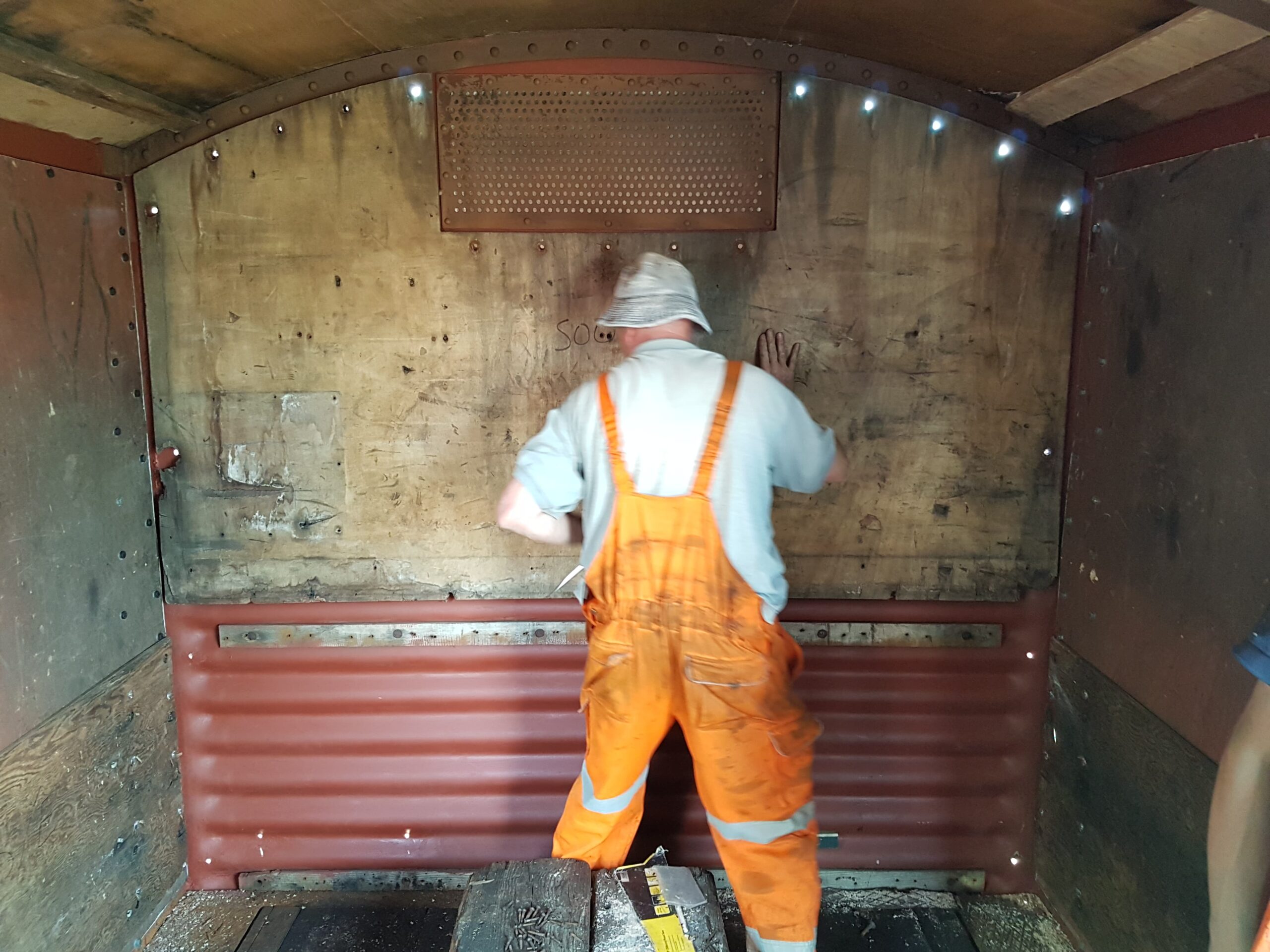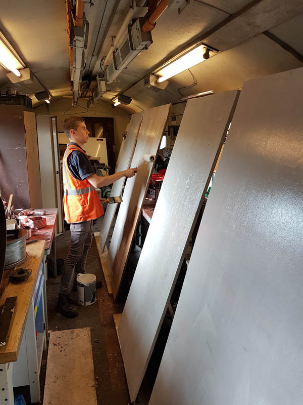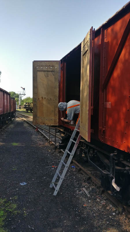 Once back in position all of our attention turned to the Test Car. Due to the poor condition of the inward opening door on the “A” End or the Slip End as its known the decision was taken to change it for another held in stock. This was trial fitted and due to some accurate measuring previously, fitted with no problems at all.