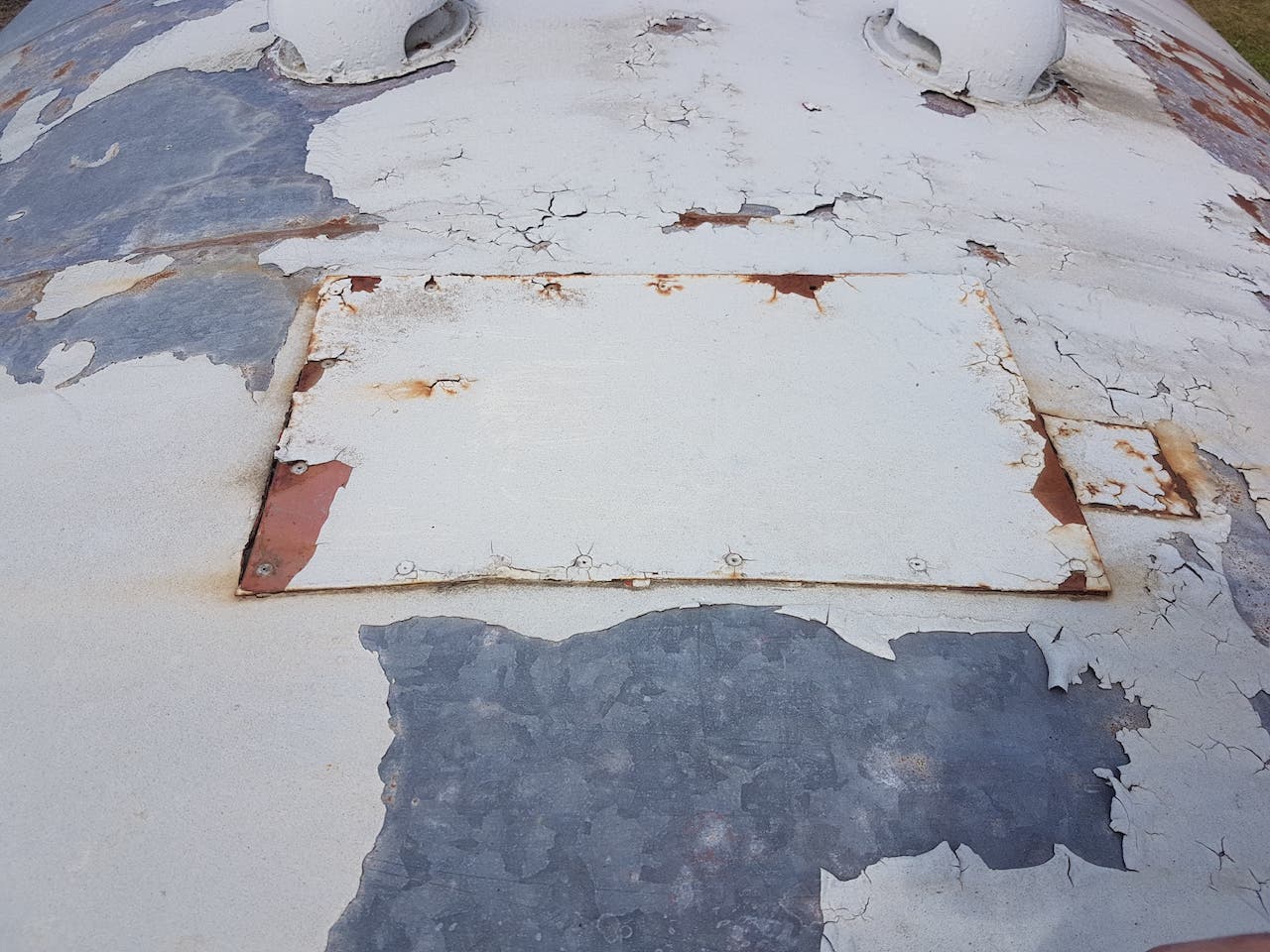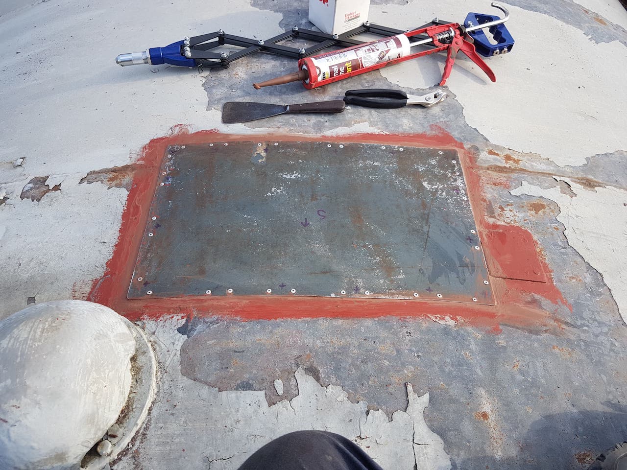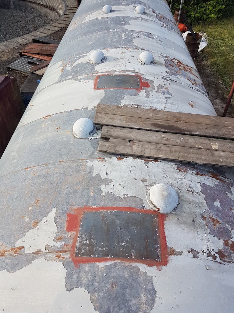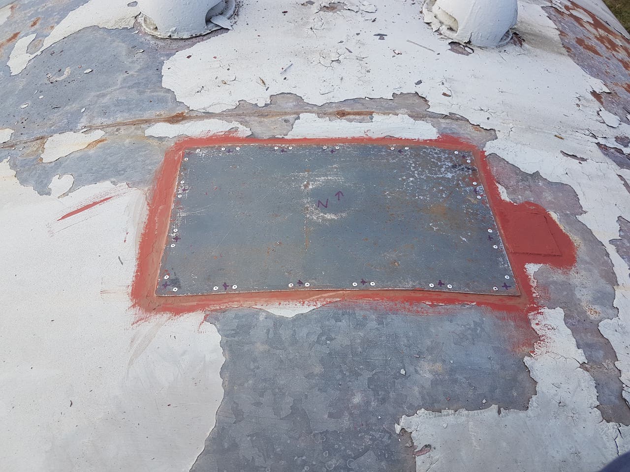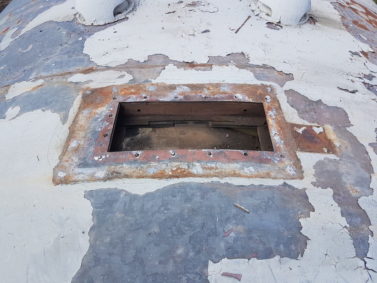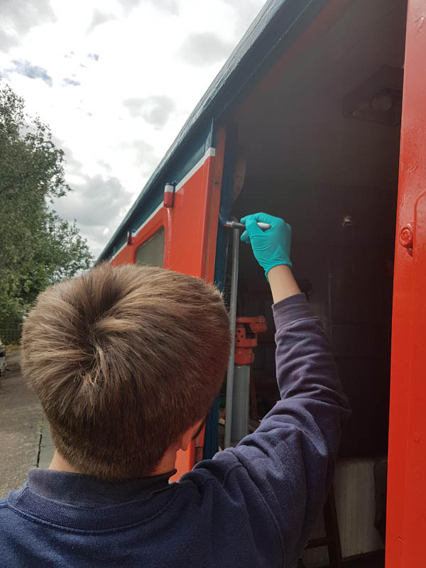 Sunday saw Matt showing us his green thumb by strimming the dock area. This should cut en on insects landing on the fresh paint (when we get around to it). Matt then went on the roof of ‘2 car’ to repair the periscope blanking off plates. These had lifted due to the pop rivets failing. In drilling through the roof, Matt broke all of our 3.5mm drill bits. New plates were cut, and riveted over the holes using new rivets, and plenty of sealant!