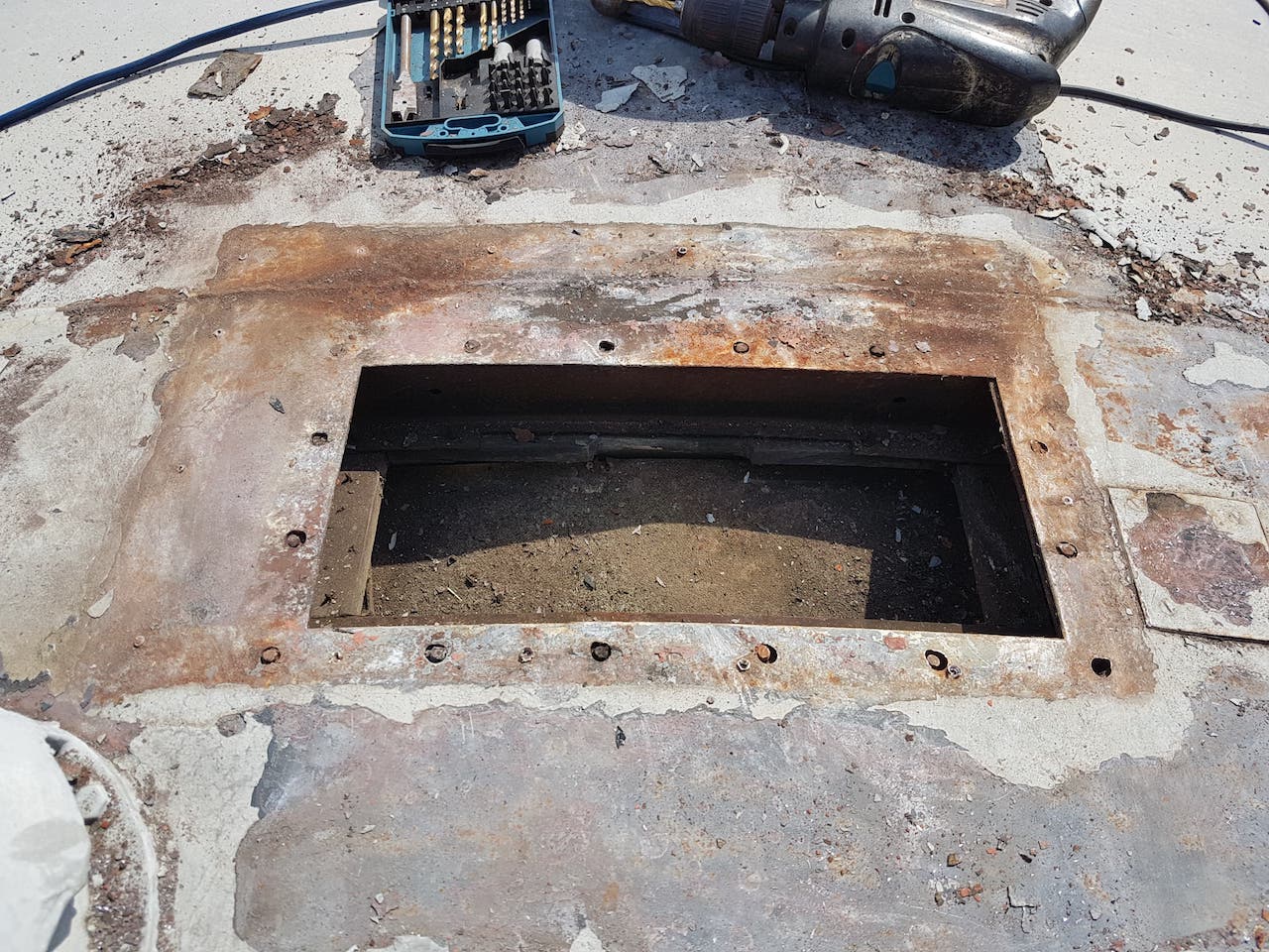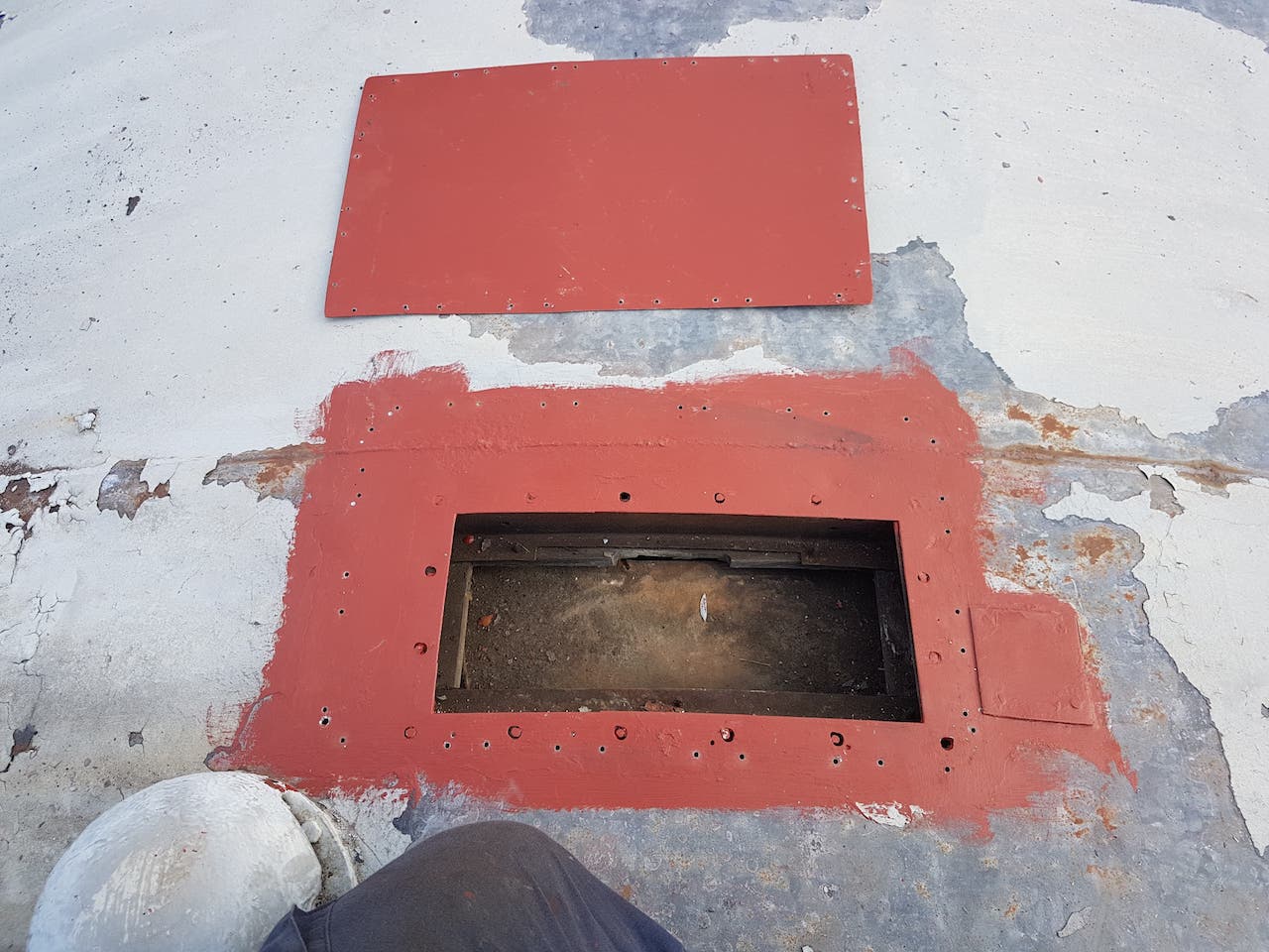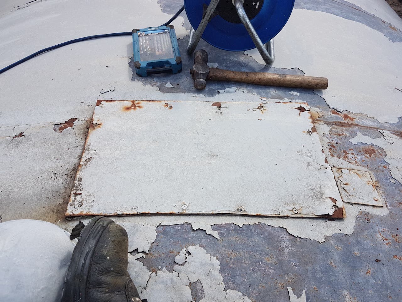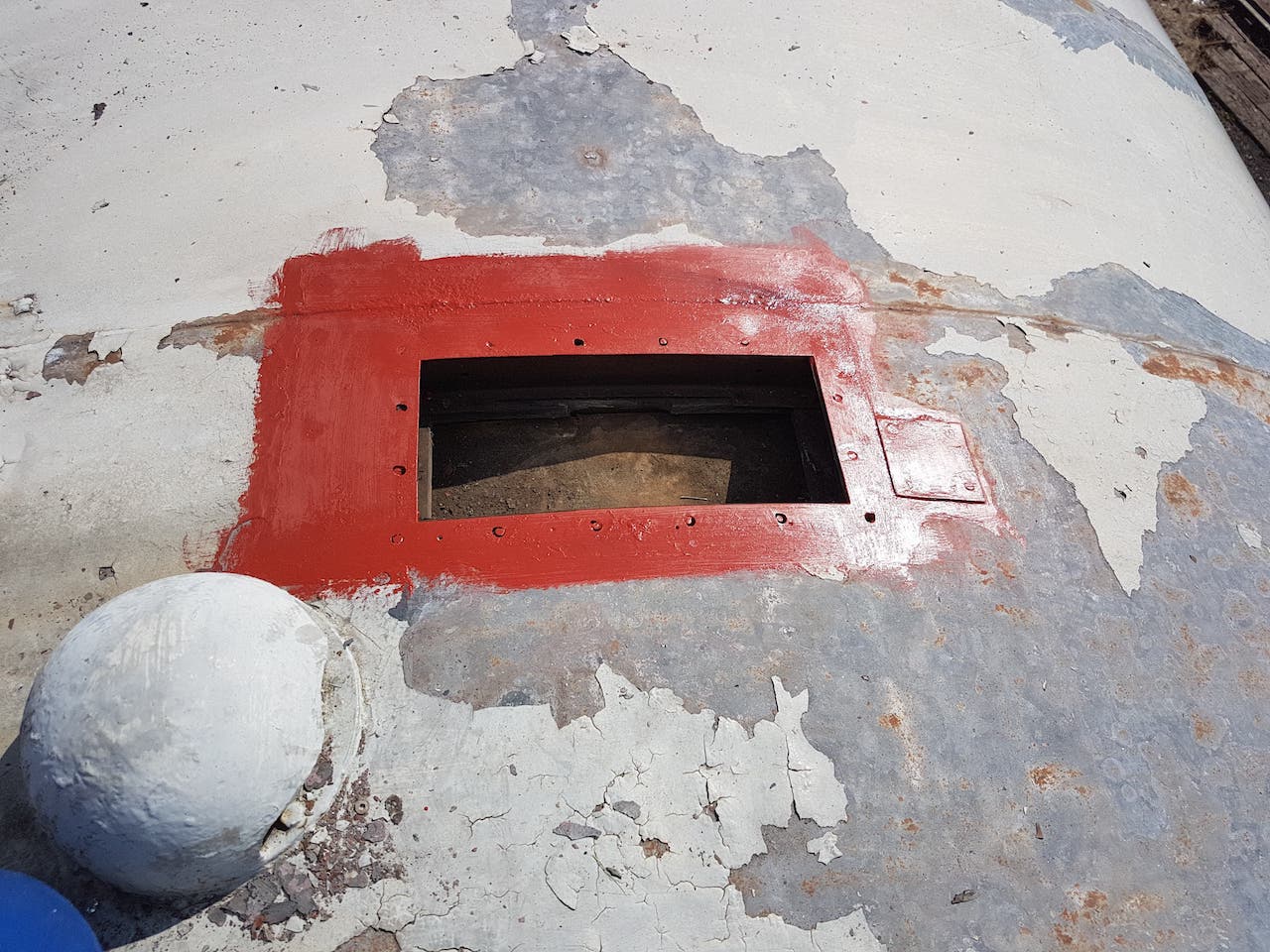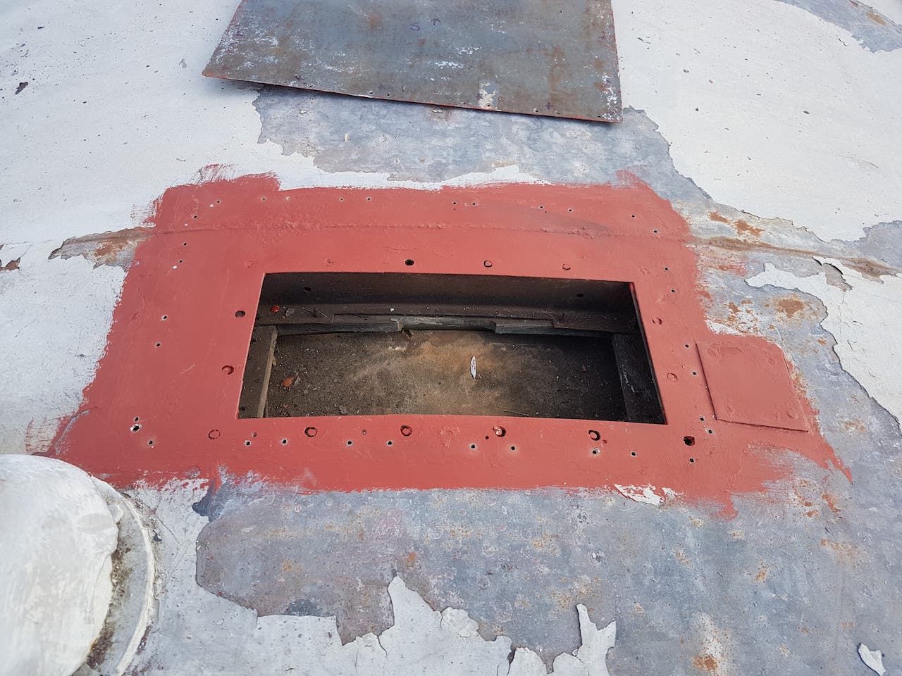 Sunday saw Matt showing us his green thumb by strimming the dock area. This should cut en on insects landing on the fresh paint (when we get around to it). Matt then went on the roof of ‘2 car’ to repair the periscope blanking off plates. These had lifted due to the pop rivets failing. In drilling through the roof, Matt broke all of our 3.5mm drill bits. New plates were cut, and riveted over the holes using new rivets, and plenty of sealant!